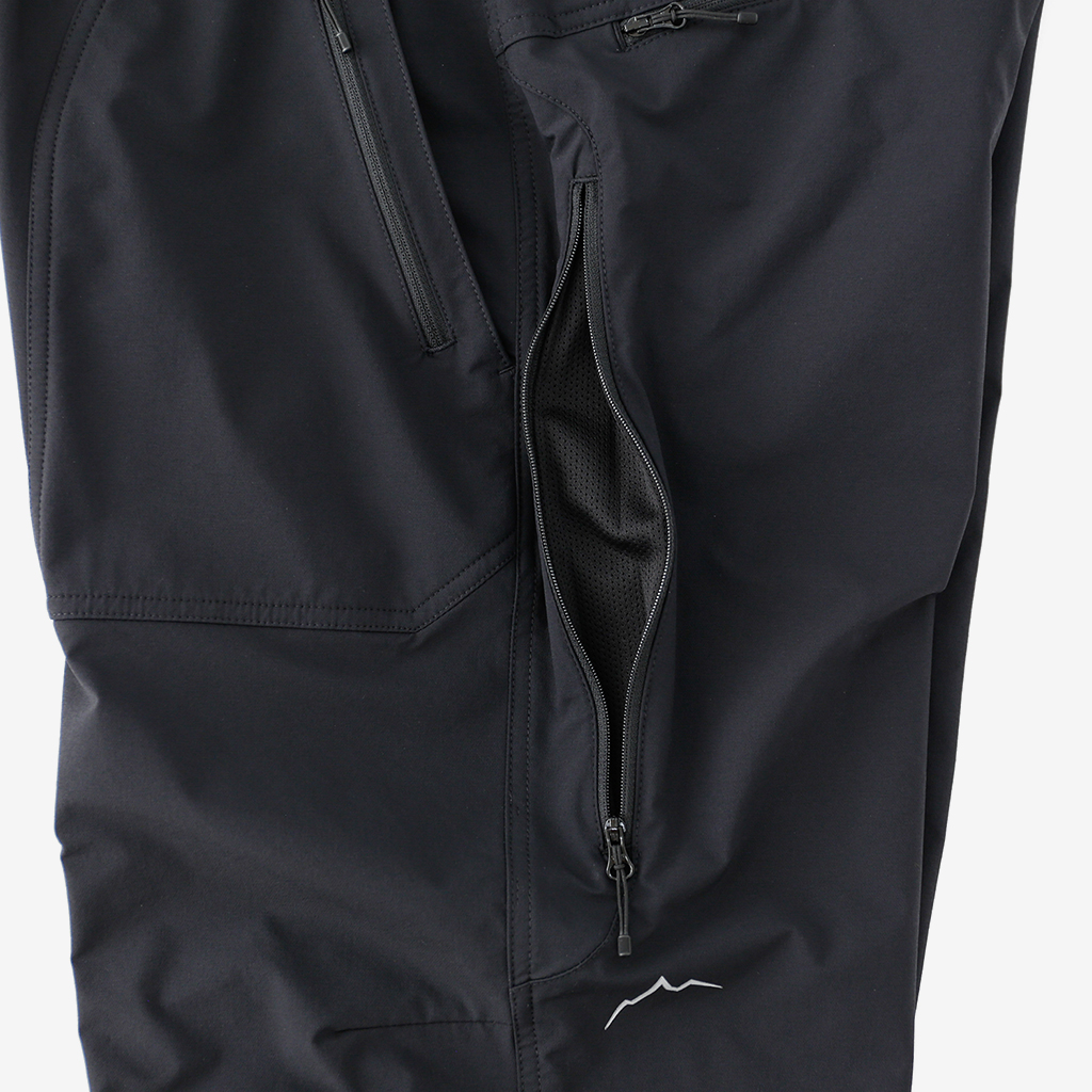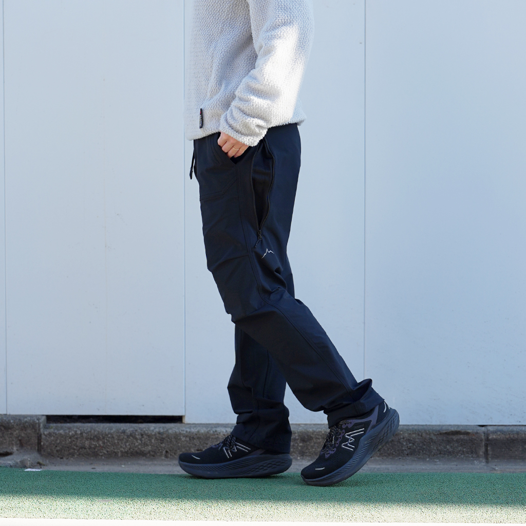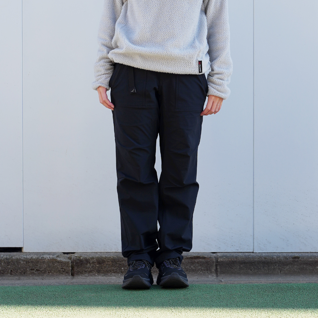 高いストレッチ性と、ほど良い保温機能、通気性、防風性を併せ持ったバランスの良い秋冬向けロングパンツ。 内側は低めの起毛処理がされていて、温かく柔らかな肌触り。表側は撥水加工されています。 両脇にはベンチレーションジッパーを備えており、細かな温度調整に対応。ベンチレーション部分には表地と同系色のメッシュが配されているので、ジッパーを開けていても目立たないのもうれしいポイントです。 フロントは二重ポケット構造で、鍵や財布などの貴重品を安心して収納できるジッパーポケットが付いています。 春秋冬の行動時や、キャンプ、デイリーユースでも使い勝手の良いパンツです。 Black、Khakiの2カラー展開。 フロントは二重ポケット構造に。 前腿と膝部分の立体パターン。 ベンチレーション部分には表地と同系色のメッシュが配されているので、ジッパーを開けていても目立たないのもうれしいポイント 裾はコードで絞れ、シルエットや丈感も調整できます。 モデル:184cm/Lサイズ モデル:158cm / XSサイズ