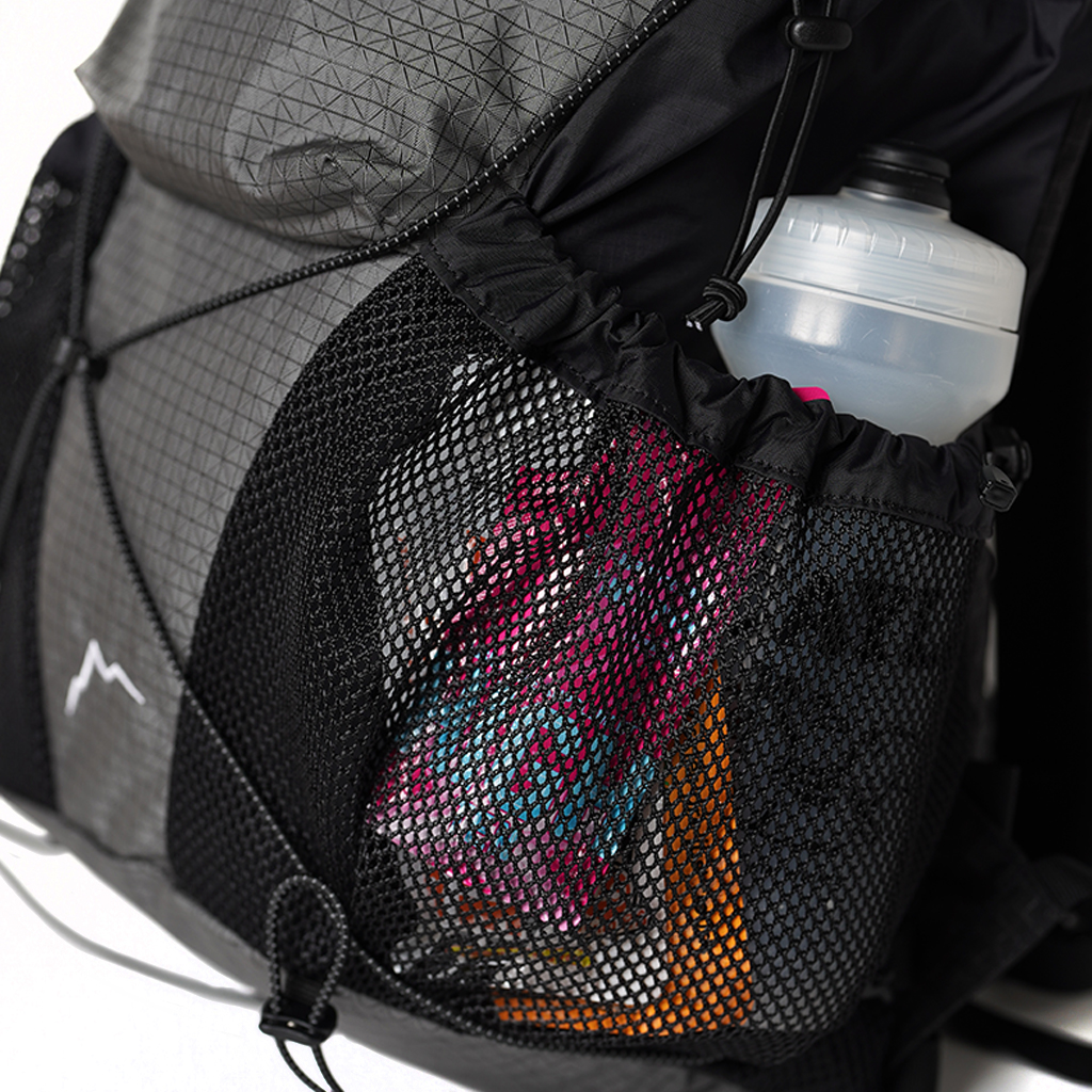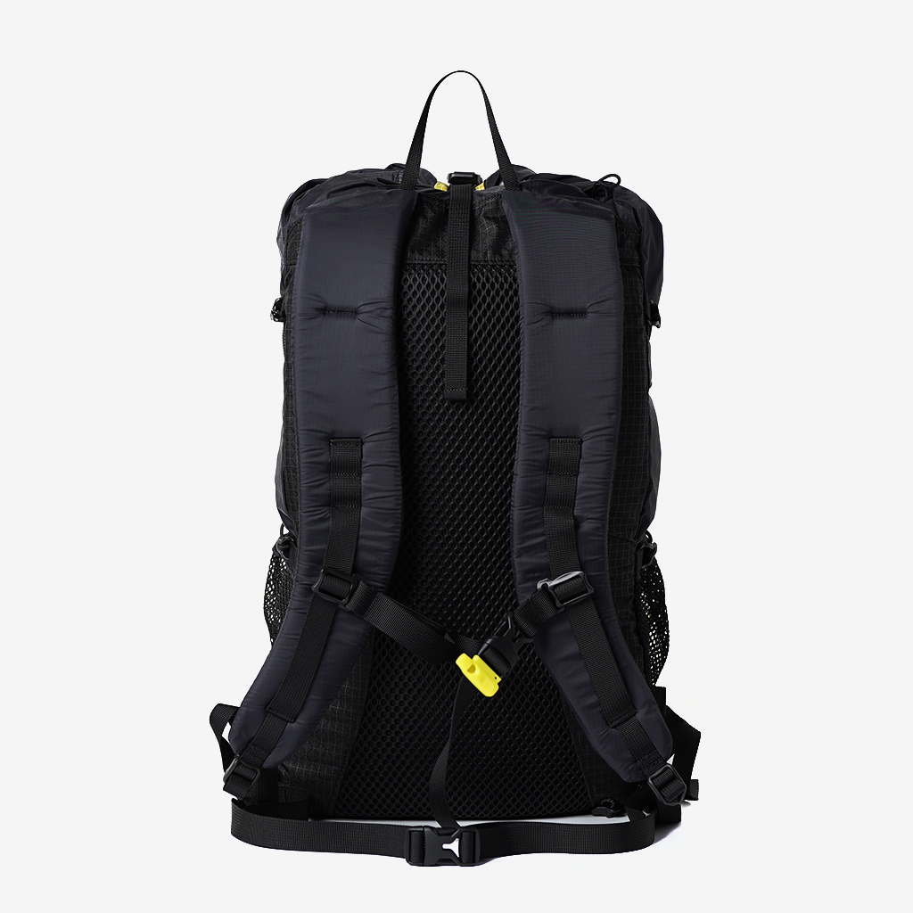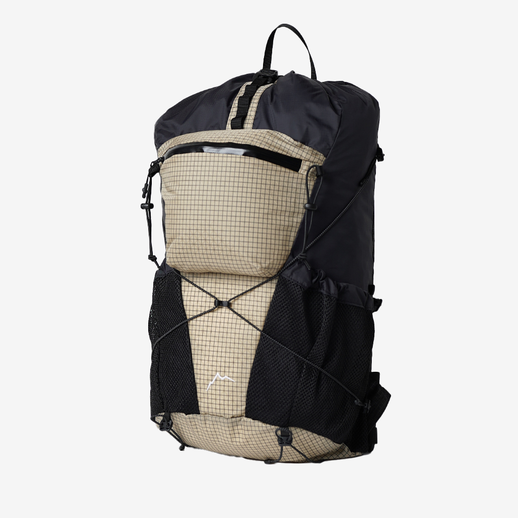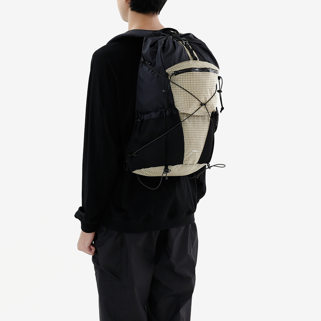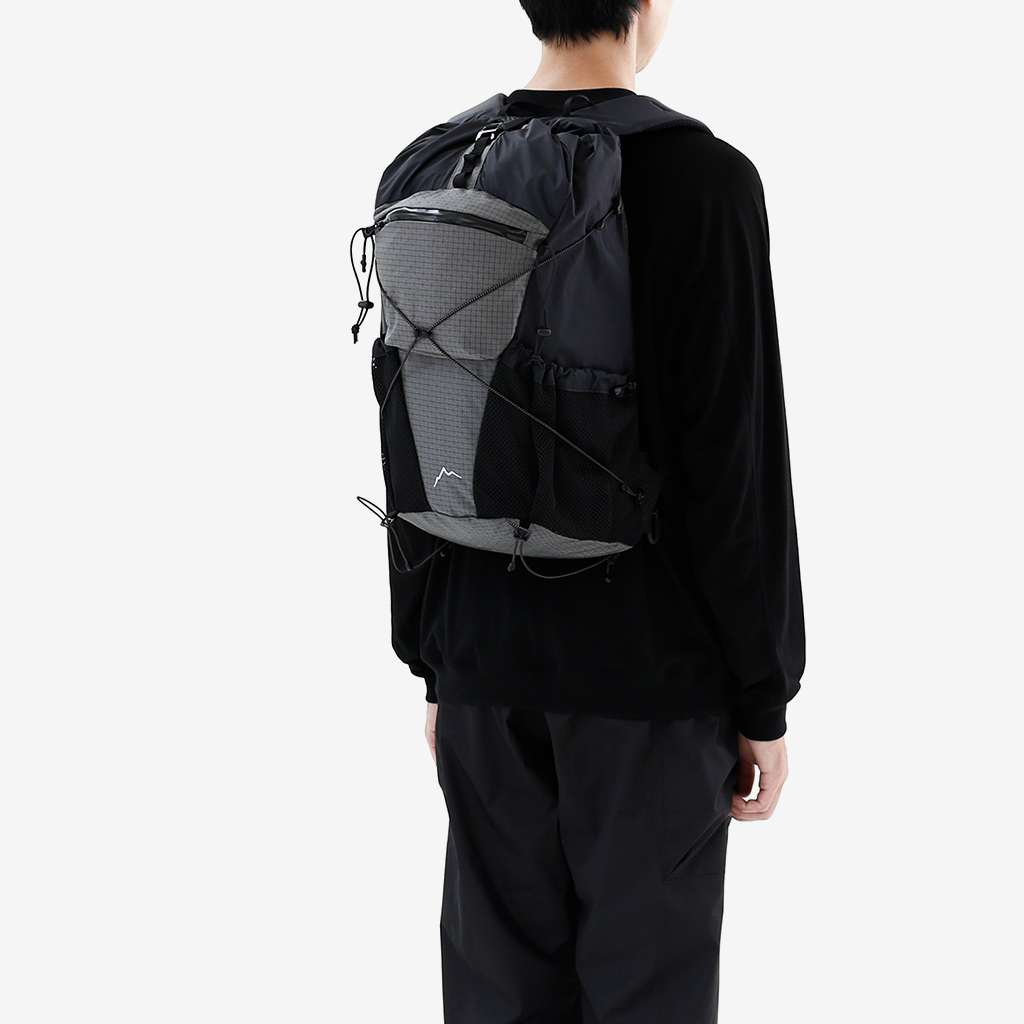 CAYL 25FWの新作バックパック『Biseul』(ビスル) 街でのデイリーユースからデイハイク、山小屋泊に使いやすい20-24Lという絶妙なサイズ感。メインコンパートメントはドローコードで素早く開閉でき、さらにバックルで留めれば、荷物が揺れづらく、雨の侵入や荷物の飛び出しも防ぎます。 フロントのジッパーポケットや両サイドのメッシュポケットは小物やボトルの収納に、上部のバンジーコードを活用して、トレッキングポールや傘など長物の固定もできます。 背面には取り外し可能なフォームパッドを内蔵し、背負い心地を高めると同時に休憩時にはクッションとして利用してもOK。厚みのあるショルダーハーネスが安定感をもたらし、重い荷物でも快適に持ち運べます。 取り外し式のウエストベルトや底部のバンジーコードにより、用途に応じた柔軟にアレンジできます。 軽快な背負い心地と高い耐久性を兼ね備えるため、メイン素材には軽量でしなやかな 70D リップストップナイロン(Nylon100%)を採用。 ボトムとフロントには摩耗に強いグリッドファブリック(Nylon88% / UHMWPE12%)を配し、CAYLらしい洗練されたデザインにまとめ上げています。 カラー展開も豊富で、自然に溶け込む落ち着いたトーンから都市で映えるアクセントカラーまで揃え、スタイルやシーンに合わせて選べる楽しさも魅力のひとつ。 ハイキングバッグの機能性と都市的なミニマルデザインを融合させた『Biseul』は、日常から旅、そして山まで、シームレスに活躍します。 カラー:B-Grid Black カラー:B-Grid Grey カラー:B-Grid Beige メインコンパートメントの入口は、ドローコードで絞った後、必要に応じてバックルで留めること、で荷物が揺れづらく、雨の侵入や荷物の飛び出しも防ぎます。 バックルを留めずに、ドローコードで絞るだけでもOK。より素早く中にアクセスできます。 ボトムとフロントには摩耗に強いグリッドファブリックを。 高い評価を得るしなやかでほど良い厚みのあるショルダーハーネス。 ジッパーポケット脇にあるバンジーコードを活用して、トレッキングポールや傘など長物もしっかり固定できます。 コンパクトなサイズに使い勝手の良い機能を盛り込みながら、ミニマルなデザインにまとめ上げたCAYLらしいバックパックです。