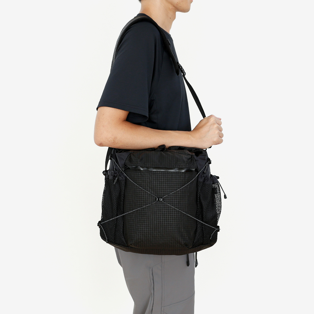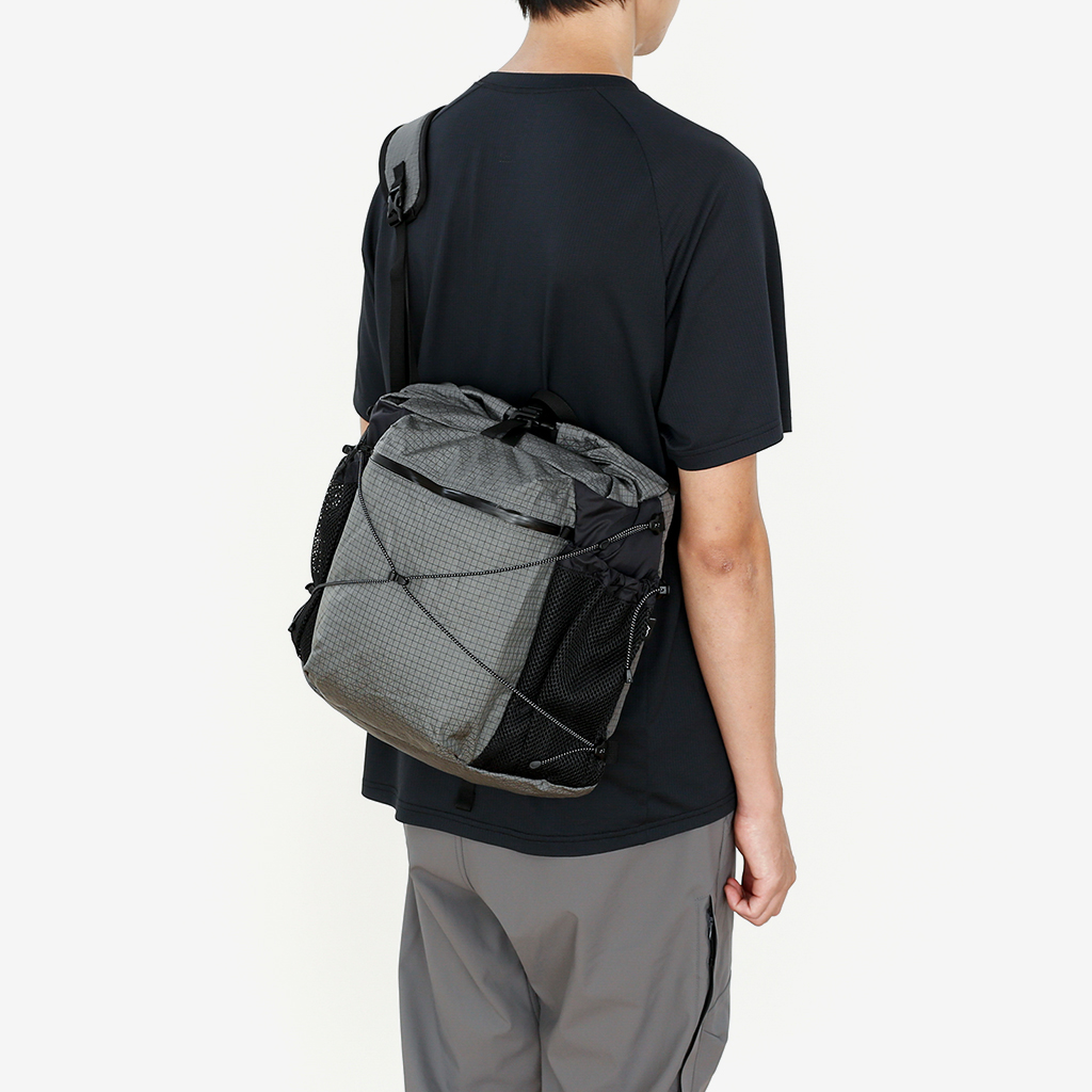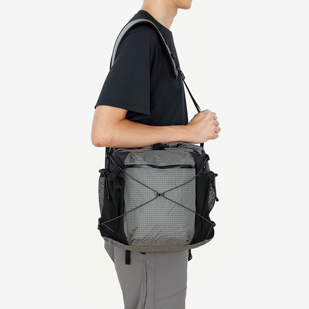 ハイキングバッグのノウハウを生かしたCAYLが提案するあらたなライフスタイルバッグ『Rolltop Cross Bag』 容量10Lでデイリーユースに最適なショルダーバッグは、ロールトップで荷物量に合わせて調整できます。 メインコンパートメントの内部には、PCも収納可能なクッション付きジッパーポケットを備え、外側にもメッシュポケットと、ジッパーポケットで整理しやすい設計になっています。 ショルダーベルトは取り外しも可能で、手持ちスタイルでも使用可能。 メイン部分には、タフで耐久性の高いグリッドファブリックを。サイドには軽量でしなやかな70D リップストップナイロンを配置。 異なる素材をCAYLらしいデザインでまとめ上げています。 カラー:B-Grid Black カラー:B-Grid Grey ロールトップ入口はスナップボタン式。 お好みでウエストベルトをショルダーベルトに接続することで、より安定して背負えます。 ウエストベルトは簡単に取り外しも可能です。 ハイキングバッグのノウハウを生かしたCAYLが提案するあらたなライフスタイルバッグです。
