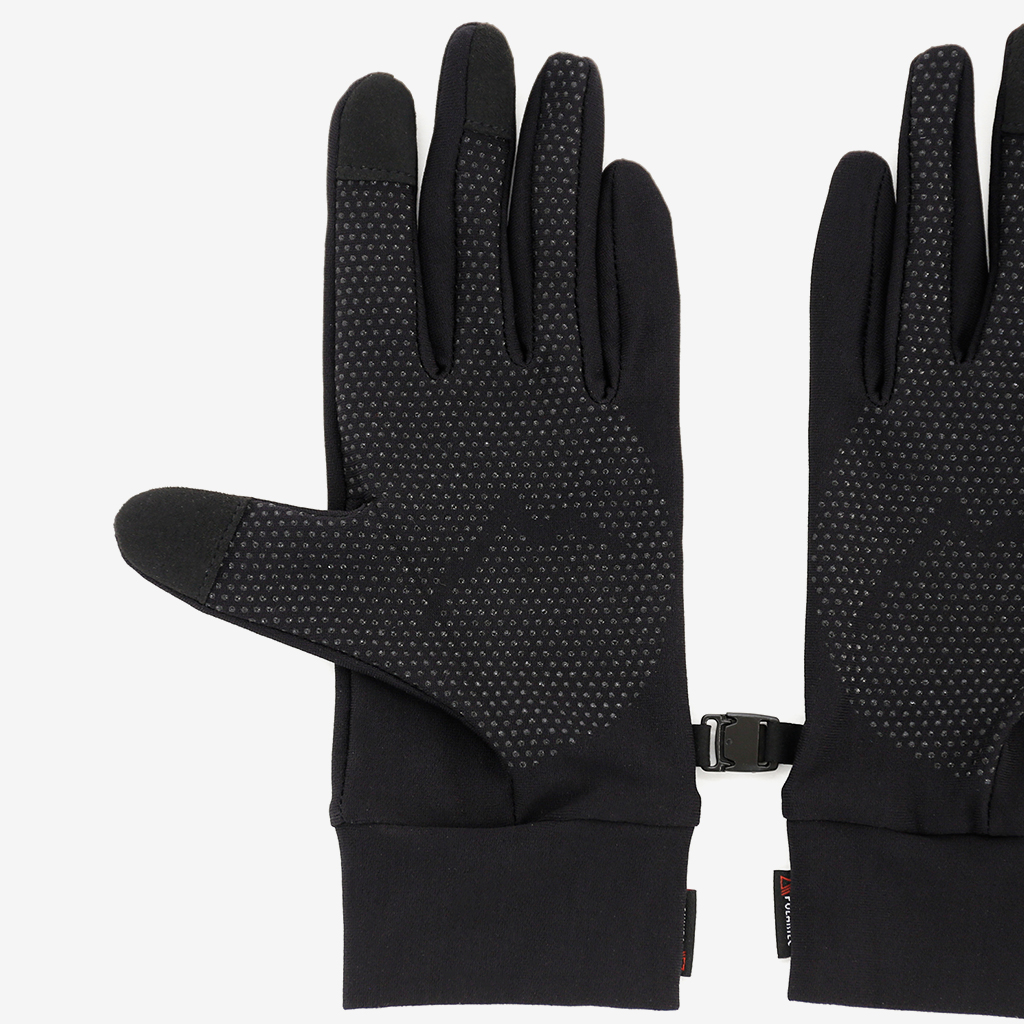 CAYL『Light Power Stretch Glove』は、ストレッチ性と保温性に優れ、スマートフォンも操作可能な軽量グローブ。 メイン素材に使用しているPolartec Power Stretch Proは、耐摩耗性、通気性、吸湿発散性にも優れ、内側は起毛され柔らかな肌触り。長時間着用してもストレスのない快適な使い心地。 手のひらにはノンスリップコーティングが施されています。 紛失防止のため、左右を接続できるバックル付きなのもうれしいポイント。 薄手なので、インナーグローブとしても。 手のひら側は全体にノンスリップコーティングが施されています。 親指、人差し指、中指はスマホ操作も可能です。 使わない時は左右をバックルで固定しておけば紛失防止になります。 薄手なので使えるシーズンが長く、アウトドアはもちろん、デイリーユースでも重宝するストレッチ性抜群のグローブです。