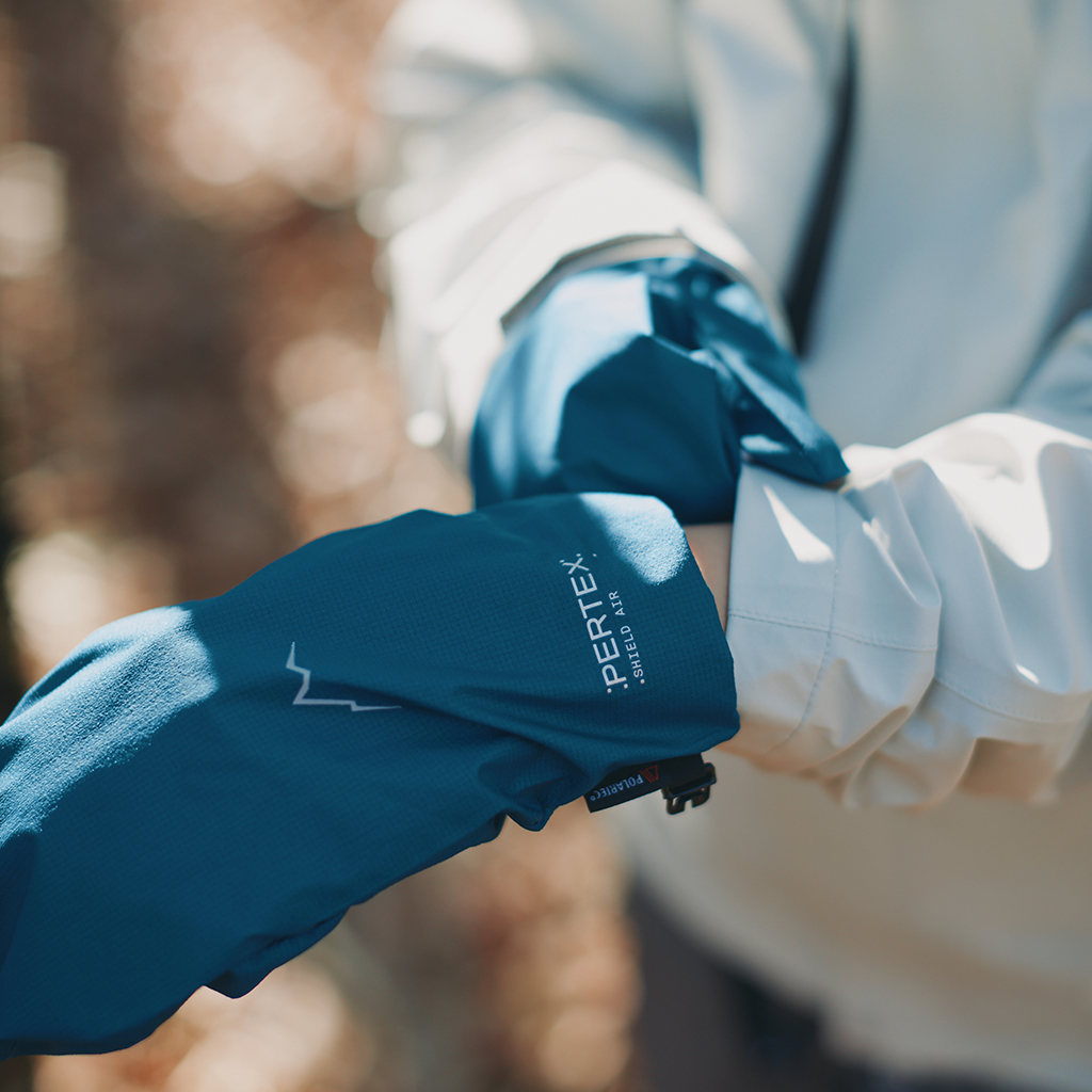 CAYL『Shield Air Cover Glove』は、『Light Power Stretch Glove』に、高い防水性と通気性を両立したPertex Shield Air製のミトン型オーバーグローブが付いた手袋。 メインのグローブ部分は、ストレッチ性と保温性、耐摩耗性、通気性、吸湿発散性にも優れたPolartec Power Stretch Proを使用。 内側は起毛され柔らかな肌触りで、長時間着用してもストレスのない快適な使い心地。スマートフォンも操作可能です。 手のひらにはノンスリップコーティングが施されています。 紛失防止のため、左右を接続できるバックル付きなのもうれしいポイント。 手首部分に収納されたオーバーグローブでカバーすることで、雨風を防ぎ、防寒性もアップ。 軽量コンパクトながら、これ1双で変化するシチュエーション対応できます。 ※オーバーグローブは手首部分に縫い付けられており、個別で単体では使用できません。 ※不意な破損を防止するため、オーバーグローブの脱着はゆっくりとおこなってください。 オーバーグローブは手首の外側にコンパクトに収納できます。 使わない時は左右をバックルで固定しておけば紛失防止になります。 手のひら側は全体にノンスリップコーティングが施されています。 親指、人差し指、中指はスマホ操作も可能です。 ※不意な破損を防止するため、オーバーグローブの脱着はゆっくりとおこなってください。 軽量コンパクトながら、これ1双で変化するシチュエーション対応できます。