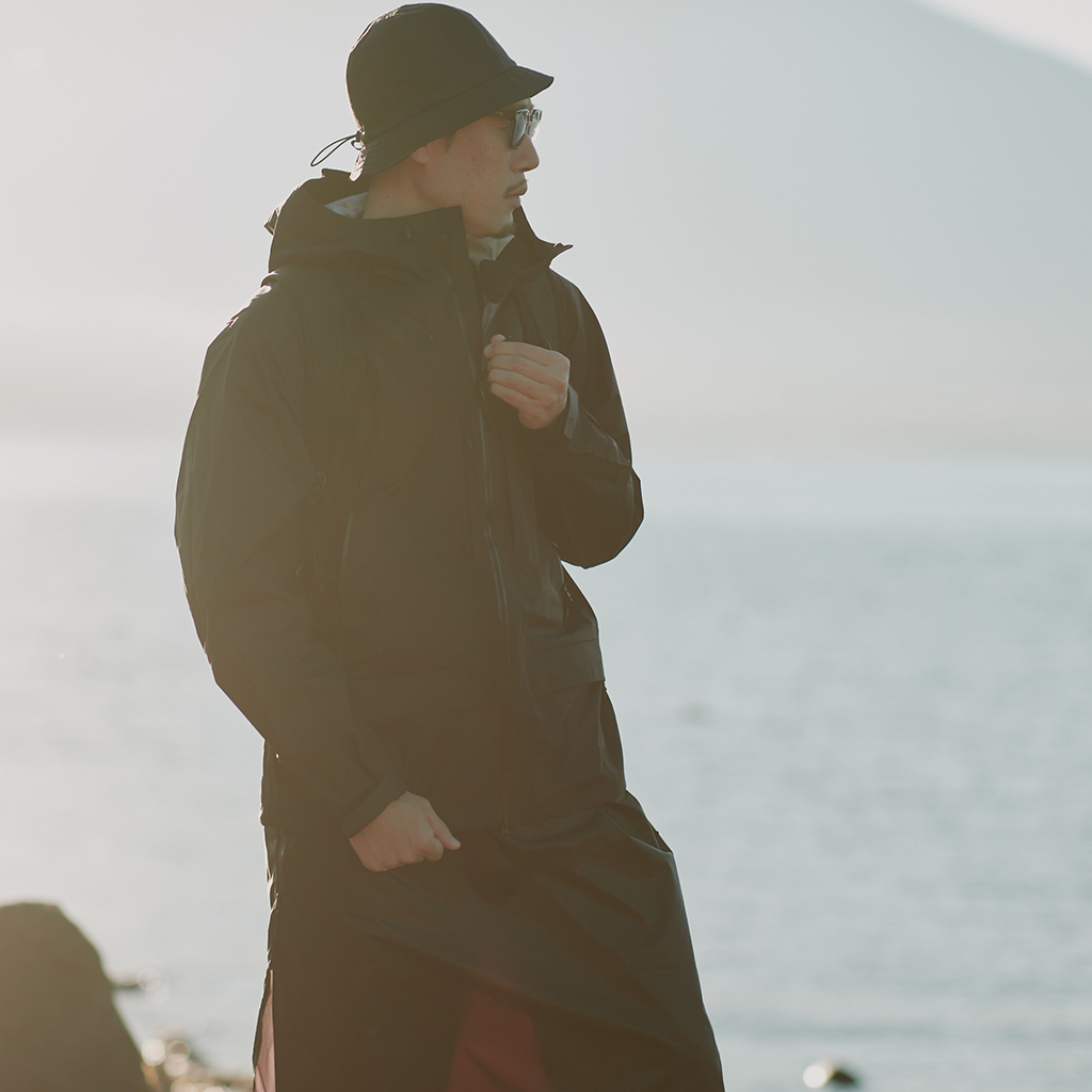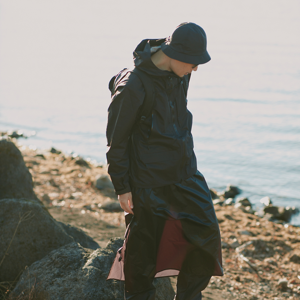 実用的でテクニカルなアイテムを展開する韓国のブランド【USAGE】と、【CAYL】のコラボレーションによるカプセルコレクション。 今回のコラボでは、アウトドアで使われる素材を使って、ライフスタイル向けのコレクションを展開しています。 『Jacket 1』『Long Sleeve 1』『Pants 1』『Hat 1』『Bag 2』『Bag 3』の6アイテムのリリースとなります。 『Hat 1』は、抜群の透湿性で蒸れにくく、快適に被り続けられるレインハット。 CAYLが新たに開発したナノフィルムを用いた3レイヤー生地は、防水性や耐風性、耐久性はしっかり備えながら、65,000 g/m2/24hものハイレベルな透湿性を実現。衣服内がドライな状態に保たれます。 フリーサイズで、後部のドローコードでスムーズにサイズ調整できます。 ミニマムなデザインながら、シルエットにこだわった、品のあるレインハットです。