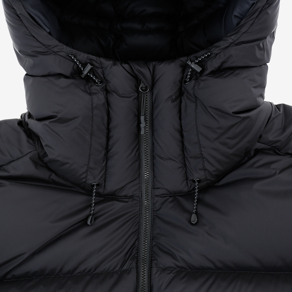 フードとウエスト部はドローコードで絞れば保温力が上がり、フロントはダブルジッパーなので素早く換気もできます。