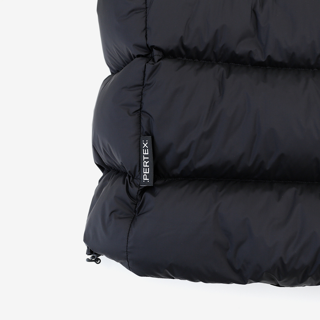 シェルにはダウンジャケットに適したPertex Quantumを採用。Pertex Quantumは、軽量ながら引裂強度、縫い目強度にとても優れ、極細糸を高密度に織り上げているので中のダウンが抜け出しにくくなっています。(Downproof)
