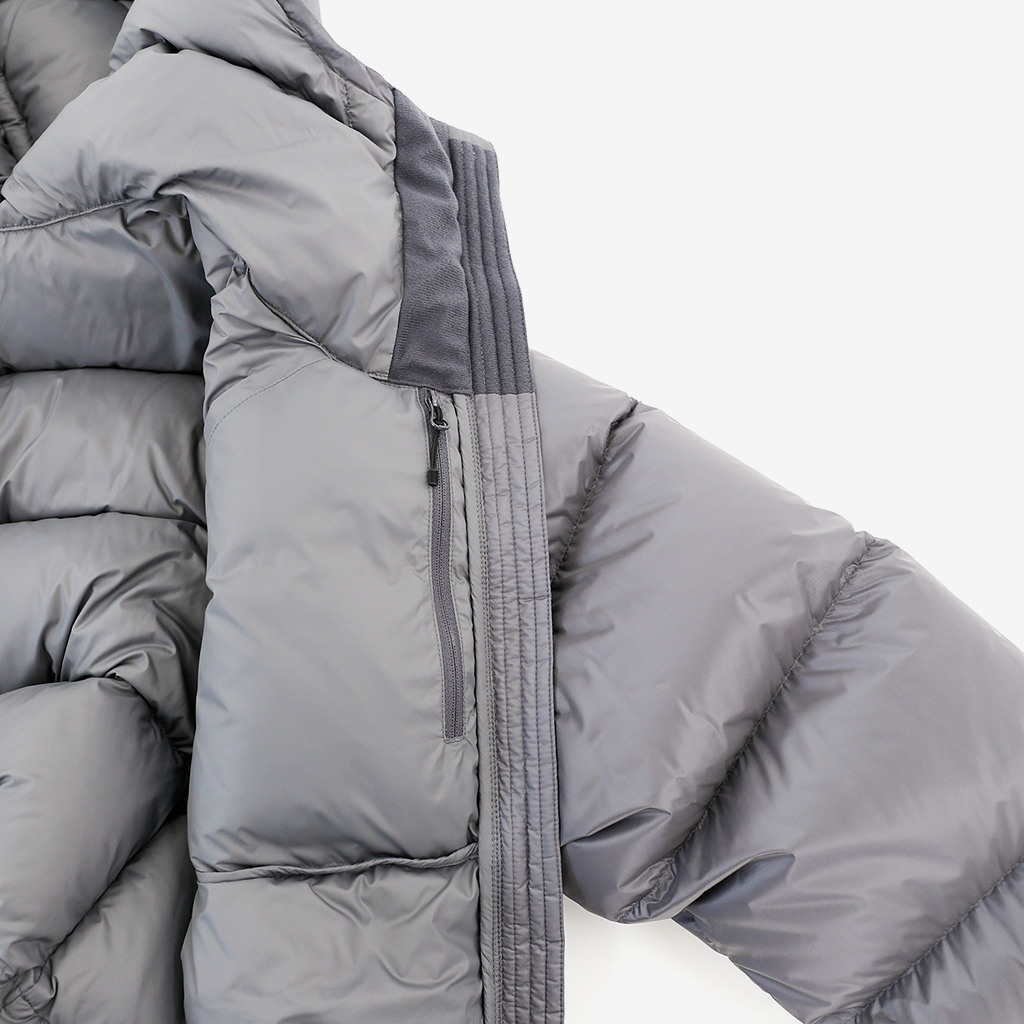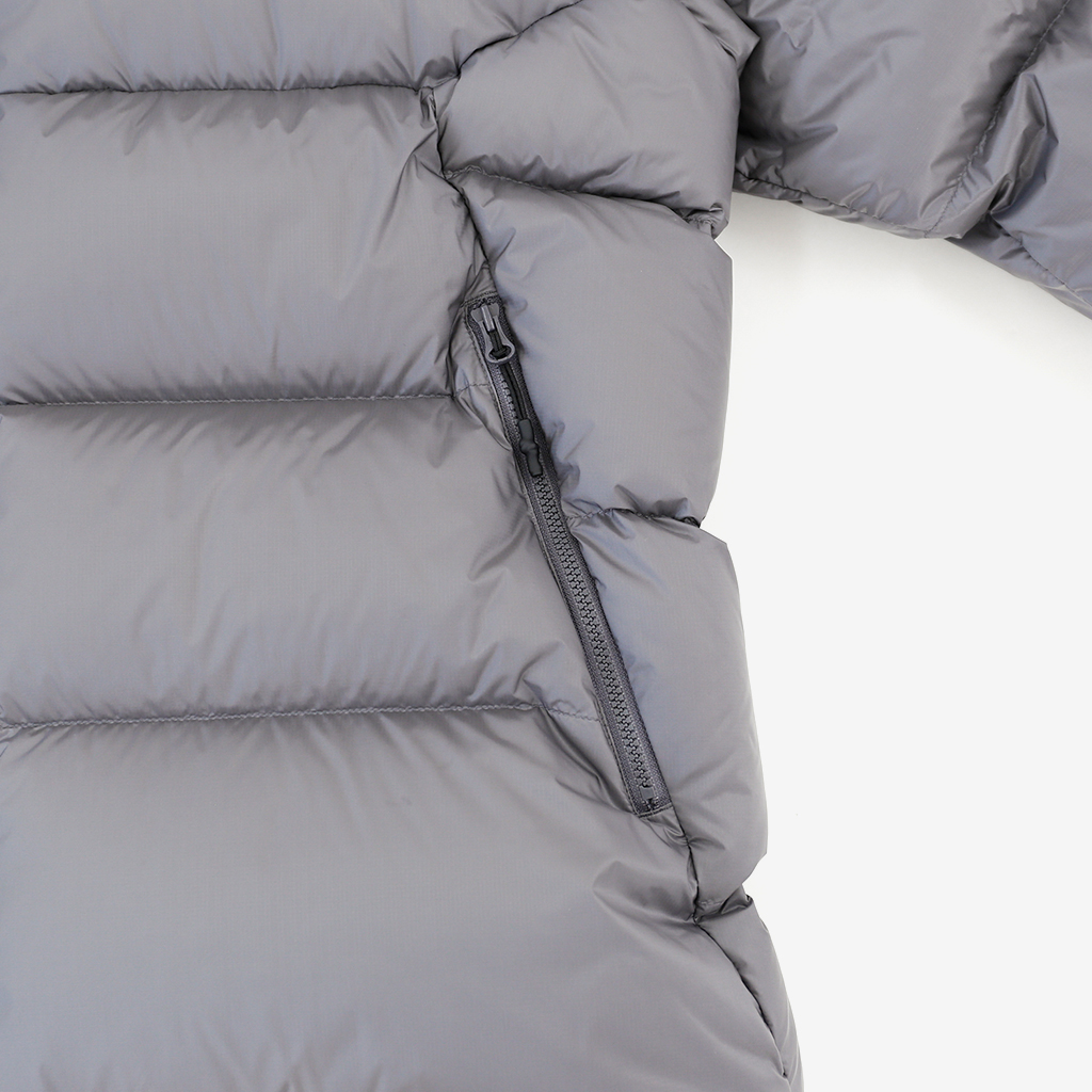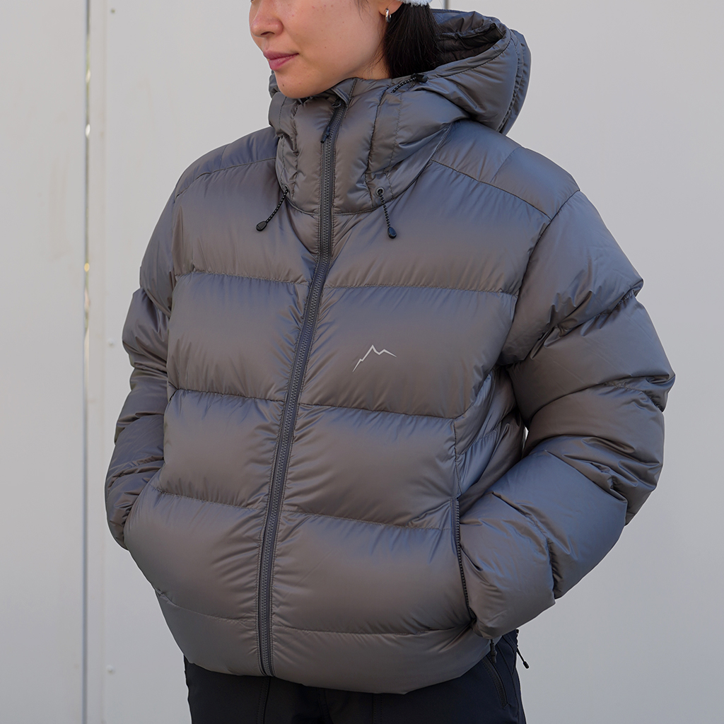 CAYL『Down Jacket』は、インサレーションに900フィルパワーのEuropean Goose Downを約200gと贅沢に使った極暖ダウンジャケット。 シェルにはダウンジャケットに適したPertex Quantumを採用。Pertex Quantumは、軽量ながら引裂強度、縫い目強度にとても優れ、極細糸を高密度に織り上げているので中のダウンが抜け出しにくくなっています。(Downproof) また、耐久撥水加工も施されています。 フードとウエスト部はドローコードで絞れば保温力が上がり、フロントはダブルジッパーなので素早く換気もできます。 シンプルなデザインに左右のハンドウォーマーポケット、内側には胸ポケットと、メッシュポケットも備えます。 軽量ながらロフトの高いバフバフのボリュームで、厳冬期でもしっかりと寒さから身を守れます。付属の収納ポーチにコンパクトに収納して持ち運べます。 フードあり、フードなしバージョンがあります。 モデル:184cm / Lサイズ モデル:158cm / XSサイズ