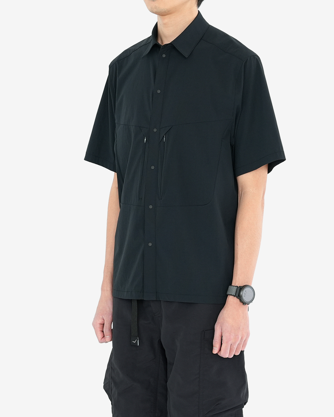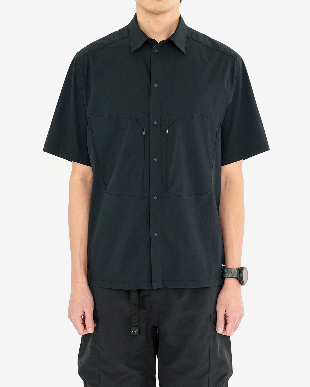 CAYL『Air Breathe Short Sleeve Shirts』は、通気性の良いストレッチナイロンに、撥水コーティングを施した生地で作られたスナップボタンタイプの半袖シャツ。 バックパックを背負っても干渉しづらい位置に、ジッパー付きポケットを備えます。 しなやかでサラッとした着心地に、高い通気性で、暑い時期のハイキングはもちろん、自転車や旅でも快適。 同素材で作られた『Air Breathe Shorts』との組み合わせも◎ Black、Greyの2カラー展開です。 モデル:184cm Lサイズ
