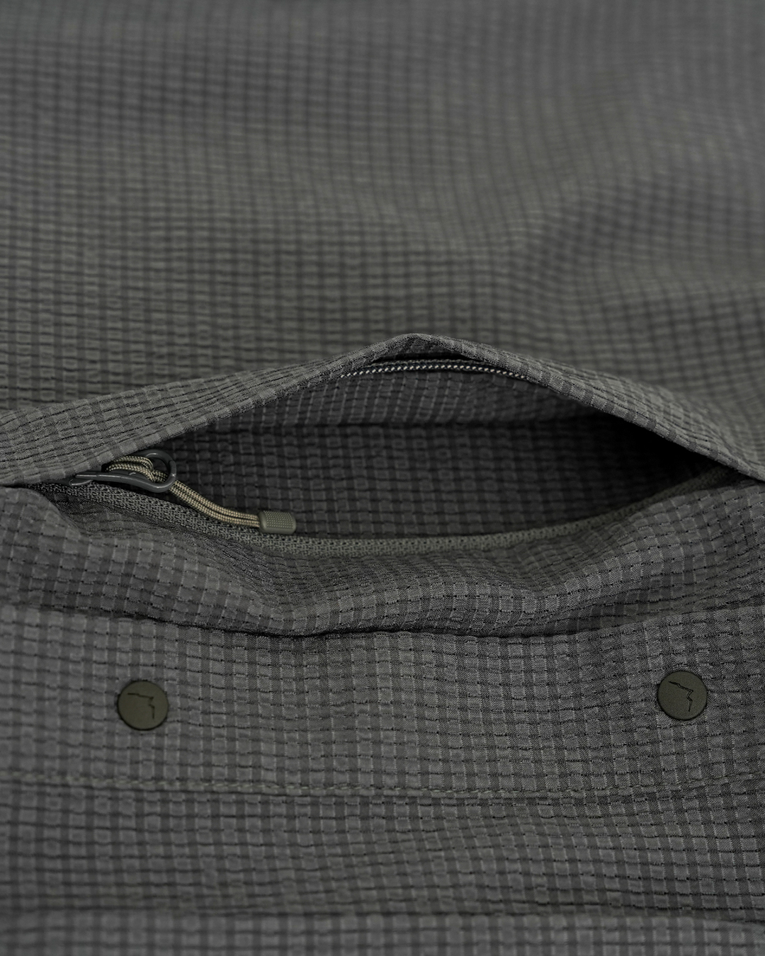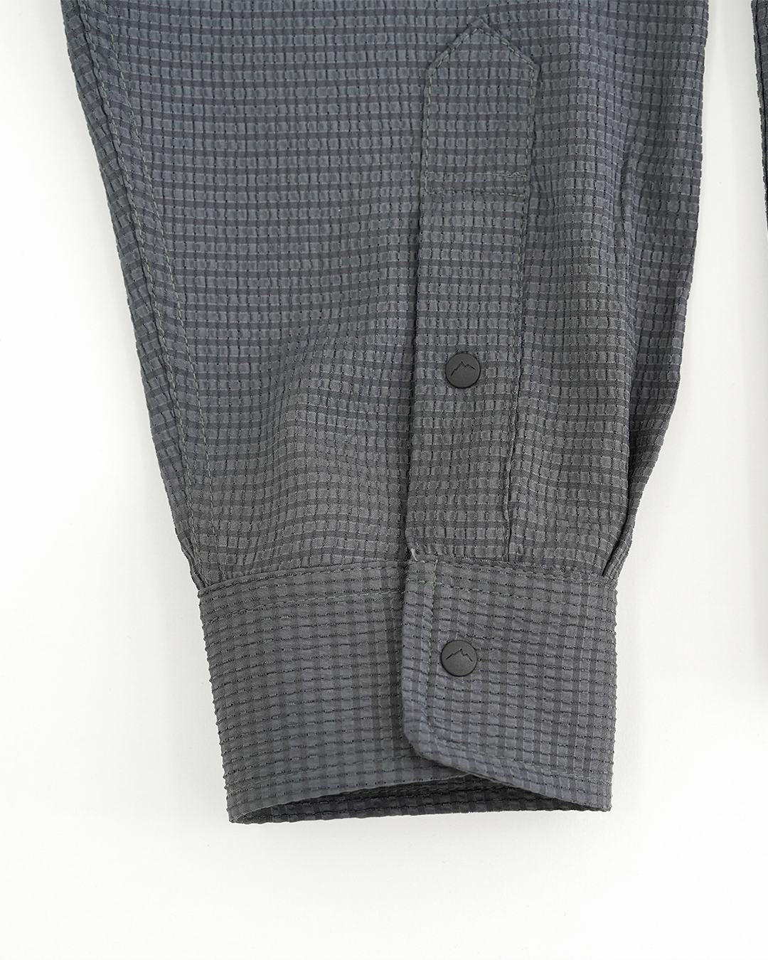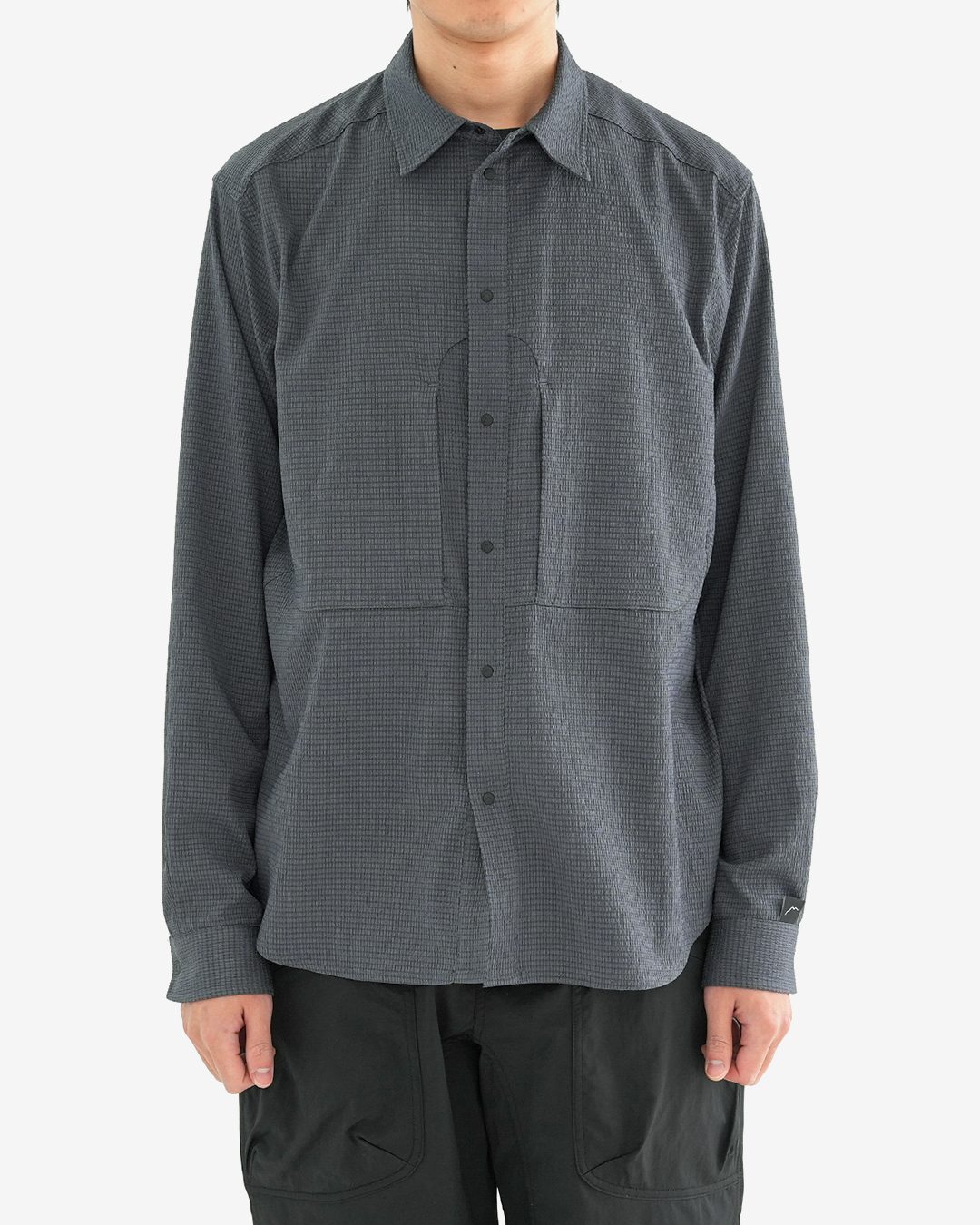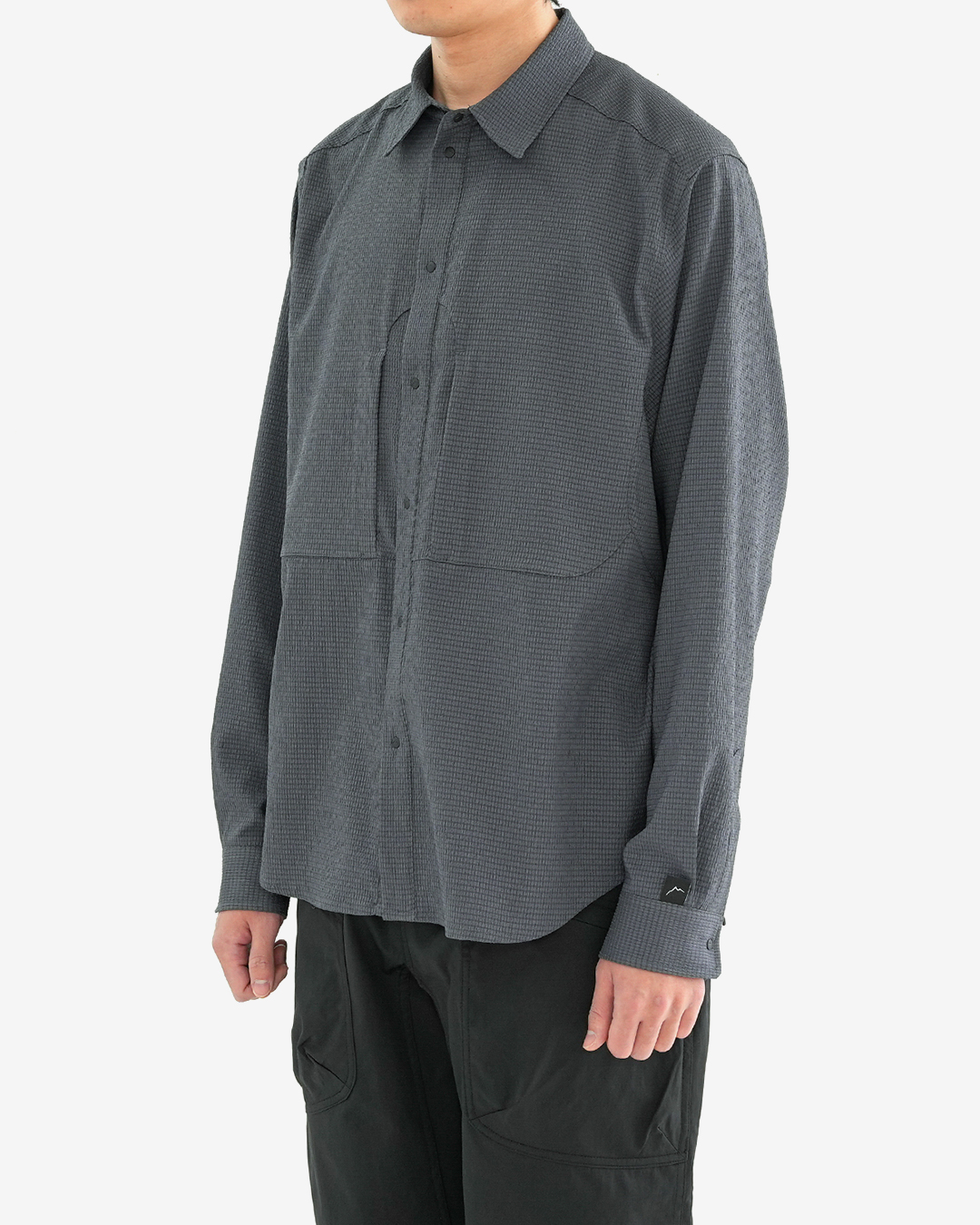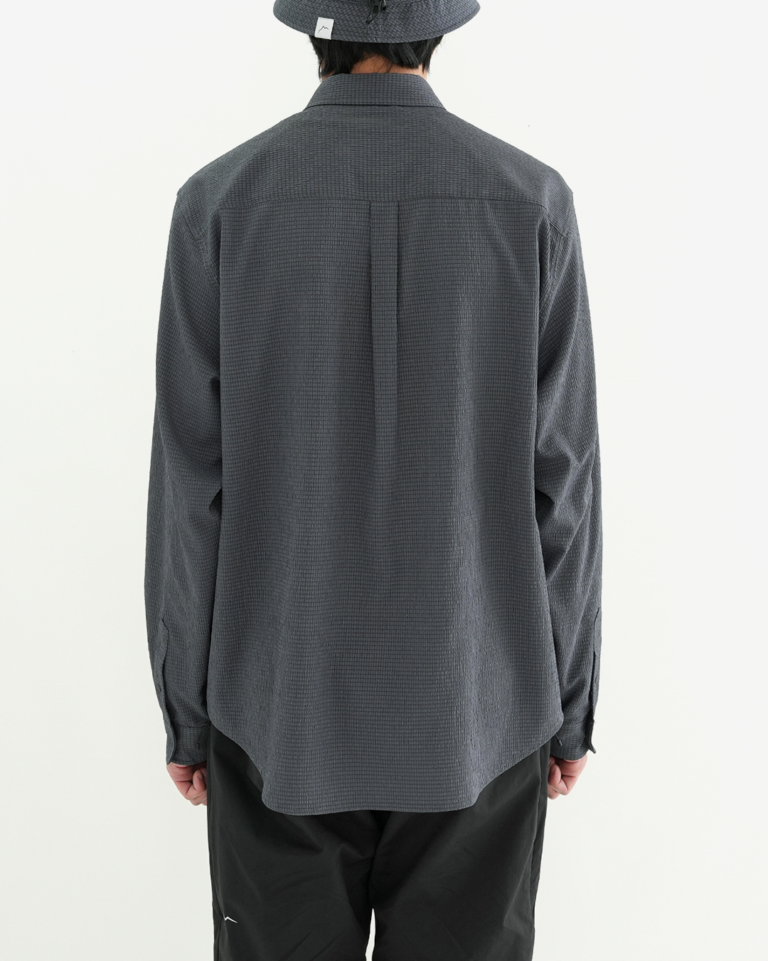 凹凸のあるシアサッカー生地で作られた『Flow Seersucker Shirts』 生地全体に細かな穴が設けられていて、抜群の通気性と軽量性。 凹凸のある生地は、肌離れが良く、汗をかいても快適です。 薄手ながら撥水コーティングが施され、バックパックを背負っても干渉しづらい位置にジッパー付きポケットを備えます。 スナップボタンなので糸切れの心配もなく、スムーズに開け閉めできます。 夏の稜線での日焼け対策にも重宝します。 同素材で作られた『Flow Seersucker Hat』との組み合わせも◎