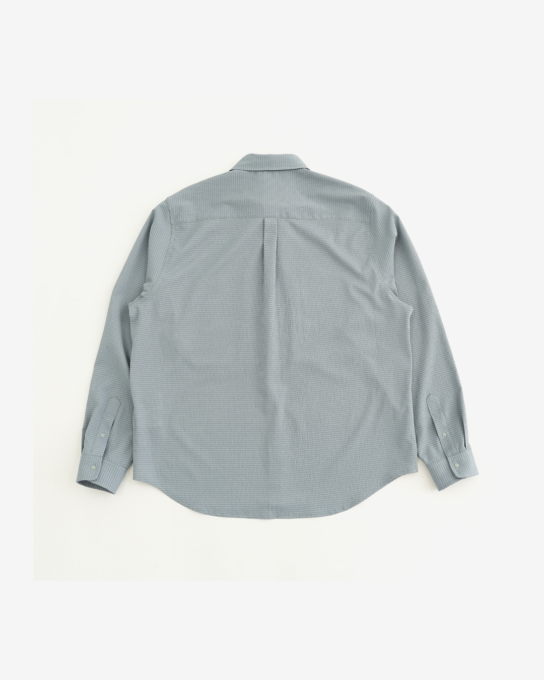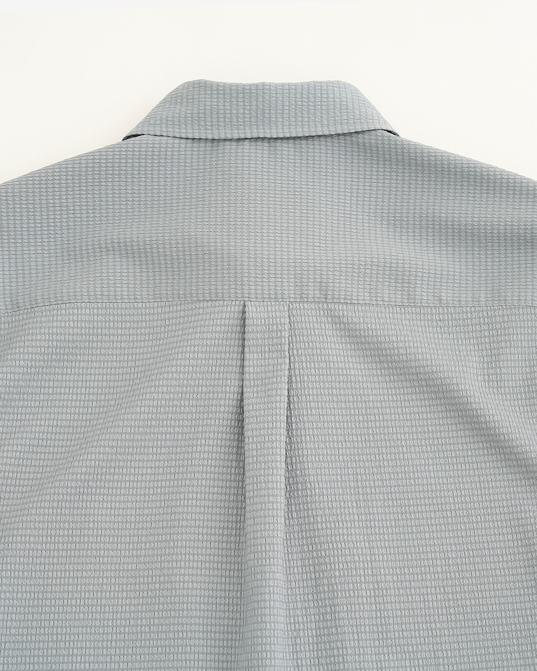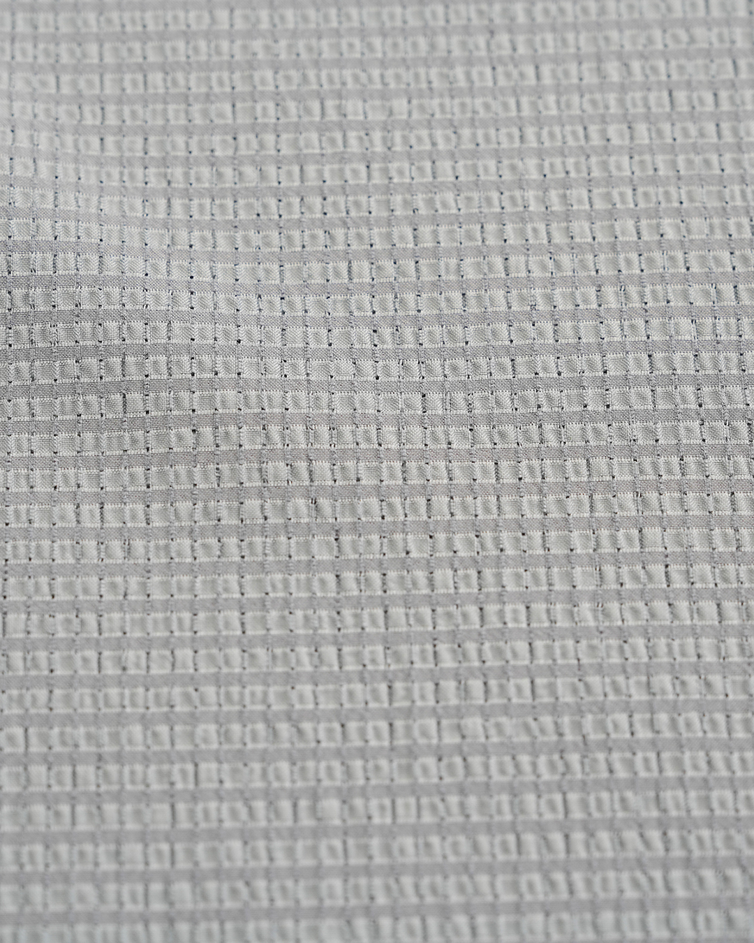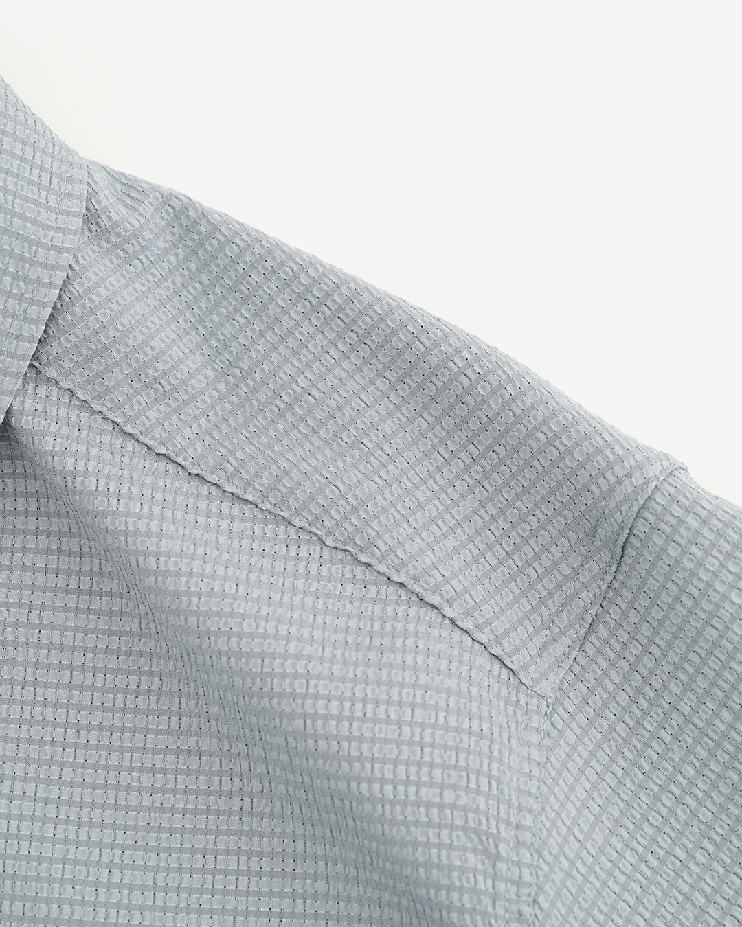 凹凸のあるシアサッカー生地で作られた『Flow Seersucker Shirts』 生地全体に細かな穴が設けられていて、抜群の通気性と軽量性。 凹凸のある生地は、肌離れが良く、汗をかいても快適です。 薄手ながら撥水コーティングが施され、バックパックを背負っても干渉しづらい位置にジッパー付きポケットを備えます。 スナップボタンなので糸切れの心配もなく、スムーズに開け閉めできます。 夏の稜線での日焼け対策にも重宝します。 同素材で作られた『Flow Seersucker Hat』との組み合わせも◎
