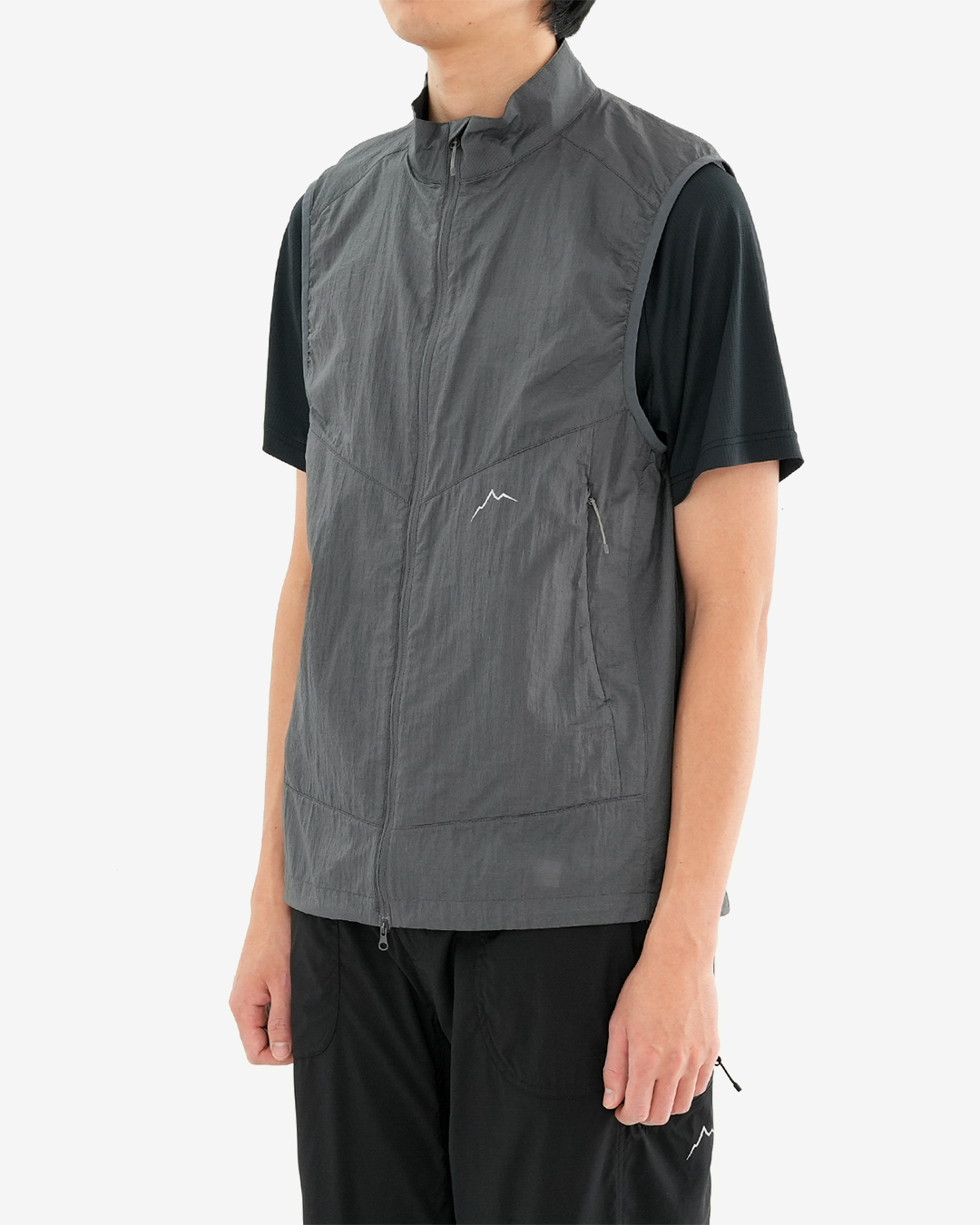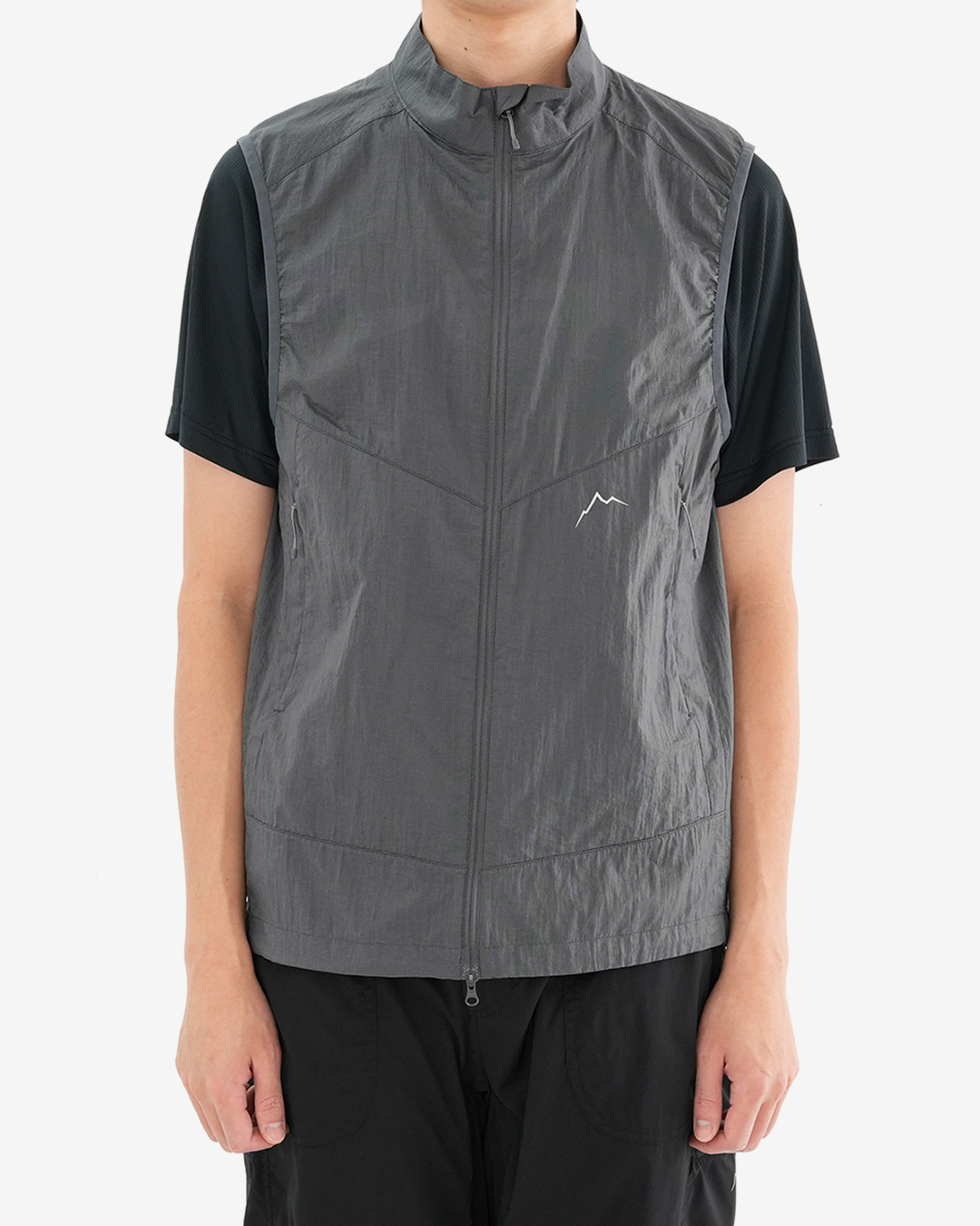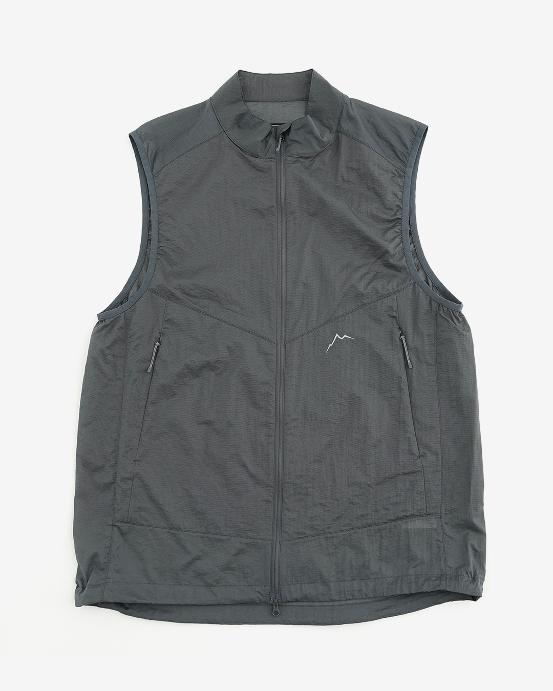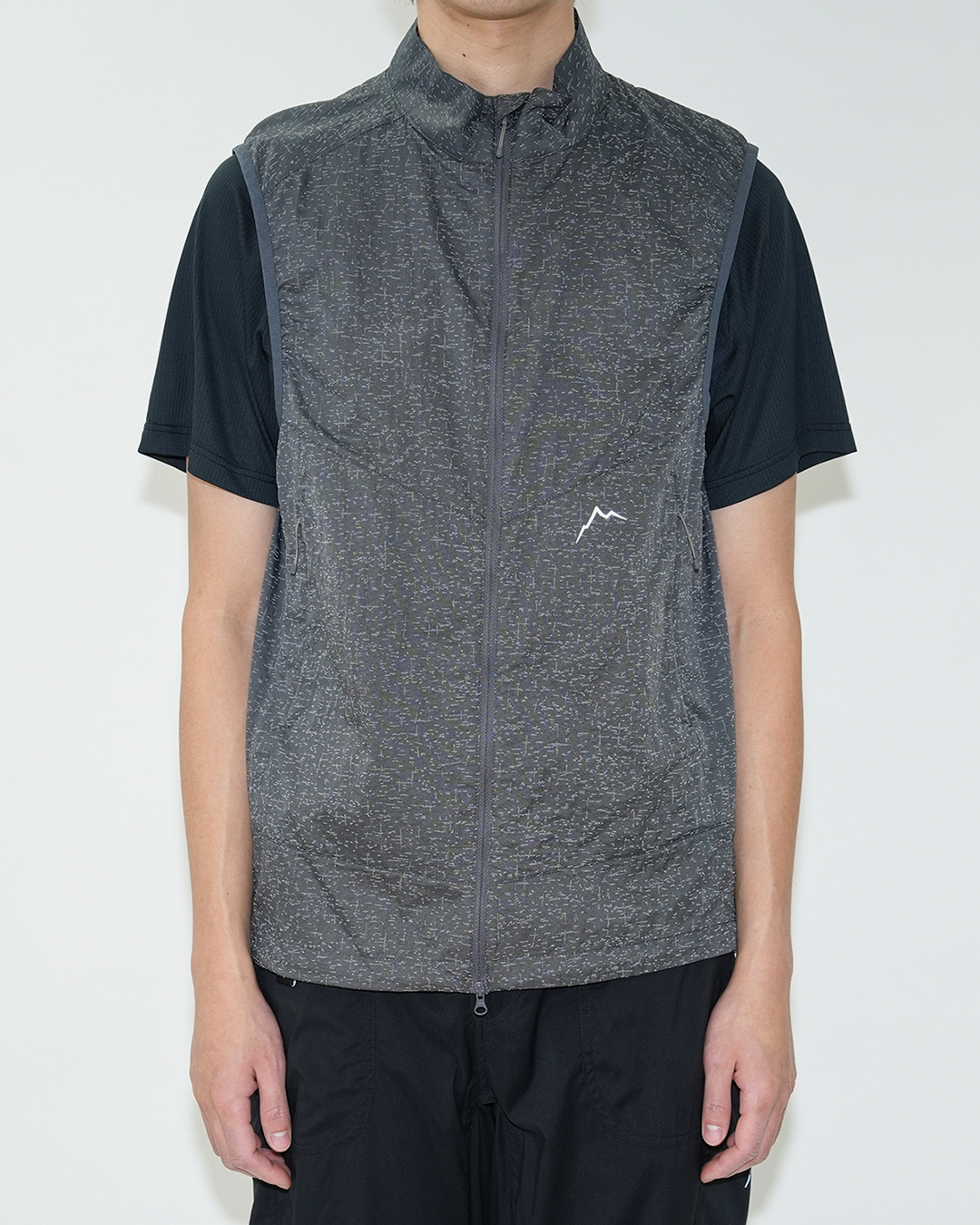 ファンの多いCAYLのReflectシリーズの最新作『Reflect Wind Vest』 軽量で防風性、通気性のバランスに優れたナイロン生地は、全体に反射プリントを施され、夜間の車やヘッドライトの光を反射し、安全に行動できます。 撥水加工もされており、ちょっとした雨なら凌げて、収納もコンパクト。 フロントはダブルジップなので、手軽にベンチレーションを調整でき、裾はコードで絞れます。 薄くてもしっかり防風してくれるので、アクティビティはもちろん、旅行、デイリーユースにも、1枚あるととても重宝するウインドベスト。スタイリングのアクセントにも最適です。 Black、Dark Grey、Dark Blueの3カラー展開になります。 背面。 フロントはダブルジップでベンチレーション調整もスムーズ。 裾はコードで絞れます。 モデル:184cm / Lサイズ 強い光が当たるとリフレクタープリントが浮かび上がります。