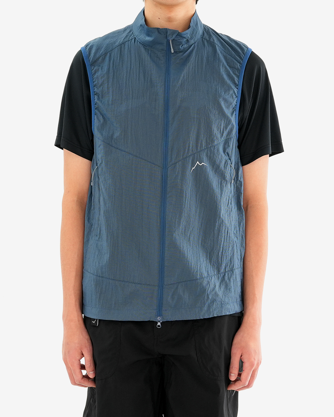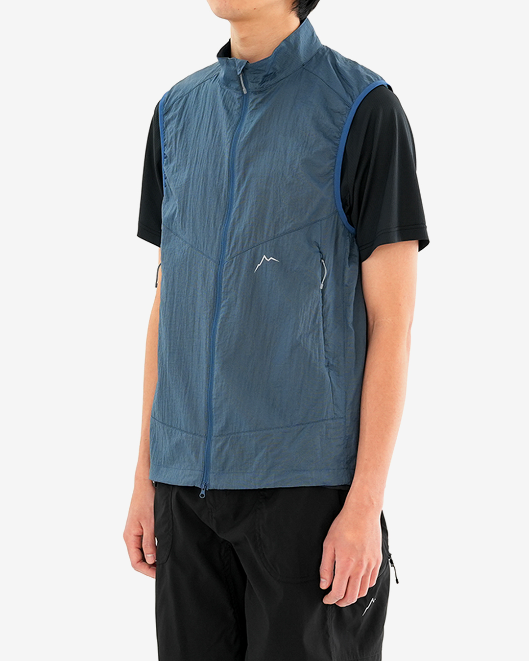 ファンの多いCAYLのReflectシリーズの最新作『Reflect Wind Vest』 軽量で防風性、通気性のバランスに優れたナイロン生地は、全体に反射プリントを施され、夜間の車やヘッドライトの光を反射し、安全に行動できます。 撥水加工もされており、ちょっとした雨なら凌げて、収納もコンパクト。 フロントはダブルジップなので、手軽にベンチレーションを調整でき、裾はコードで絞れます。 薄くてもしっかり防風してくれるので、アクティビティはもちろん、旅行、デイリーユースにも、1枚あるととても重宝するウインドベスト。スタイリングのアクセントにも最適です。 Black、Dark Grey、Dark Blueの3カラー展開になります。 背面。 フロントはダブルジップでベンチレーション調整もスムーズ。 裾はコードで絞れます。 モデル:184cm / Lサイズ 強い光が当たるとリフレクタープリントが浮かび上がります。