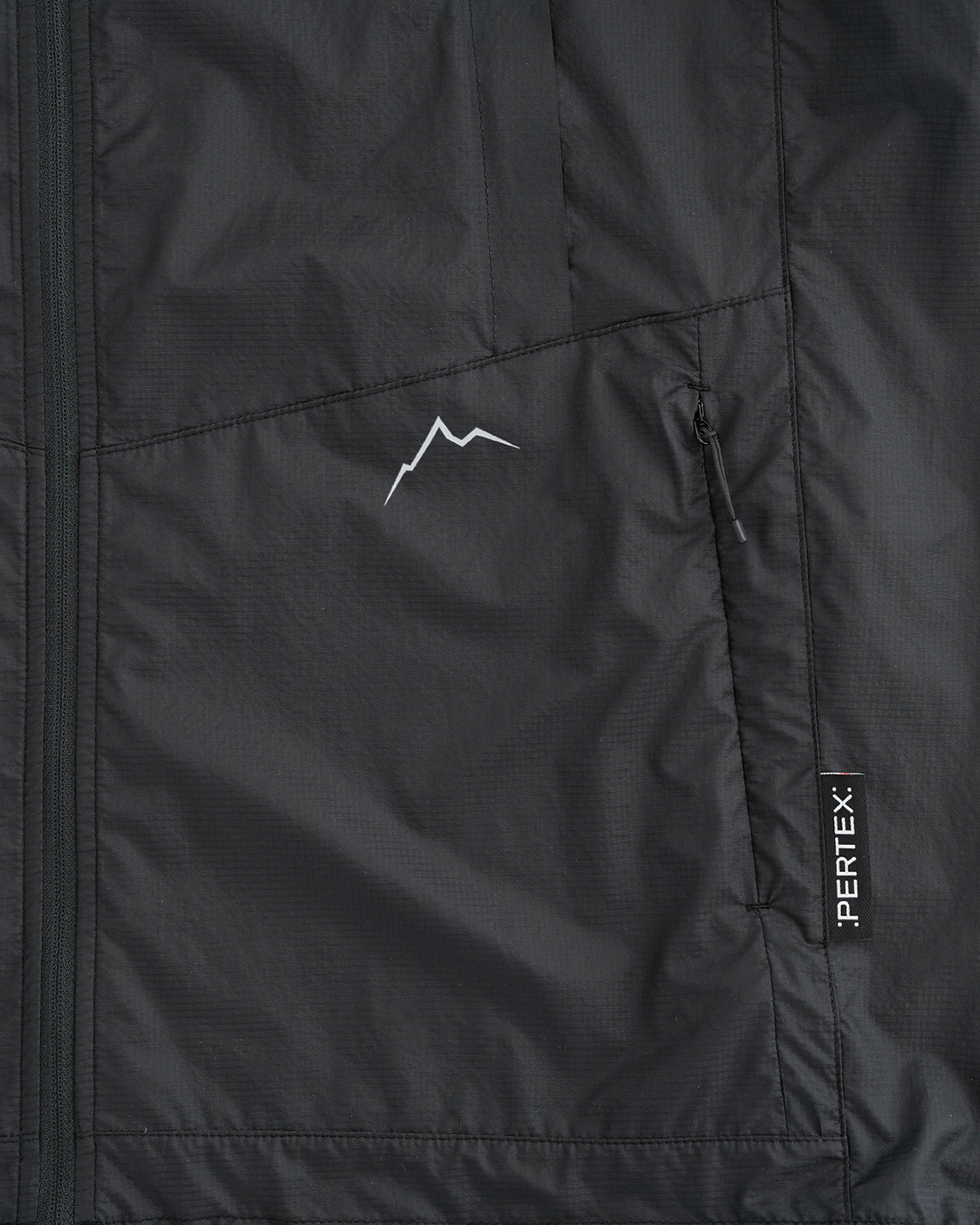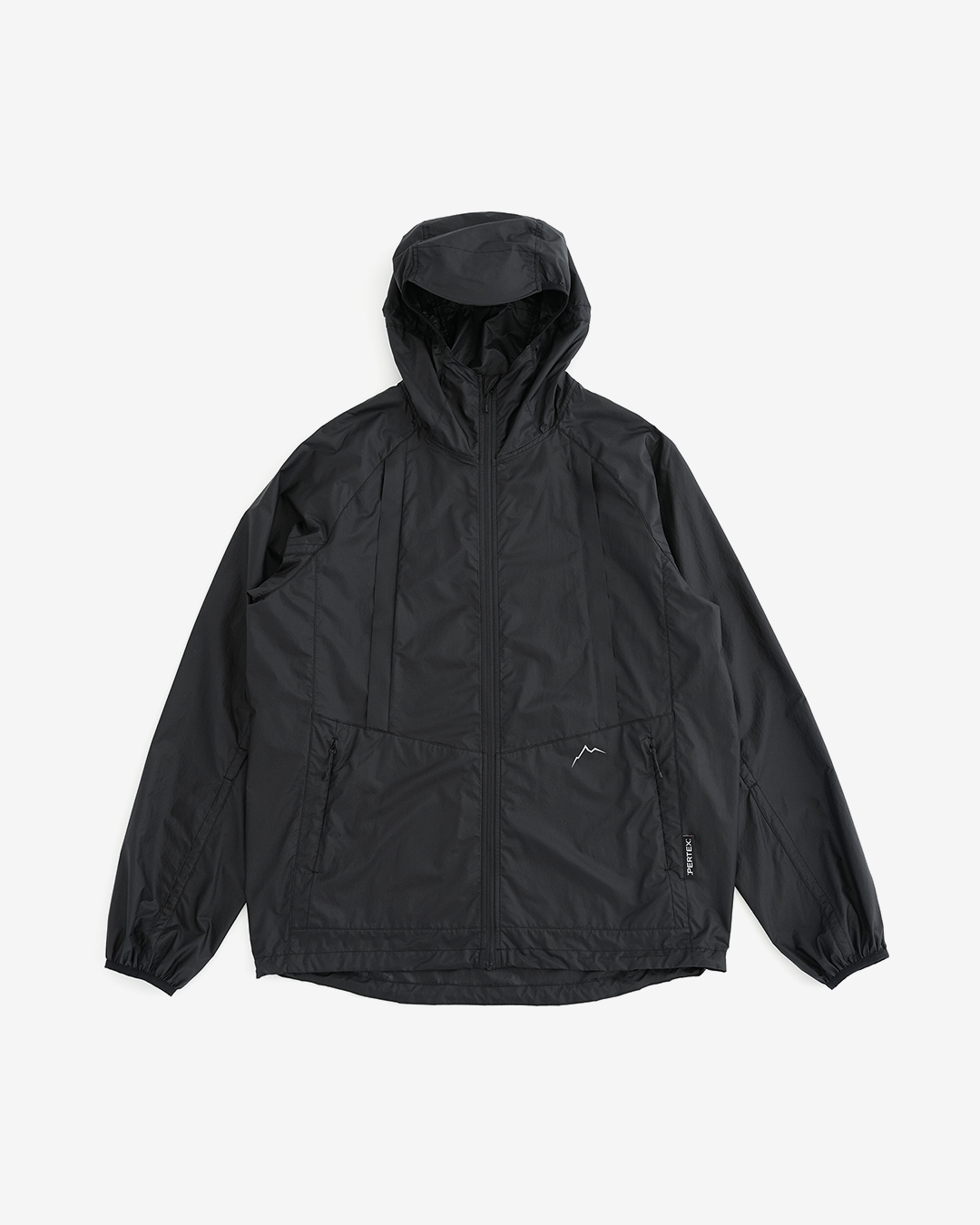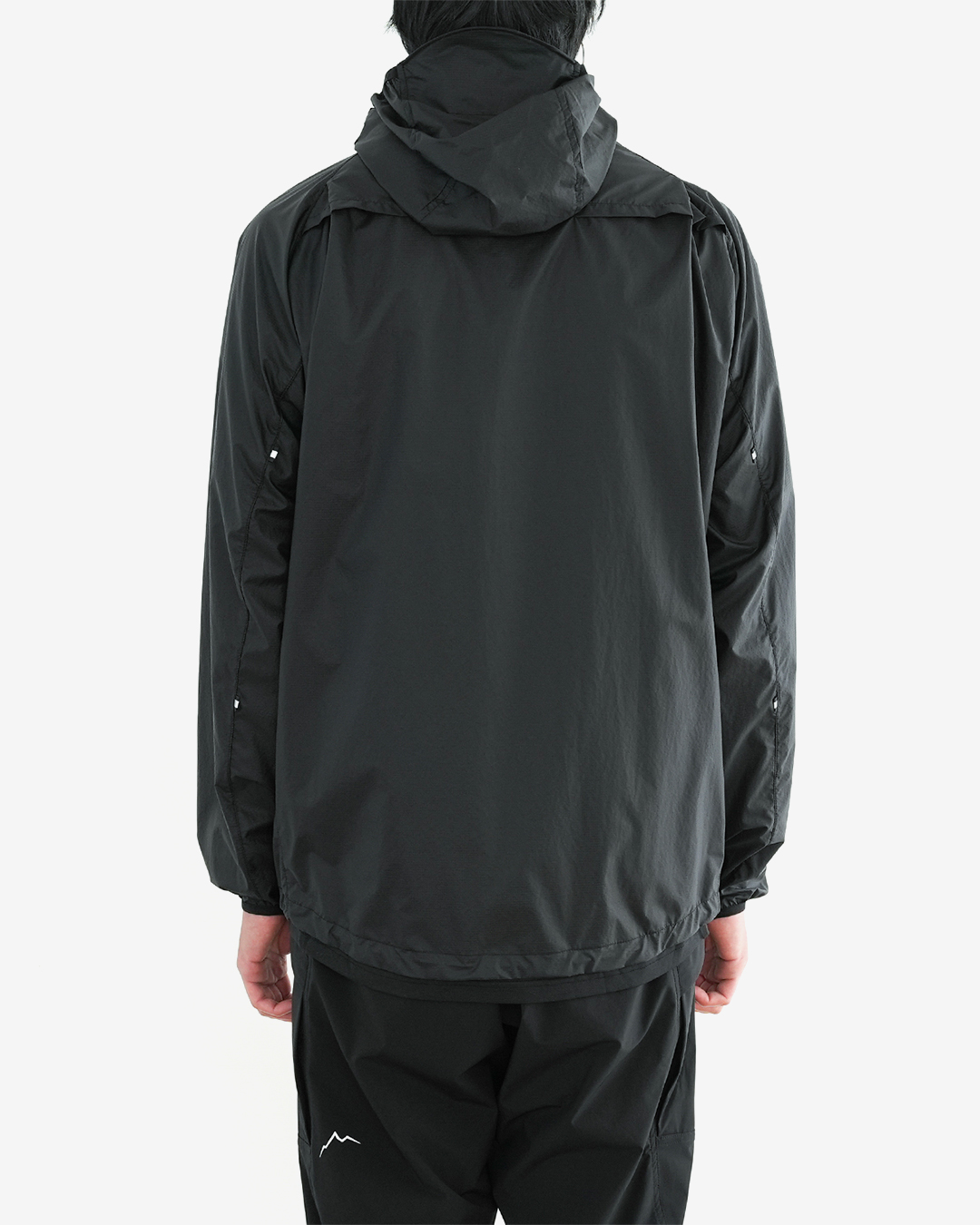 ユニークなベンチレーション構造を取り入れたウインドシェル。 両胸付近に大きく配されたジッパーが、ベンチレーションとともに、ランニングベストなどの上から羽織った時にドリンクボトルやハイドレーションチューブに直接アクセスできるようにしています。 さらに背面の肩部分と、肘の内側付近にもベンチレーションを備え、ランニングやスピードハイクなど負荷の高いアクティビティ中にもスピーディーに熱を逃がし、オーバーヒートしないよう体温コントロールができるようになっています。 採用している「Pertex Quauntum Air」は、軽量ながら耐風性と通気性のバランスを高次元で融合させた高機能素材。 撥水加工も施され、ちょっとした雨なら凌げて、収納もコンパクトに。 フードと裾はバンジーコードで調整可能。袖口はサムホール仕様になっています。 デザインと機能性をミックスさせたCAYLらしいウインドシェルです。 ユニークな両胸の大きなジッパー。ベンチレーションとともに、ランニングベストなどの上から羽織った時にドリンクボトルやハイドレーションチューブに直接アクセスできるようにしています。 裾はコードで絞れ、シルエットや丈感も調整できます。 肘の内側付近のベンチレーション。スナップボタン式になっています。 袖口のサムホール仕様。 背面部分のベンチレーション。 袖の後ろ側にはリフレクターが2か所。夜間のランニングなどで車からの視認性を確保しています。 モデル:184cm / Lサイズ