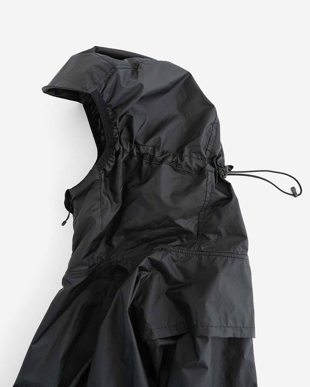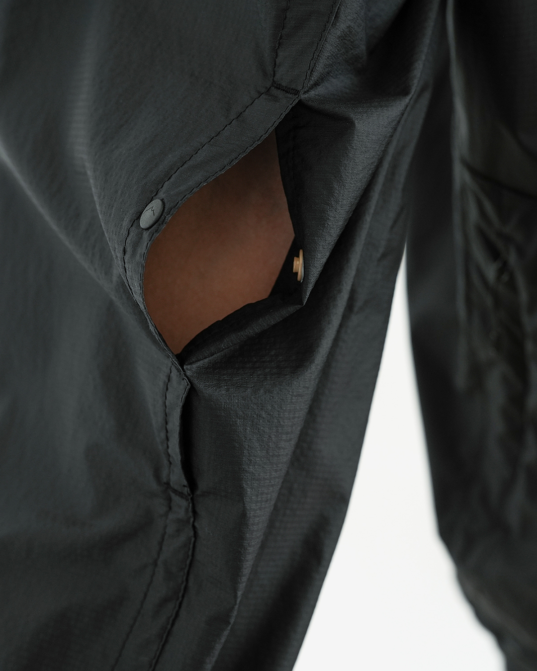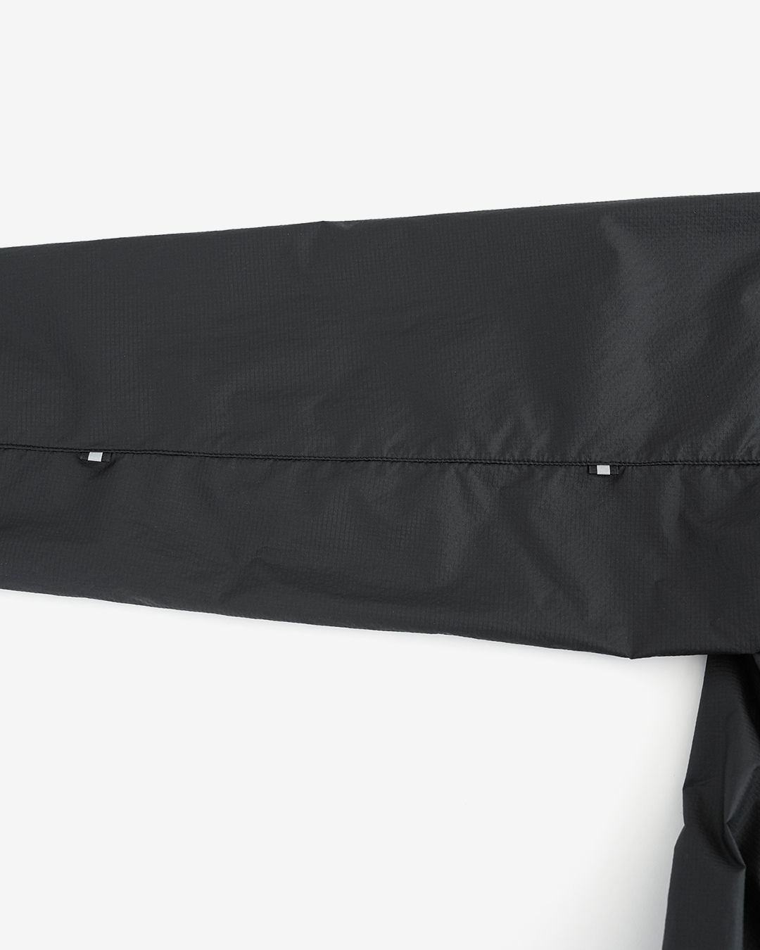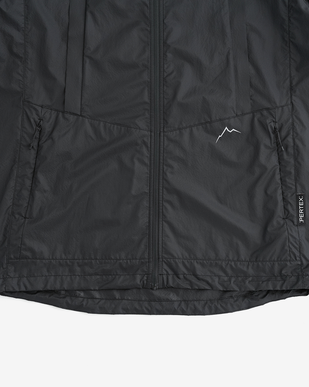 ユニークなベンチレーション構造を取り入れたウインドシェル。 両胸付近に大きく配されたジッパーが、ベンチレーションとともに、ランニングベストなどの上から羽織った時にドリンクボトルやハイドレーションチューブに直接アクセスできるようにしています。 さらに背面の肩部分と、肘の内側付近にもベンチレーションを備え、ランニングやスピードハイクなど負荷の高いアクティビティ中にもスピーディーに熱を逃がし、オーバーヒートしないよう体温コントロールができるようになっています。 採用している「Pertex Quauntum Air」は、軽量ながら耐風性と通気性のバランスを高次元で融合させた高機能素材。 撥水加工も施され、ちょっとした雨なら凌げて、収納もコンパクトに。 フードと裾はバンジーコードで調整可能。袖口はサムホール仕様になっています。 デザインと機能性をミックスさせたCAYLらしいウインドシェルです。 ユニークな両胸の大きなジッパー。ベンチレーションとともに、ランニングベストなどの上から羽織った時にドリンクボトルやハイドレーションチューブに直接アクセスできるようにしています。 裾はコードで絞れ、シルエットや丈感も調整できます。 肘の内側付近のベンチレーション。スナップボタン式になっています。 袖口のサムホール仕様。 背面部分のベンチレーション。 袖の後ろ側にはリフレクターが2か所。夜間のランニングなどで車からの視認性を確保しています。 モデル:184cm / Lサイズ