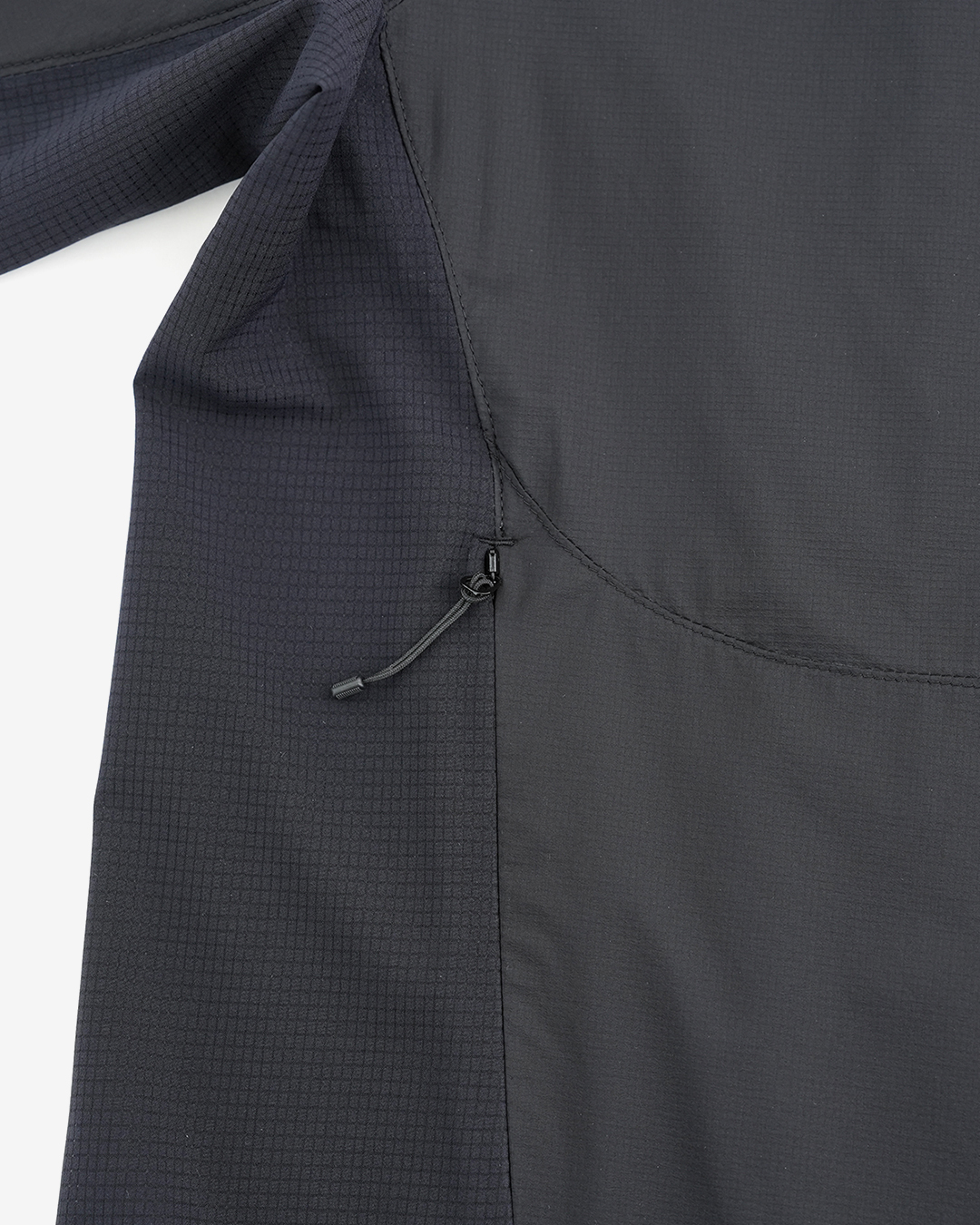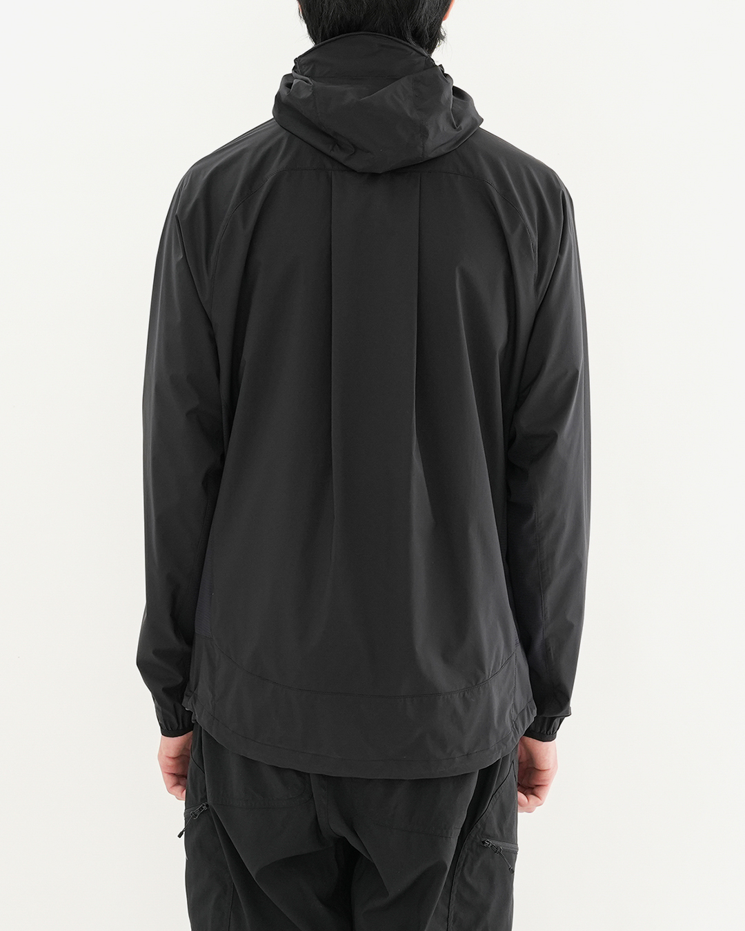 12DのPertex Equilibrium生地と、ストレッチメッシュ生地を組み合わせた『EQ Hybrid Jacket』 Equilibriumは、Pertex社の二重織生地で、表面と裏面で二層構造の生地にすることで、相反する性能を高レベルで提供してくれる機能素材です。 表面は適度な耐久性、防風、撥水性があり、裏面は隙間のある構造で吸汗性と通気性、速乾性を持たせており、ストレッチ性が高く快適なフィット感が魅力。 脇部分には通気性のあるストレッチメッシュを組み合わせることで、多彩なシーンに対応できる汎用性を持たせています。 フロントはダブルジップなので、手軽にベンチレーションを調整でき、裾はコードで絞れます。 フードは襟部分に収納したり、取り外しもできる仕様。 オールシーズン活躍するマルチジャケットです。 フードはスナップボタンで簡単に取り外し可能。 襟部分に収納もできます。 脇部分には通気性のあるストレッチメッシュを採用。オーバーヒートを防ぎます。 目の細かいストレッチメッシュ生地。 フロントはダブルジップでベンチレーション調整もスムーズ。 裾はコードで絞れます。 モデル:184cm / Lサイズ フードなしでスッキリしたスタイルにも。