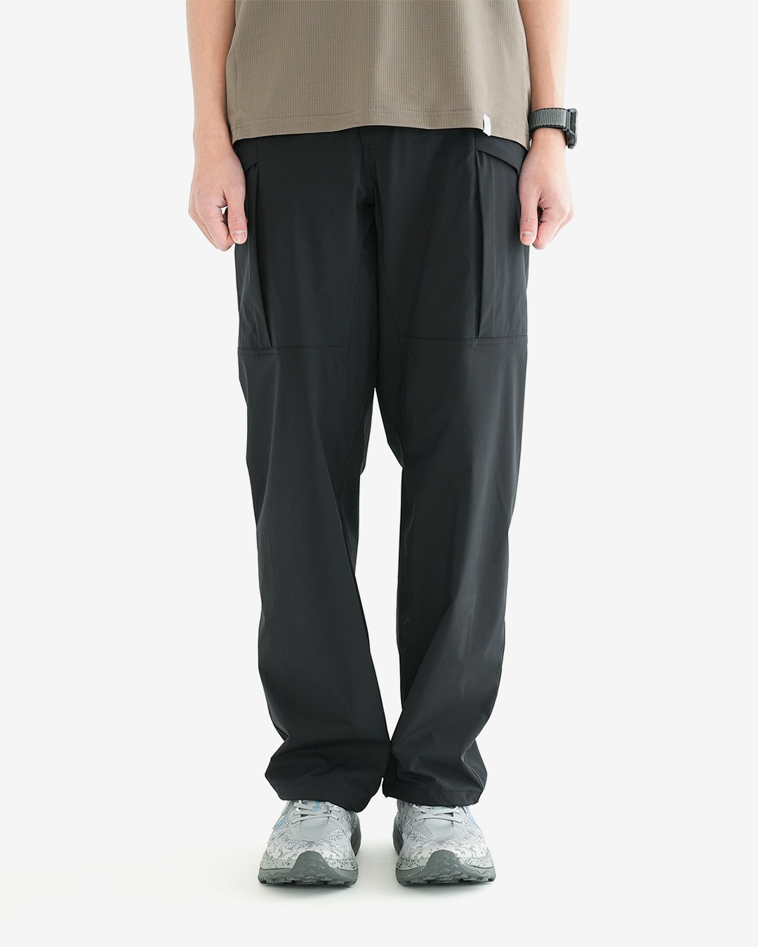 豊富な収納性と、抜群のストレッチ性を持つ『Stretch Cargo Pants』 サラッとしなやかな生地は通気性、速乾性も高く、暑いシーズンも快適。 フロントポケットはジッパータイプ。ヒップポケットも蓋つきなので物が落ちる心配はなし。 サイドのカーゴポケットにはマチもあり、手ぶらでも安心の収納力があります。 裾もストリングコードで絞れるので、シューズやサンダルなどによって、丈感やシルエットも変えられます。 アクティブなシーンにも、タウンユースでも快適な万能パンツ。 裾はコードで絞れ、シルエットや丈感も調整できます。 モデル:184cm / Lサイズ