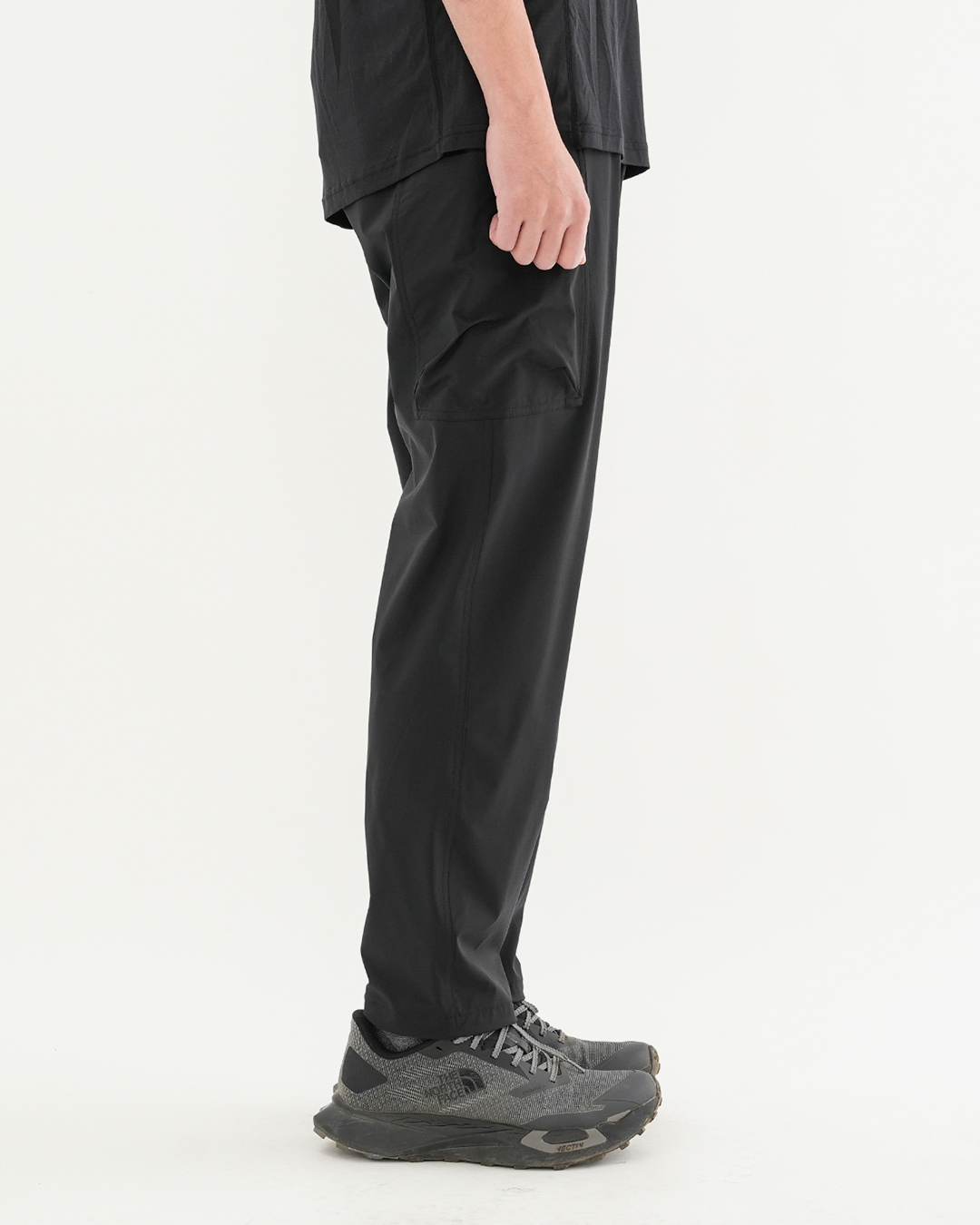 快適な通気性と、抜群のストレッチ性を持つ『Stretch Multi Pocket Pants』 豊富な7か所のポケットは、フロントポケットはダブルポケットで、片方はジッパータイプ。ヒップポケットは右がスナップボタンで、左がベルクロタイプ。右サイドのみカーゴポケットと、用途によって使い分けできます。 裾もストリングコードで絞れるので、シューズやサンダルなどによって、丈感やシルエットも変えられます。 生地には冷感効果もあり、暑いシーズンも快適。 フロントポケットは、オープンとジッパーのダブルポケット仕様。 裾はコードで絞れます。 モデル:184cm / Lサイズ