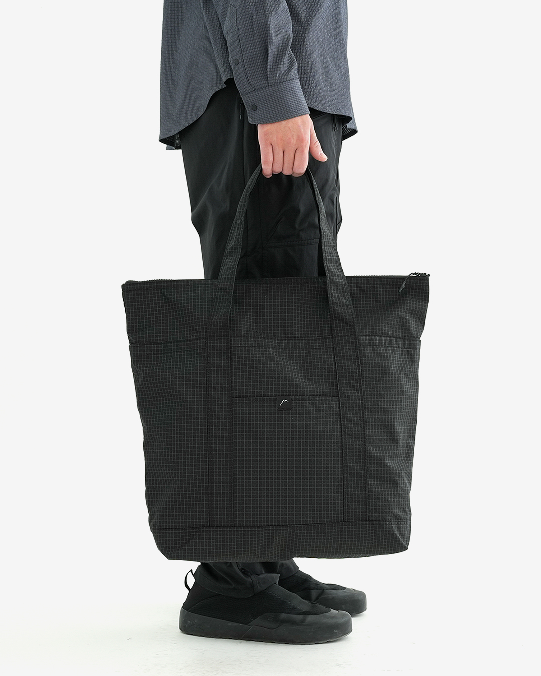 シンプルな縦型トート『Grid Tote』 外側には2つのポケット、内部には1つポケットを備えます。 メイン部分入口はジッパー式なので、中は見えず、倒れても荷物は飛び出しません。 ハンドルの中央部分にはクッションフォームが内蔵されており、柔らかな使用感。 生地も撥水加工されているので、多少の雨でも安心です。 デイリーユースや旅、山行のサブバッグとして重宝します。