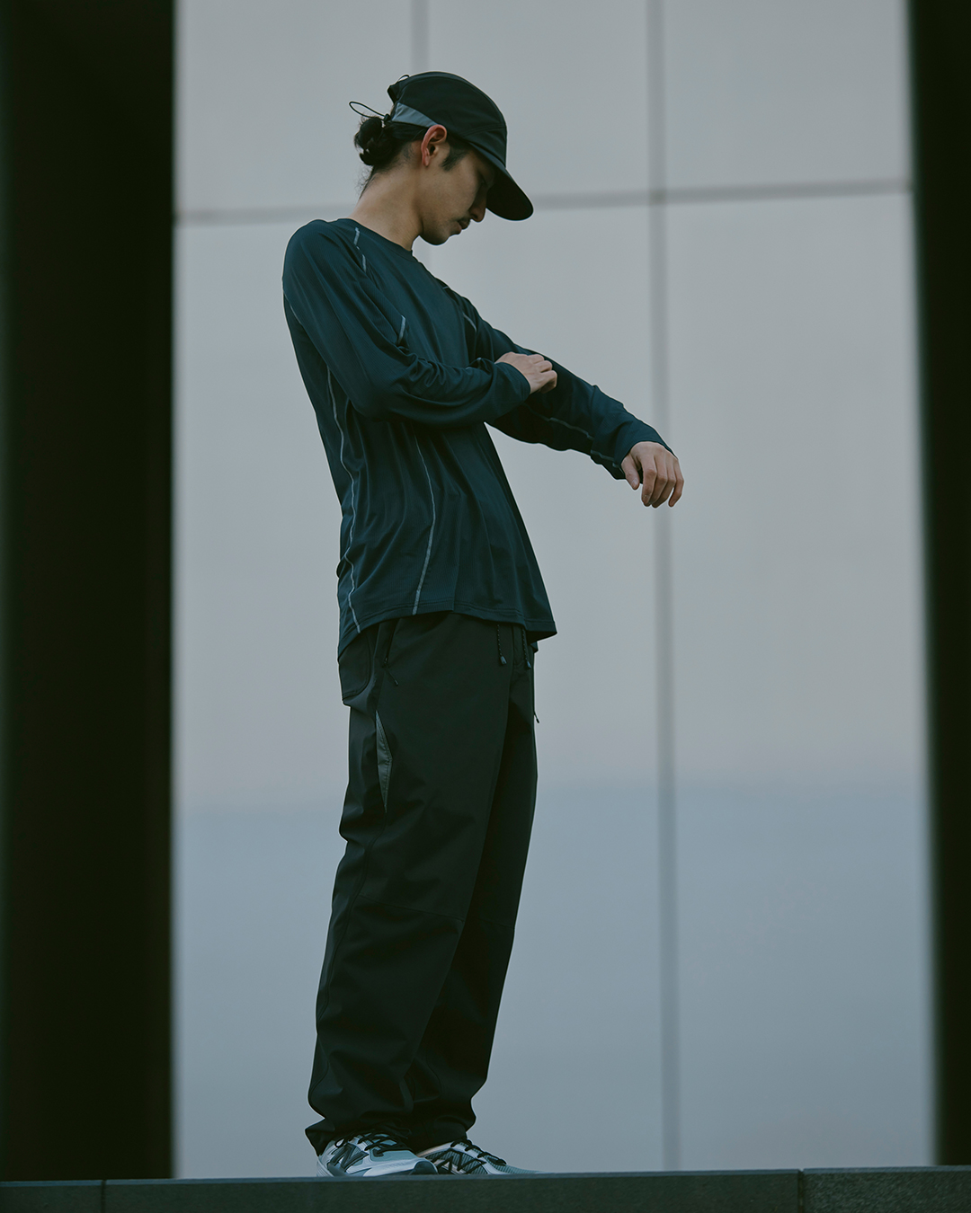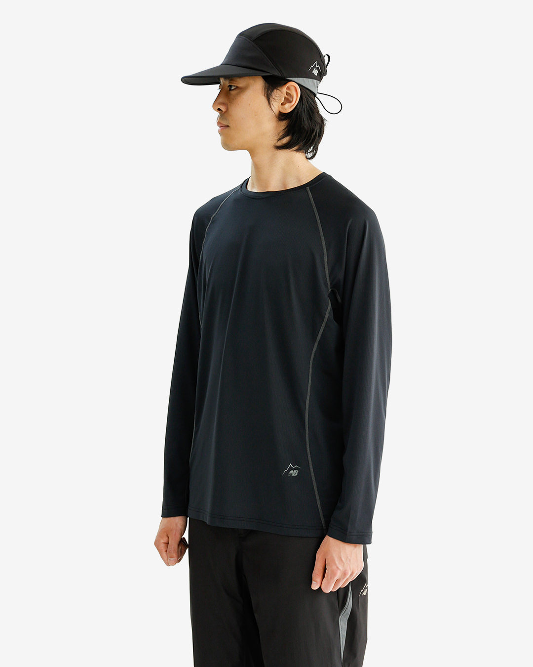 韓国・ソウルのアウトドアブランド【CAYL】と【New Balance】がコラボレーション! 「Own your own rhythm, from the city to the trail.」をテーマに、シューズとウェアのカプセルコレクションをリリース。 軽量で通気性が高く、吸汗速乾機能のあるポリエステル繊維で作られたロングスリーブ。 薄手ながら透けにくく、UVカット機能も備えているため、ハイキングやランニングなど多くの汗をかくシーンに最適です。 Heiq社の抗菌加工が施され、防臭効果も追加されています。 【CAYL】 ハイキング、トレイルランニング、クライミングを楽しむデザイナー自身のフィールドワークでの豊富な経験を活かした、機能美と高いデザイン性を兼ね備えたアイテムが、ヨーロッパや日本など海外での存在感も急速に高まっているソウル発のアウトドアブランド。 高機能素材を用いて、対候性、軽量性、収納性、速乾性、フィット感、使い心地など、フィールドでのさまざまなシチュエーションに柔軟に対応する多彩な機能性に加え、そのスタイリッシュなデザインは、都市とフィールドを自由に行き来するユーザーたちに支持されています。 背面。 【CAYL】×【New Balance】のスペシャルロゴ。 モデル:179cm 『NB CAYL 3L Softshell Cap』 『NB CAYL Air Long Sleeve』Lサイズ 『NB CAYL 3L SoftShell Pants』Lサイズ モデル:184cm / Lサイズ