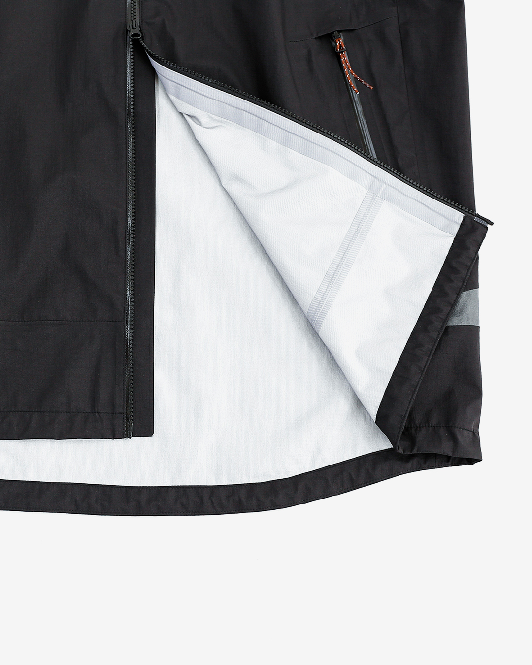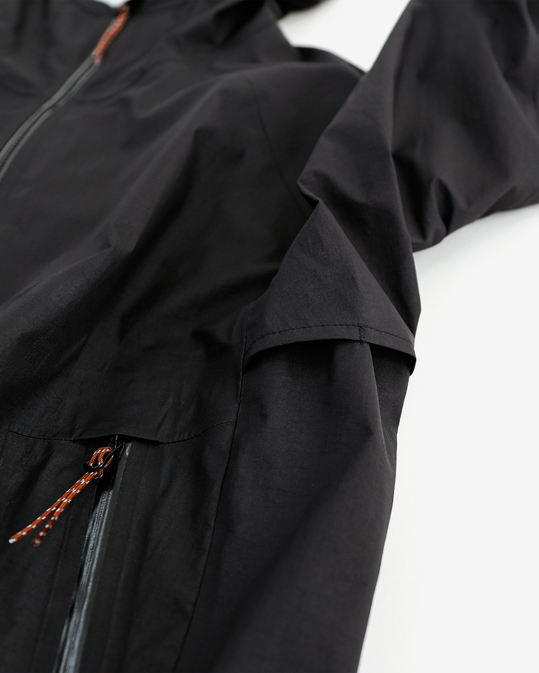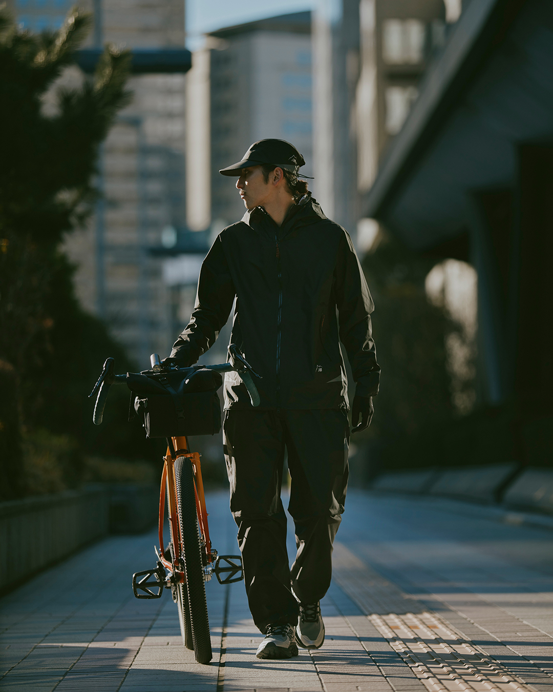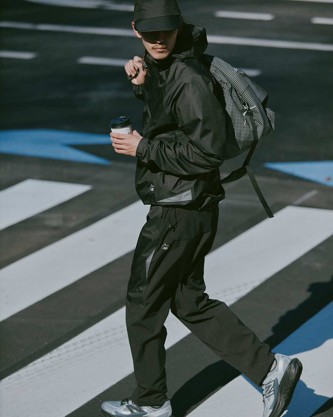 韓国・ソウルのアウトドアブランド【CAYL】と【New Balance】がコラボレーション! 「Own your own rhythm, from the city to the trail.」をテーマに、シューズとウェアのカプセルコレクションをリリース。 抜群の透湿性で快適に行動できる軽量レインジャケット。 ナノフィルムを用いた3レイヤー生地は、防水性や耐風性、耐久性はしっかり備えながら、65,000 g/m2/24hものハイレベルな透湿性を実現しています。 フロントはダブルジッパー、脇はベンチレーション構造になっていて、状況に応じてベンチレーションレベルを調整できます。 フードと裾はストリングコードでフィッティング調整が可能。 高温多湿な日本の気候にもマッチした素材は、優れた透湿性により衣服内がドライな状態に保たれ、着心地はしなやかで軽く。まるでウインドシェルのように着れるマルチなレインジャケットです。 【CAYL】 ハイキング、トレイルランニング、クライミングを楽しむデザイナー自身のフィールドワークでの豊富な経験を活かした、機能美と高いデザイン性を兼ね備えたアイテムが、ヨーロッパや日本など海外での存在感も急速に高まっているソウル発のアウトドアブランド。 高機能素材を用いて、対候性、軽量性、収納性、速乾性、フィット感、使い心地など、フィールドでのさまざまなシチュエーションに柔軟に対応する多彩な機能性に加え、そのスタイリッシュなデザインは、都市とフィールドを自由に行き来するユーザーたちに支持されています。 背面。 脇下のベンチレーションホール。 裾はコードで絞れ、シルエットや丈感も調整できます。 モデル:179cm 『NB CAYL 3L Softshell Cap』 『NB CAYL 3L Jacket』Lサイズ 『NB CAYL 3L SoftShell Pants』Lサイズ モデル:184cm / Lサイズ