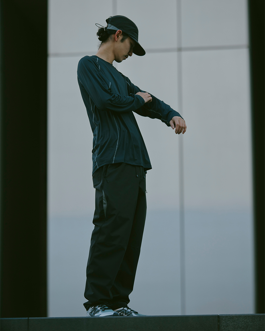 韓国・ソウルのアウトドアブランド【CAYL】と【New Balance】がコラボレーション! 「Own your own rhythm, from the city to the trail.」をテーマに、シューズとウェアのカプセルコレクションをリリース。 メインにストレッチ性のあるソフトシェル素材を、フロントの腰から太もも部分には防水性、防風性のある3レイヤー素材を組み合わせたハイブリッドパンツ。 フロントに2つ、背面に2つあるポケットはすべてジッパータイプで、中に入れた物も安心。 ウエスト部分は内蔵のゴムバンドと、紐でサイズ調整できます。裾もストリングコードで絞れるので、ニーズに合わせて丈感やシルエットも変えられます。 バランスの取れた機能性で、タウンユースにもアクティブなシーンにも対応できます。 【CAYL】 ハイキング、トレイルランニング、クライミングを楽しむデザイナー自身のフィールドワークでの豊富な経験を活かした、機能美と高いデザイン性を兼ね備えたアイテムが、ヨーロッパや日本など海外での存在感も急速に高まっているソウル発のアウトドアブランド。 高機能素材を用いて、対候性、軽量性、収納性、速乾性、フィット感、使い心地など、フィールドでのさまざまなシチュエーションに柔軟に対応する多彩な機能性に加え、そのスタイリッシュなデザインは、都市とフィールドを自由に行き来するユーザーたちに支持されています。 背面。 裾はコードで絞れ、シルエットや丈感も調整できます。 モデル:179cm 『NB CAYL 3L Softshell Cap』 『NB CAYL 3L Jacket』Lサイズ 『NB CAYL 3L SoftShell Pants』Lサイズ 『Race Bag Grid』 モデル:179cm 『NB CAYL 3L Softshell Cap』 『NB CAYL Air Long Sleeve』Lサイズ 『NB CAYL 3L SoftShell Pants』Lサイズ モデル:184cm / Lサイズ