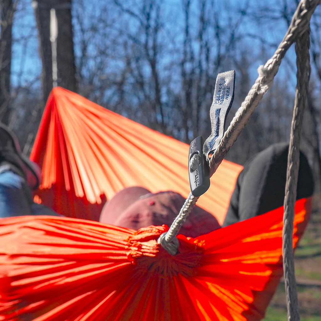 カラー:Charcoal カラー:Lichen カラー:Lichen カラー:Orange カラー:Orange ※別売りのハンモックサスペンション『Atlas』シリーズとの使用イメージ。 ※別売りのハンモックサスペンション『Helios』シリーズとの使用イメージ。 ロープ部分は超強力なダイニーマ素材から出来ており、このコンパクトさで耐荷重も約136kgと強力です。