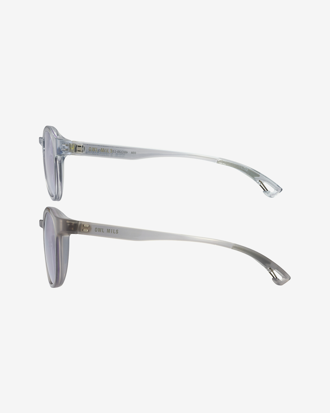 福井県鯖江市を拠点に、過酷な環境を想定して開発されたハイスペックな素材を使い、フィールドはもちろんタウンユースにも快適なサングラスを提案する【OWL MILS】(アウルミルズ) 採用する国産ハイスペックレンズ『MILS LENS』は、「偏光+ハイコントラスト」で、明るさを残しつつ、眩しさをカットすることで、朝から夕方、曇りや雪など、全天候に対応し、クリアな視界を確保します。 また、紫外線は99%カット、ブルーライトも約80%カットします。 “偏光レンズ”とは、ギラつきや乱反射を抑え、余分な光をカットして、目の健康を保つ上でも非常に優れたレンズ。 “ハイコントラストレンズ”とは、レンズカラーに応じた機能性により、特定の波長(色)をカットすることで色彩のコントラストを高め、より鮮明で視界がくっきり見えるレンズ。 『MILS LENS』の大きな特徴は、その高い透明度。一般的な偏光レンズの可視光線透過率は20%前後ですが、MILS LENSの可視光線透過率は31〜32%。 そのため、眩しさを抑えながらも従来のサングラスよりも視界が暗くなりすぎず、たとえば曇りの日や樹林帯を歩く時、トンネル内を運転するような時もサングラスを掛けたままで快適に過ごせます。 また、色の見え方も裸眼で見た時との差が少なく、カメラやスマホでの撮影時にも快適です。 『TTsukuyomi-S』(ツクヨミ-S)は、レンズ、フィット感、細部に至るまで、すべてにこだわり抜いた【RED LABEL】ハイエンドモデル。 『MILS LENS』にマルチコートを両面に施し、レンズの裏側からの光の反射光も防止することで、可視光線透過率が2〜3%あがり、より明るく、陰影もクリアに見えます。 レンズサイズを大きくとり、フレームの両サイドを少し厚めにすることで、より広範囲からの紫外線をカットしています。 フィッティングに関しては、金属の芯が入ったラバーパットを採用し、より細かな調整が可能。 また、フレームが非常にしなやかなため、全体的にテンプルを内側に設計し、顔に合わせてフィットする形状にしています。 さらに、テンプル(耳掛け)内側に、滑り止めのラバーパーツを配置することで、ズレを防止。 テンプル先はカラビナ形状になっていて、付属のグラスコードの取り付けが可能です。 【RED LABEL】ハイエンドモデル マラソン、トレイルランニングなど激しい動きを有するアクティビティ向けのレーベル。 他のレーベルに比べ、最もフィッティングに優れ、レンズも最高スペックのものを搭載。 これ1本あれば、ほぼ全てのアクティビティに対応が可能です。 サングラスにおいて、フィット感は単なる着け心地の問題ではありません。 OWL MILSが考えるSサイズ設計。 それは、レンズが持つ本来の光学性能を100%引き出すための「精密なプラットフォーム」です。 ● 諦めていた方にこそ試してほしい、究極のフィット感 「海外ブランドはテンプルが長すぎて余ってしまう」「鼻パッドを高くしても頬に当たってしまう」 そんな悩みを抱える女性や、顔幅の狭い男性の方にこそ、このSサイズ設計は真価を発揮します。既存モデルの単なる縮小版ではなく、フロントの横幅からテンプルの長さに至るまで、すべてをSサイズに合わせてゼロからグレーディングしました。 ● 美しさと機能が同居する、ミリ単位のディテール フレームとのバランスを追求した小ぶりな専用鼻パッドを採用。 単に小さくするのではなく、フレーム側を適切に設計することで、コンパクトな見た目からは想像できないほどの安定したホールド感を実現しました。 小顔な方の顔立ちをよりスマートに見せつつ、激しい動きの中でも理想的なポジションで視界を確保します。 ● 「光学性能」を支えるフィッティング どれほど優れたレンズでも、目との距離や角度がズレてしまえば、その性能を十分に発揮することはできません。 アクティビティ中の「ズレ」という共通課題を、調整(フィッティング)ではなく「設計」で解決すること。 海外ブランドのサイズ感に悩まされてきた多くのアジア人ハイカーやランナーへ、OWL MILSが新しい選択肢を提示し、アクティビティをより鮮明に変える一本をお届けします。 col.01 クリアマットブラック col.02 クリアブラウン col.03 クリアグレー サイズ比較 上:Tsukuyomi-S / 下:Tsukuyomi サイズ比較 上:Tsukuyomi-S / 下:Tsukuyomi