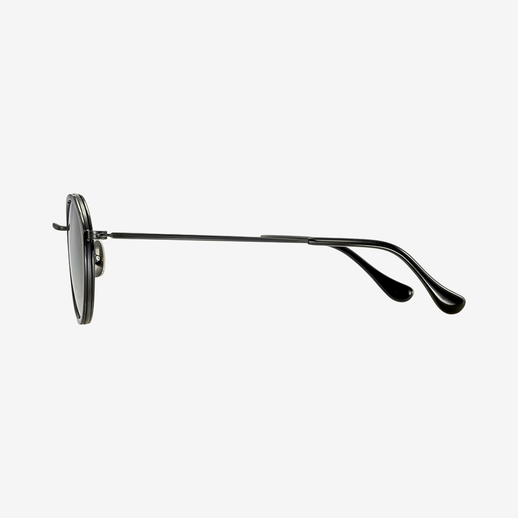 『Freja』(フレイヤ)は、チタンフレームをベースに、レンズを囲むリム部分のみアセテートを組み合わせたコンビネーションフレームに、MILS LENSを組み合わせたサングラス。
