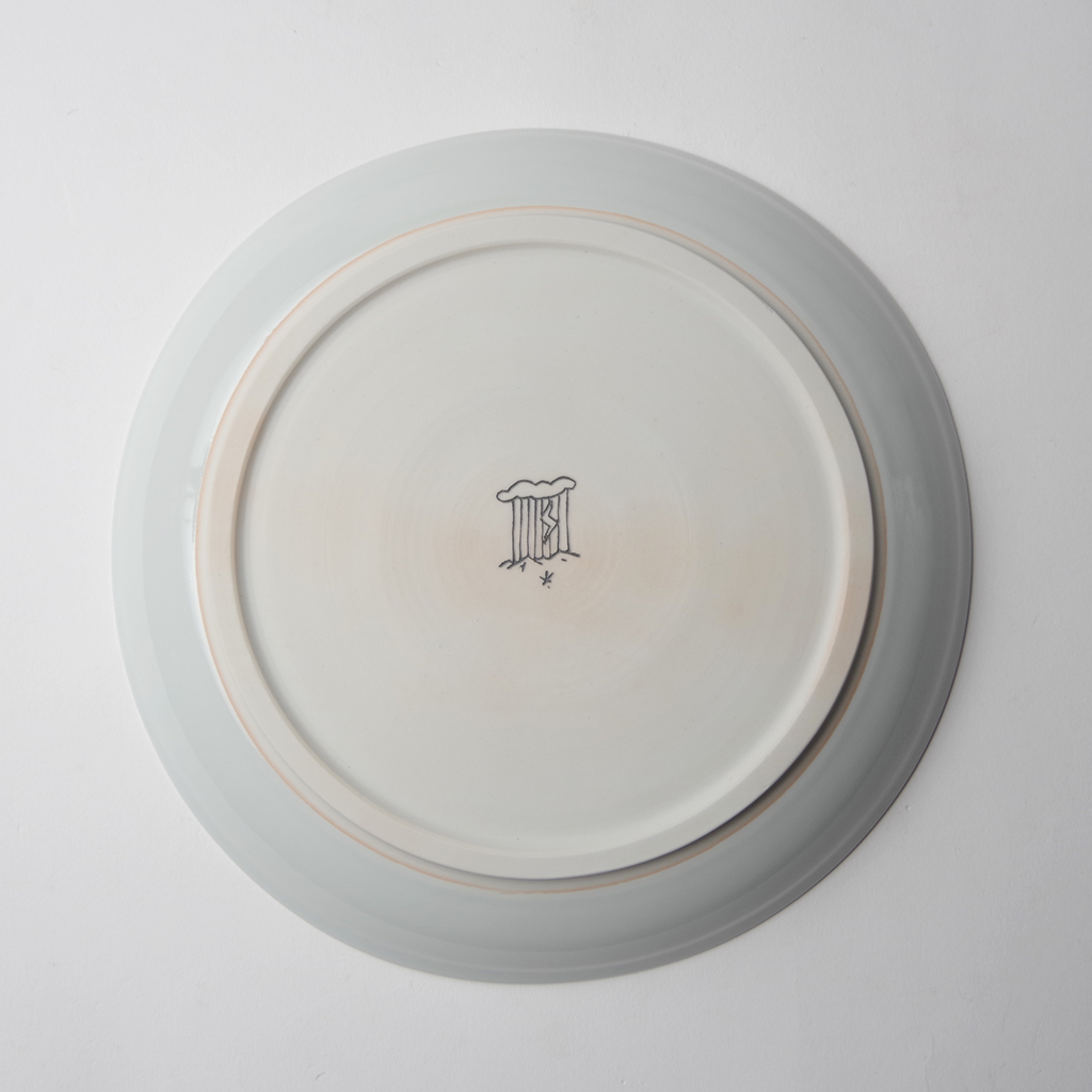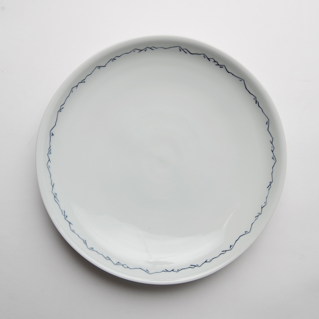 京都在住の陶磁器作家、芦田尚美さんの作品。 『ヤマノハ φ24cm皿』は、山並みを線描きしたシンプルで使いやすい平皿。ぐるっと一周、山の稜線が連なります。 カラー:(白)×紺 ■芦田尚美(ashida naomi) 『AMETSUCHI』 京都在住の陶磁器作家。 2000年頃から「AMETSUCHIシリーズ」などの日常使いの器を中心に制作。 土をかたちづくり焼くという行為、その工程と結果をたのしみ、 気になるもの事をかき混ぜることで作品がうまれます。 AMETSUCHI=アメツチ=天地 山並みの線刻で「そら」と「つち」を表現した器のシリーズ。 天地の恵みを食卓に。 底にはロゴマーク。