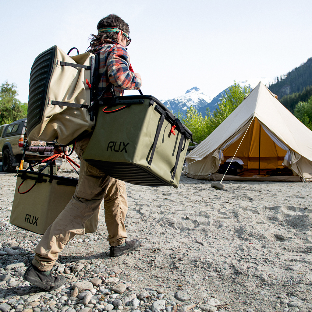 RUXは2019年、工業デザイナーのトニー・リチャードソンと起業家のアンドレ・シャルランド、そしてジェイミー・ボンドによってカナダ、ブリティッシュコロンビア州にある自然豊かな西海岸の町、スコーミッシュで生まれました。 RUXストーリーのはじまりは、アウトドアフリークが陥る共通の問題に対するシンプルな解決策からでした。それはギアをパッキングしたり持ち運んだり、収納スペースを考えるという時間を短縮できれば、よりフィールドで楽しむ時間を増やせるのでは?というアイデアでした。 そんな問題を解決すべく開発されたRUXシステムとは、俊敏かつ簡単にギアを整理・収納・運搬することができる画期的なソリューション、RUX Box 70Lを中心に展開するユニークなギアシステムのことです。 『ラックス 70L』は、大切なギアをバックパックのように運搬できる新しいオールインワンギアシステムのメインとなるボックス。 4つ角に備え付けられたコーナーステイを折り込むことでフラットにすることができるため、保管時にスペースを取ることもありません。 ガレージからビーチへ、トレイルヘッドで。必要な時にすぐ使うことができる順応性と収納性を兼ね備えます。 このRUXストーリーはまだ始まったばかり。トニーを筆頭とするデザインチームは、シーズンごとに新しいパーツを追加し、RUXシステムの実用性と汎用性をさらに高めていく予定です。 RUXで効率的で自由奔放なアウトドアライフを! カラー:ブラック カラー:タン カラー:グリーン
