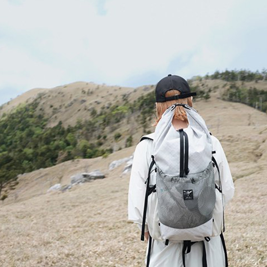 モデル、ハイカーである新田あいによる新ブランド【Okara(オカラ)】 里山ハイクや街でも使い勝手が良い、「こんなのあったらいいな」をカタチにするものづくりを目指しています。 2023年の新作『mitten(ミッテン)』 mittenとはスウェーデン語で【真ん中】の意味。大きすぎず小さすぎず、最も汎用性のある30Lクラスの中型バックパックです。 デイハイクはもちろん、小屋泊からちょっとがんばってUL装備のテント泊まで、新田あいの【こんなの欲しかった】をカタチにしました。 実際にフィールドテストで改良を重ねた使い勝手の良いアウトポケット類や、重さを感じさせないソリッドなハーネスと背負い心地は、見た目のイメージよりもかなり本格的な山岳バックパックに仕上がっています。 メインファブリックには、防水性や耐久性に優れるアメリカのCHALLENGE SAILCLOTH社の「ECOPAK 3-EPX200」(200 デニール)を採用。 フロントポケットにはメッシュ素材、サイドポケットには強度を重視した 210D のナイロンを使用。各所にたっぷりとタックを取る事で Okara らしい丸みを帯びた優しいシルエットになっています。 大きくひらく開口部はスタンダードなロールトップでとてもパッキングしやすくなっています。 カラー:Gray カラー:Black カラー:White