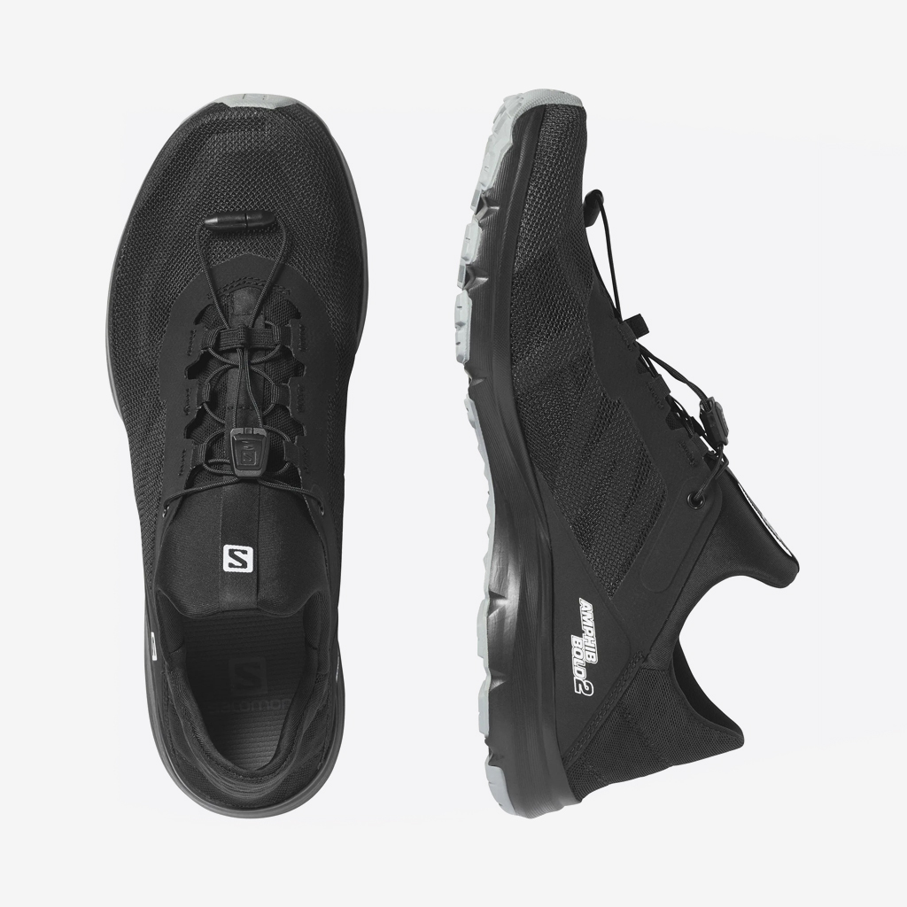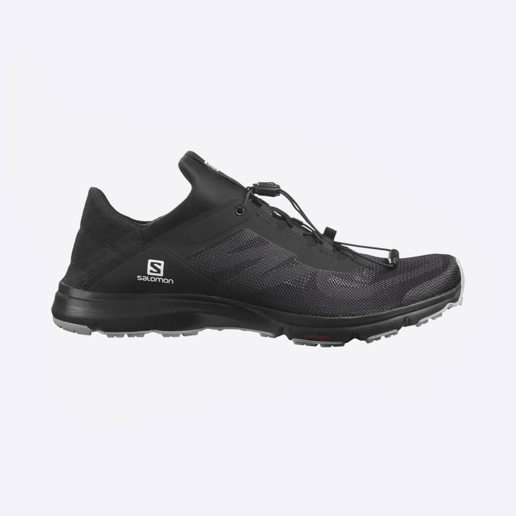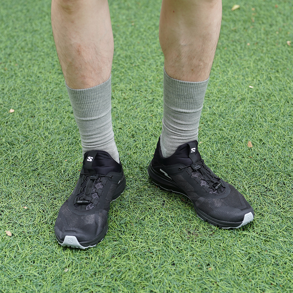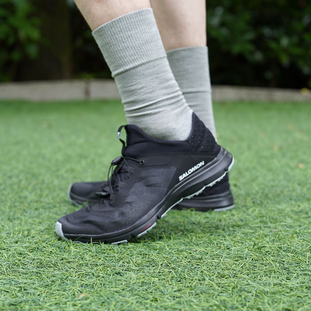 水辺のアドベンチャーや水にそのまま入れるウォーターシューズとしても使える名品SALOMON『AMPHIB BOLD 2』が、さらに軽く、通気性も高くなりアップデート。 かかとを折りたたんでサンダルのように履いたり、Quicklaceを調節すればランニングも楽しめます。 通気性と速乾性に優れたメッシュに、コーヒーの粉から作られた防臭効果の高い S-Cafeソックライナーを採用。足と一体化したような接地感で、濡れた路面もしっかり捉えます。 Quicklace採用で、濡れても解けず、フィッティングや着脱もスムーズです。 夏のアクティビティの幅がいっそう広がる軽量シューズです。 踵を折りたたんでサンダルとしても履けるのが本当に便利。