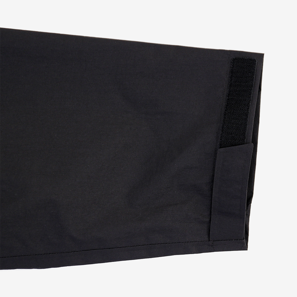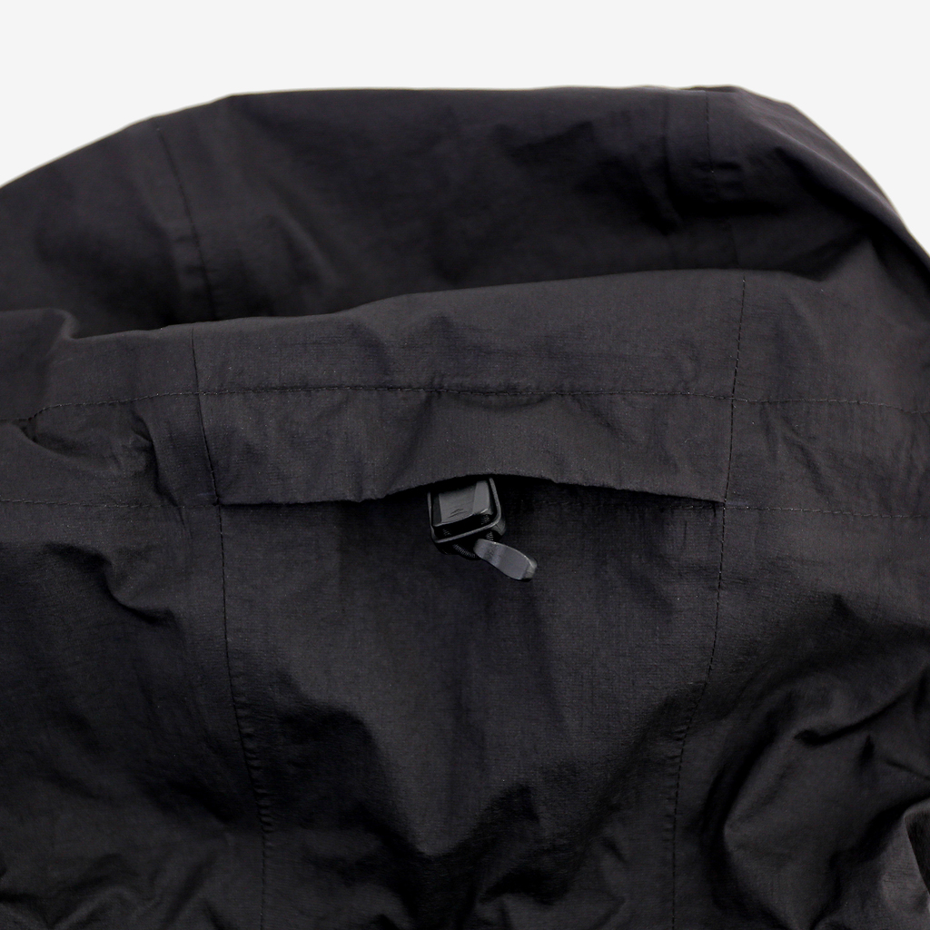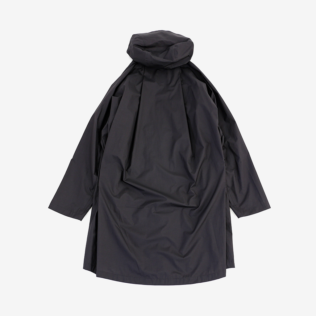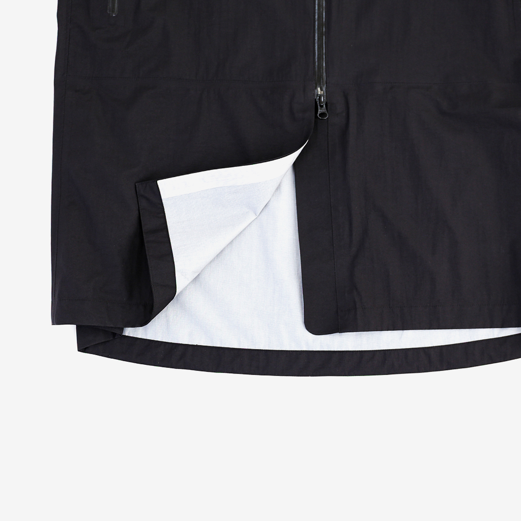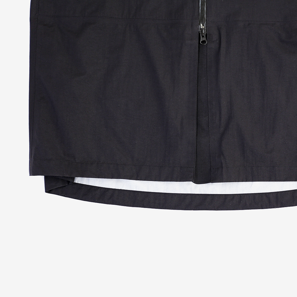 CAYL『Light 3L Rain Coat』は、高レベルの防水性、透湿性、低結露性を実現した防水透湿素材である東レ『Dermizax(ダーミザクス)』を使用して作られた3レイヤーの軽量レインコート。 優れたストレッチ性で着心地もしなやかで、太ももくらいまで雨風を防いでくれるので、レインパンツを使わずともある程度の雨を凌いでくれます。 一番の特徴はシルエットの可変性。背面側がゆとりを持たせたパターンになっていて、30Lくらいのバックパックなら上から羽織れるようになっています。 またサイドのスナップボタンで開き具合の調整もできます。フロントはダブルジッパー、フードもストリングコードで絞れます。 山だけでなく、フェスやデイリーユースなど、いろんな使い方の可能性が広がるレインウェアです。 背面。 フロントもダブルジッパーで、下から開けて換気もできます。 サイドのスナップボタンで開き具合の調整もできます。 袖はベルクロで調整。 背面部のパターン。 バックパックの上から羽織ったイメージ。 CAYLのMari(約30L)の上からも羽織れるサイズ感です。 モデル:184cm/Lサイズ