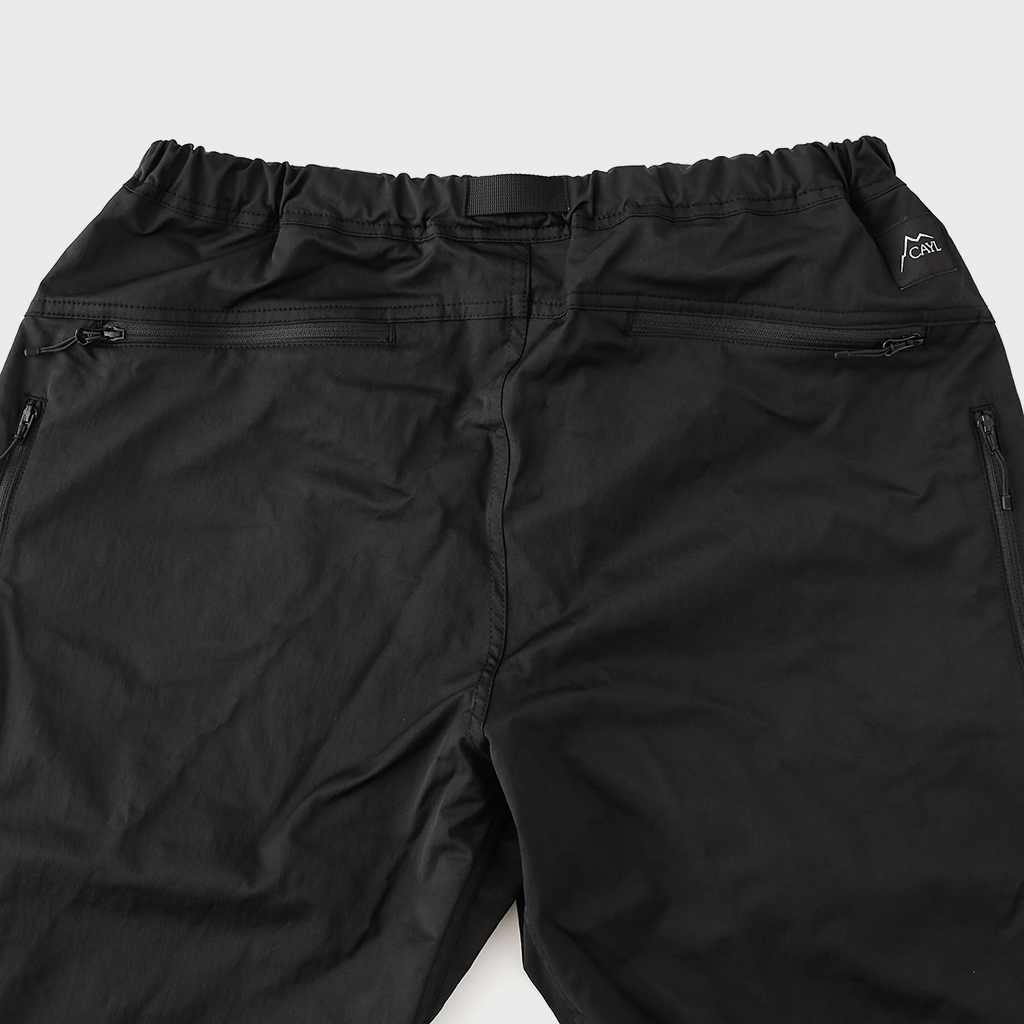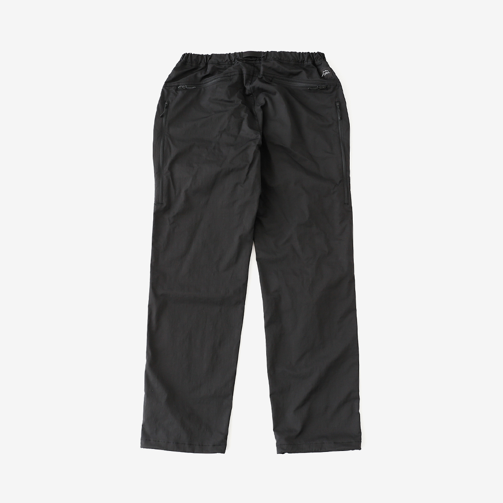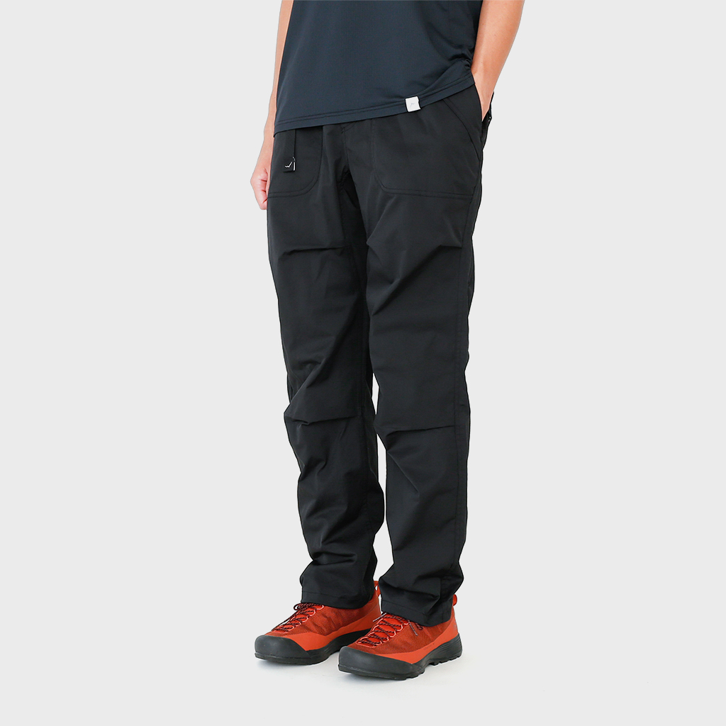 CAYL『Snap Pocket Pants』は、CAYLのパンツシリーズの中では珍しい、コットンライクなハイキングパンツ。 ナイロン、コットン、ポリウレタンを組み合わせた生地は、タフで擦れにも強く、速乾性、ストレッチ性もあり、撥水加工も施されています。 両脇にはベンチレーションジッパーを備えており、細かな温度調整に対応。ベンチレーション部分には表地と同系色のメッシュが配されているので、ジッパーを開けていても目立たないのもうれしいポイントです。 フロントは二重ポケット構造で、片方は鍵や財布などの貴重品を安心して収納できるスナップポケットになっています。 裾もストリングコードで絞れるので、シューズやサンダルなどによって、丈感やシルエットも変えられます。 前腿と膝部分は立体パターンになっていて、足の動きに干渉しにくい仕様に。 見た目もコットンライクでカジュアルなので、街でも合わせやすく、長いシーズン使いやすいロングパンツ。 カラーは、Black、Grey、Light Greyの3色展開です。 背面。 フロントの二重ポケット。 表側がスナップポケットになっています。 前腿と膝部分の立体パターン。 ベンチレーション部分には表地と同系色のメッシュで、換気したままでも目立ちません。 裾はコードで絞って調整できます。 モデル:184cm / Lサイズ