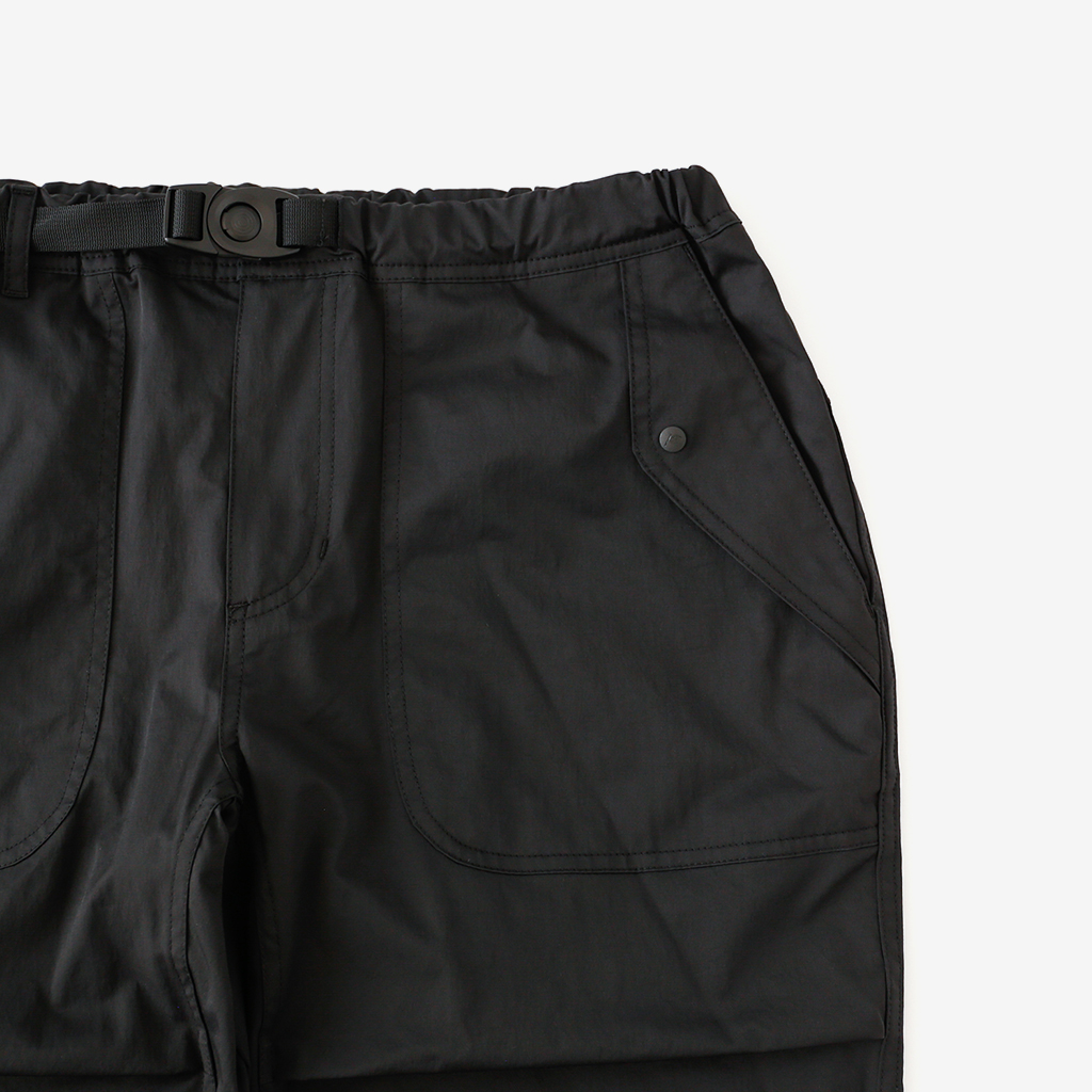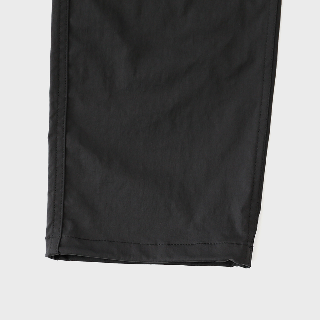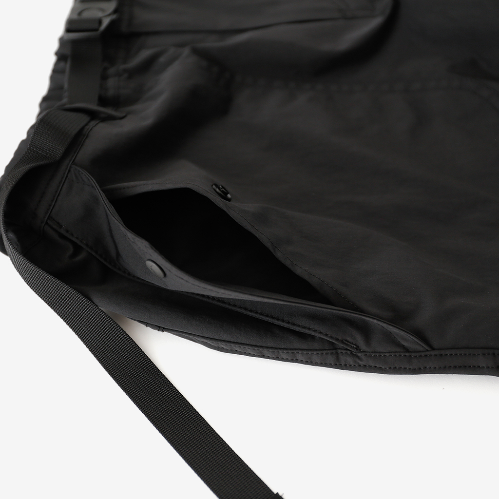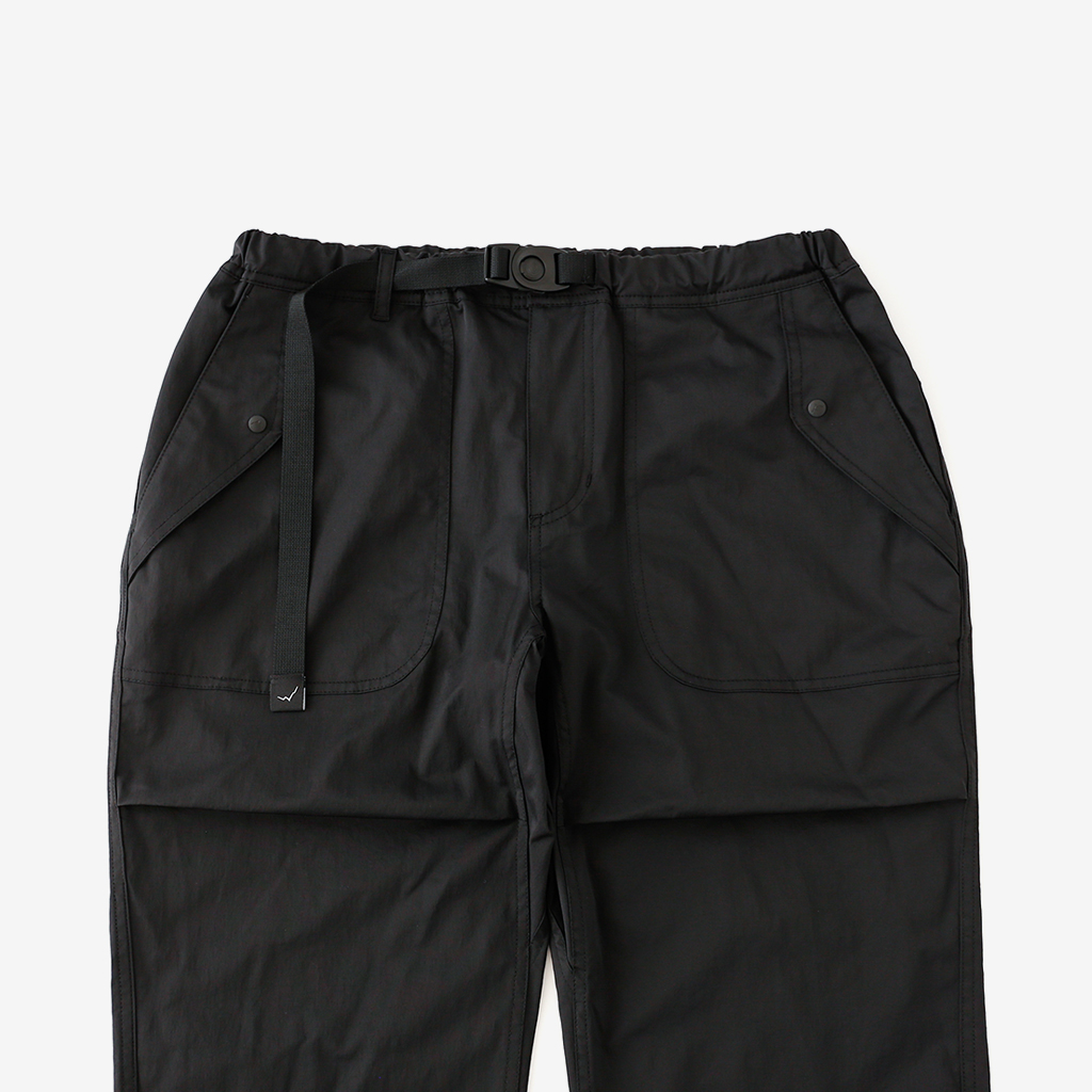 CAYL『Snap Pocket Pants』は、CAYLのパンツシリーズの中では珍しい、コットンライクなハイキングパンツ。 ナイロン、コットン、ポリウレタンを組み合わせた生地は、タフで擦れにも強く、速乾性、ストレッチ性もあり、撥水加工も施されています。 両脇にはベンチレーションジッパーを備えており、細かな温度調整に対応。ベンチレーション部分には表地と同系色のメッシュが配されているので、ジッパーを開けていても目立たないのもうれしいポイントです。 フロントは二重ポケット構造で、片方は鍵や財布などの貴重品を安心して収納できるスナップポケットになっています。 裾もストリングコードで絞れるので、シューズやサンダルなどによって、丈感やシルエットも変えられます。 前腿と膝部分は立体パターンになっていて、足の動きに干渉しにくい仕様に。 見た目もコットンライクでカジュアルなので、街でも合わせやすく、長いシーズン使いやすいロングパンツ。 カラーは、Black、Grey、Light Greyの3色展開です。 背面。 フロントの二重ポケット。 表側がスナップポケットになっています。 前腿と膝部分の立体パターン。 ベンチレーション部分には表地と同系色のメッシュで、換気したままでも目立ちません。 裾はコードで絞って調整できます。 モデル:184cm / Lサイズ