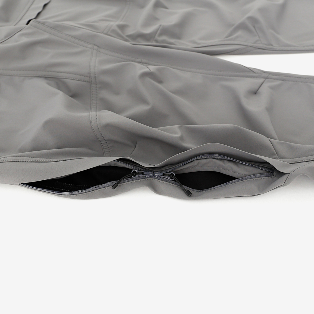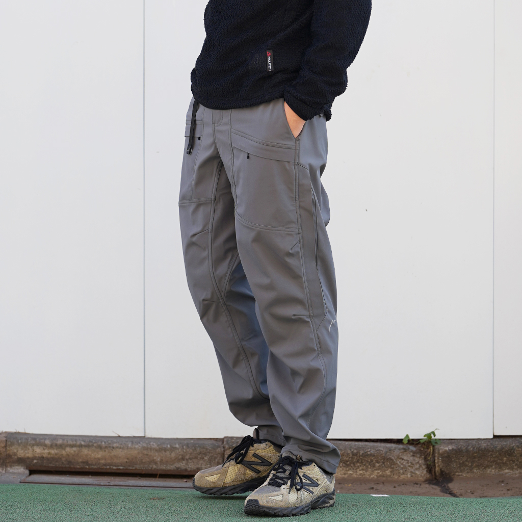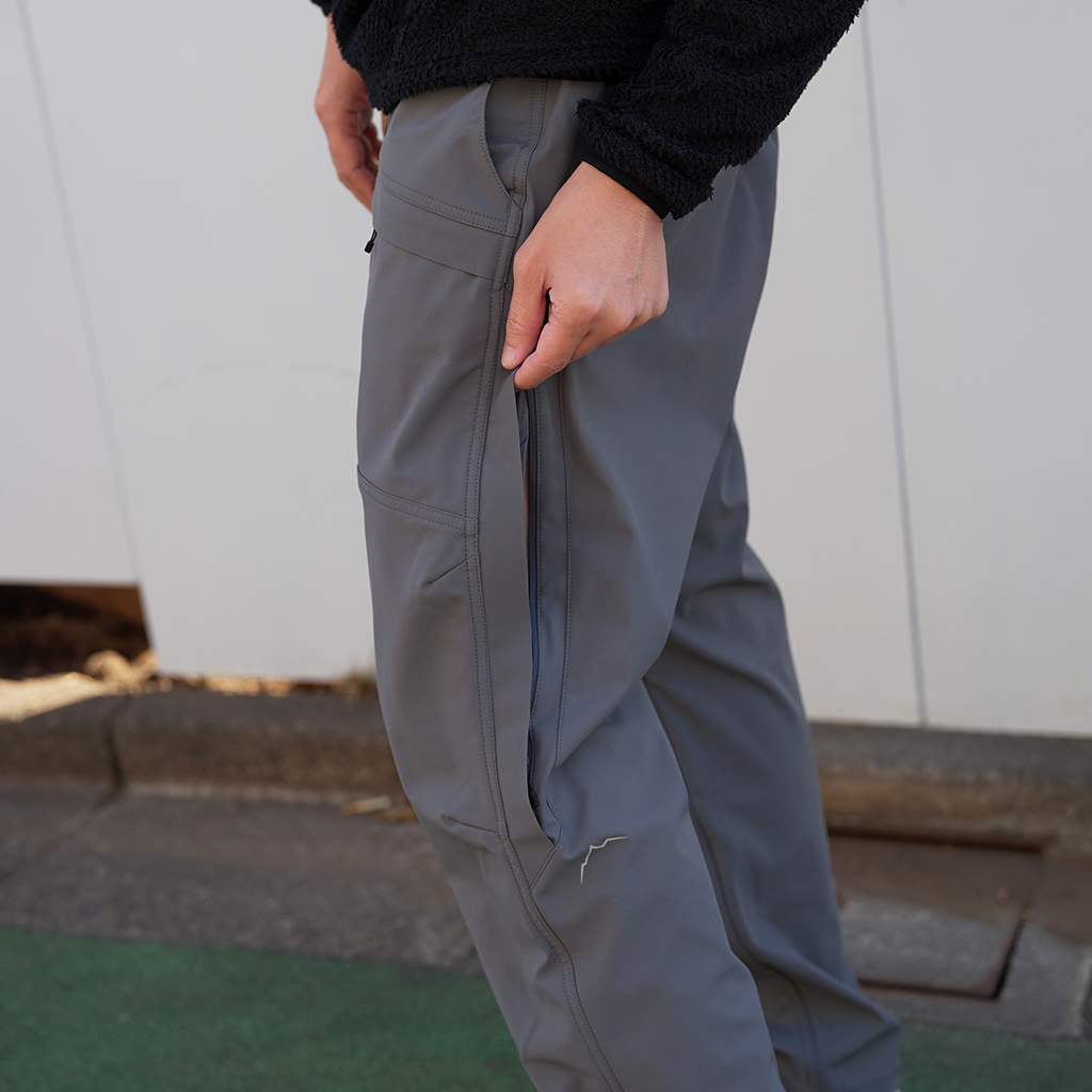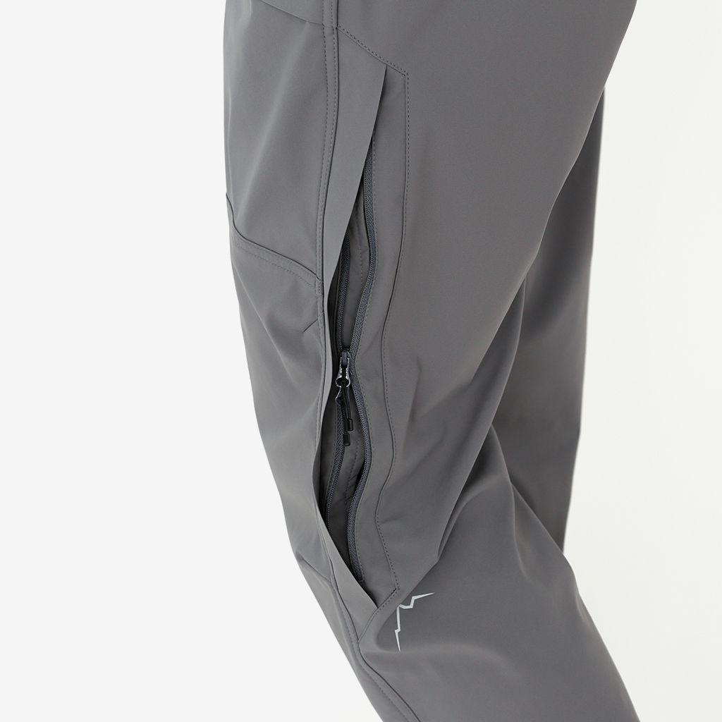 高いストレッチ性と、保温機能、通気性、防風性を併せ持ったバランスの良い冬向けロングパンツ。 内側は低めの起毛処理がされていて、温かく柔らかな肌触り。表側は撥水加工されています。 両脇には長めのベンチレーションジッパーを備えており、素早い換気が可能。ダブルジップなので上からも下からも開けられます。 フロントと前もも、ヒップとそれぞれタイプの異なる6か所のポケットで、しまう物によって柔軟に対応できます。 冬の行動時や、キャンプ、デイリーユースでも使い勝手の良い保温性の高いパンツです。 Black、Greyの2カラー展開。 前もも部分にはジップポケット。 前腿と膝部分の立体パターン。 ダブルジップで上下から開けられる大きなベンチレーション。 裾はコードで絞れ、シルエットや丈感も調整できます。 モデル:184cm/Lサイズ モデル:182cm / Lサイズ