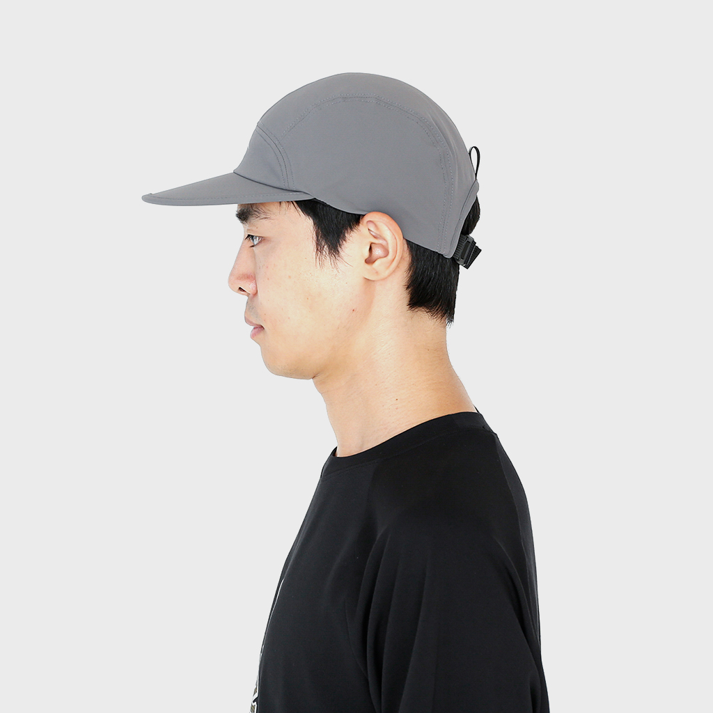 CAYL『Stretch Trail Cap』は、ストレッチ性、通気性、速乾性に富んだ軽量キャップ。 撥水コーティングも施されているので、多少の雨なら安心です。 サイズ調整は後部のテープで、バックルタイプなので髪を束ねていてもスムーズに着脱できます。 カラー:Black カラー:Grey フロントのロゴはリフレクター仕様。 後部にもリフレクターテープがあり、夜間のランニング時も車からの視認性を高めています。 多くの帽子を手掛けるCAYLこだわりのパネルパターンは、頭のラインにしなやかにフィットします。