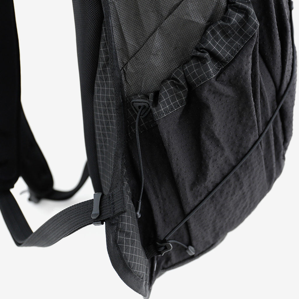 実用的でテクニカルなアイテムを展開する韓国のブランド【USAGE】と、【CAYL】のコラボレーションによるカプセルコレクション。 今回のコラボでは、アウトドアで使われる素材を使って、ライフスタイル向けのコレクションを展開しています。 『Jacket 1』『Long Sleeve 1』『Pants 1』『Hat 1』『Bag 2』『Bag 3』の6アイテムのリリースとなります。 『Bag 2』は、軽量で耐久性、防水性にも優れたULTRAと、グリッドファブリックをメイン素材に使用した18Lのバックパック。 フロントとサイドにはストレッチナイロンポケットを配し、収納力と使い勝手を両立しました。 メインコンパートメントは防水ジッパー仕様で、内部にはPCスリーブとジッパーポケットを装備。 荷物の整理がしやすく、日常からアウトドアまで幅広く対応します。 ショルダーハーネスはしなやかに肩にフィットする独自設計。幅広で、重い荷物でも食い込みにくい快適な背負い心地を実現。 背面にはクッション性と通気性を兼ね備えたパッドを採用し、長時間の使用でも快適です。 ショルダーハーネスはしなやかに肩にフィットする独自設計。幅広で、重い荷物でも食い込みにくい快適な背負い心地。 防水性の高いUltraファブリックと、止水ジッパーである程度の雨でも安心。 コンプレッションコードの上部はポケット裏側に配置され、外から見えにくく、スッキリとしたデザインに。 フロントとサイドには、ストレッチナイロンポケットを配し、見た目以上の収納力と使い勝手を両立。 バックパック下部は、身体に添う設計にすることで、ウエストベルトなしでも揺れにくさを実現しています。 デザインのアクセントになっているボトム部。 シンプルなチェストストラップは、移動も取り外しも可能。 最新のアウトドアファブリックをアーバンにまとめ上げた18Lのバックパックです。