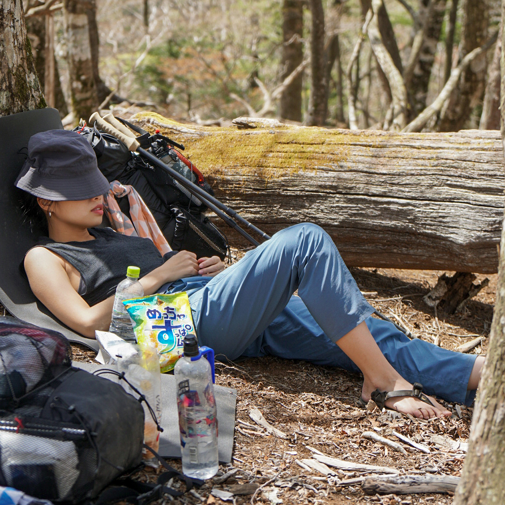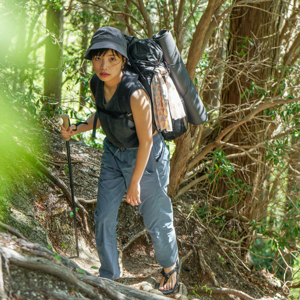 山で過ごす時間や、それにいたるまでの日々の生活をシンプルに過ごす為の道具を作るメーカー【RIDGE MOUNTAIN GEAR(リッジマウンテンギア)】 神奈川県逗子市にアトリエを構え、自分で使う為の山道具を自分自身で作ることを発想の起点にして、シンプルで長く付き合える道具を1点1点丁寧にものづくりをしています。 この『Enough Hat』は、夏場の高地の稜線歩きなどで、キャップでは耳が丸出しになって日焼けして困っていたことから製作。 頭周りが少々大きめという代表の黒澤さん自身が、ストレス無く安心して被れる『Basic Cap』をベースにしています。 本体部分には撥水性、防風性、浸透性のあるナイロン100%素材、東レのStunner®を使用。雨風を防ぎながら発汗による不快感を防ぎます。 汗止め部分にはCOOLMAX®ファブリックを使用。鹿の子状のポリエステル100%素材で吸水速乾性・UVカット(UPF 40+)の機能を兼ね備えています。 一番の特徴はブリムの形状。通常だと平均的に開いているブリムを、前、横、後ろそれぞれで開き具合を変えています。 シチュエーションや好みに応じて、形や被り方をアレンジできる、とても面白いハットです。 カラー:Grey カラー:Black カラー:Karekusa カラー:Indigo Blue カラー:Mulberry カラー:Uguisu ハットの本体部分には撥水性、防風性、浸透性のあるナイロン100%素材、東レのStunner®を使用しています。雨風を防ぎながら発汗による不快感を防ぎ、耐久撥水機能にとても優れています。 合成繊維ながらコットン混紡の様なナチュラルな表情に加え、裏面に施されたコーティングで程良いハリのある風合いを実現しています。 汗止め部分にはCOOLMAX®ファブリックを使用しています。 鹿の子状のポリエステル100%素材で吸水速乾性・UVカット(UPF 40+)の機能を兼ね備えています。 前側はまるでキャップのヒサシの様なカーブを描いた形状をしています。 横は耳を覆うギリギリの開き具合。 後ろも余り開きすぎず、風の影響を受けない様に短めに設定されています。 日差しが少なめの時や前方の視界を広く確保したい場合はブリムの前側を上げて。 ブリムの後ろ側を上げるとキャップの様な、チロリアンハットの様な雰囲気で被ることも出来ます。 髪型やシチュエーションなどに応じて、形や被り方をアレンジできる、使う人に寄り添うハットです。