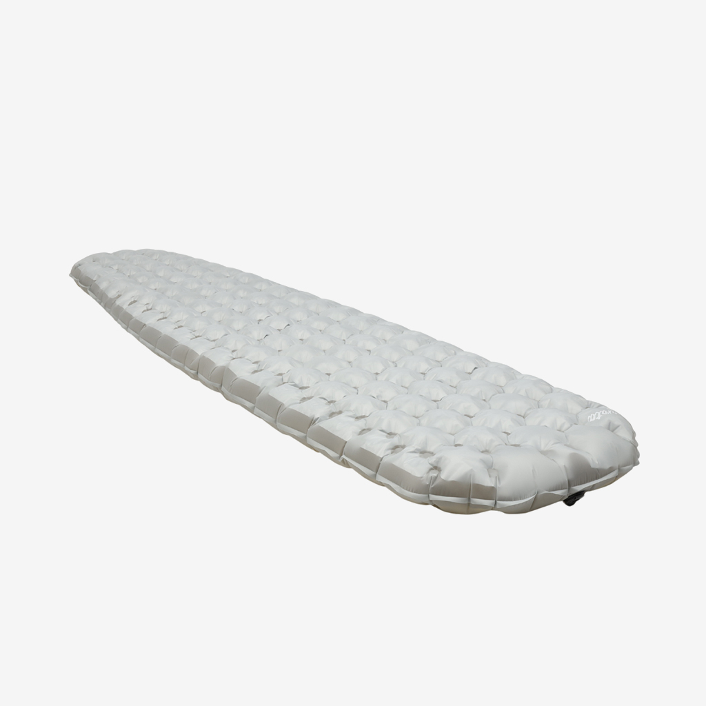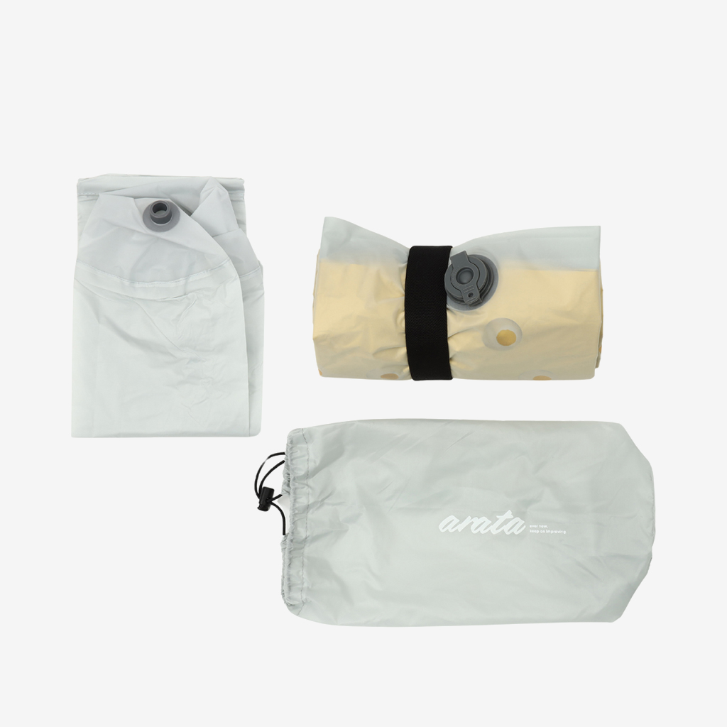 2024年夏にデビューした【arata】は、経験豊富なエンジニア達により設計される、ULで堅牢なギアの開発を行うブランド。 豊富なアウトドアの経験を生かし、エンジニアの視点で自分達が本当に使いたい、思わず友人に勧めたくなるギアを生み出しています。 arataの3rdプロダクトとなるのはスリーピングマット。2つの形状のエアマットと、極薄軽量のポリエチレンマットです。 『ASP-R7 Mummy』は、厳冬期の標高3000m級での使用を想定した、R値:6.7を誇るマミー形エアマット。 収納サイズや重量、さらにコストのバランスを考慮した結果、TPUフィルムと熱線反射PETフィルムを組み合わせた多層構造を採用しました。 溶着ピッチ、溶着パターン、内部の構成部材の厚さの微調整を強度試験を繰り返しながら行い、arataとしてのベストバランスを見つけました。 『Mummy』は、快適性についても考慮しながら足元部と肩部分も絞りこむことで、477gと軽量に仕上げました。 また、エアマットのパンクに柔軟に対応できるように、1辺7cmと余裕のある大型のリペアシートを2枚付属させています。 このスペックでこのコストパフォーマンス。 エンジニアのこだわりが詰まった、日本の山岳シーンに適したオールシーズンエアマットです。