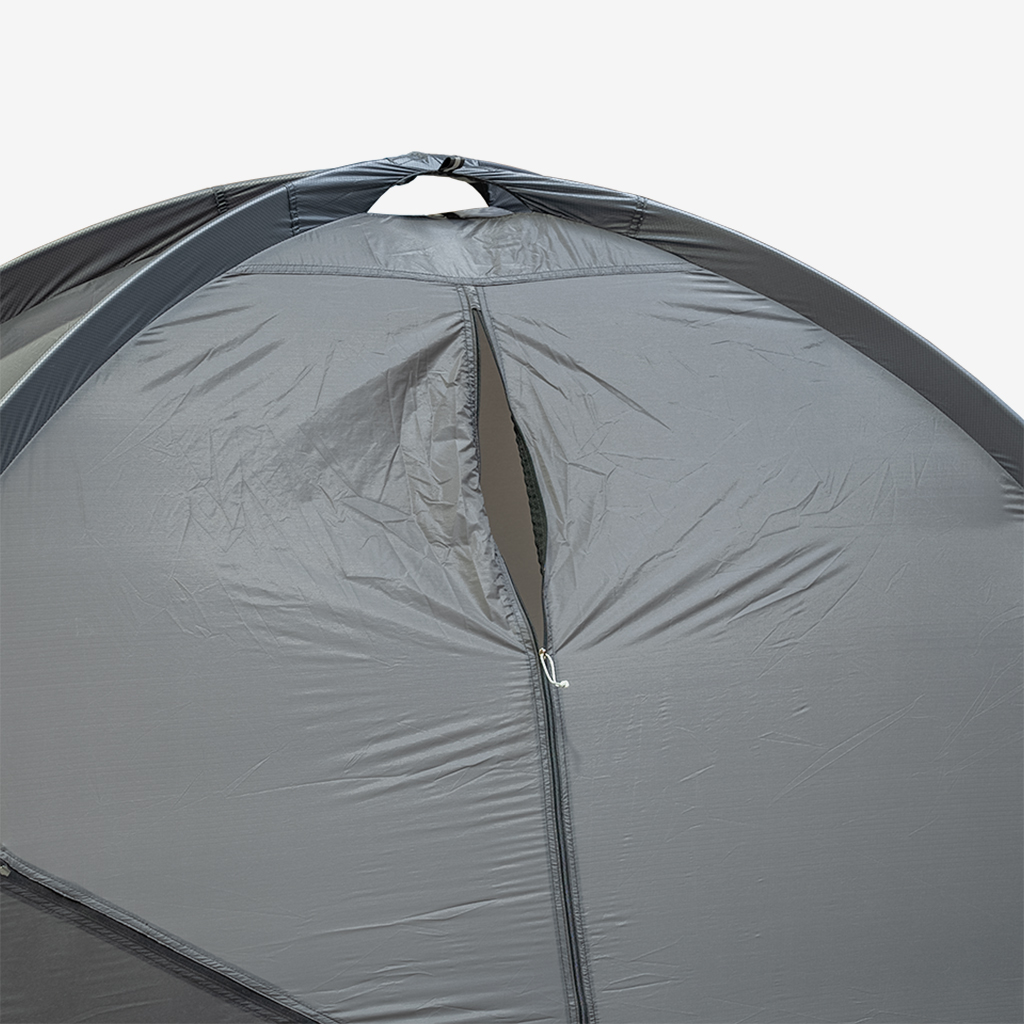インナーテント・フライシートの両方を濃いグレーにすることで、薄く軽量な生地ながら透けにくく、プライバシーの保護に配慮しています。