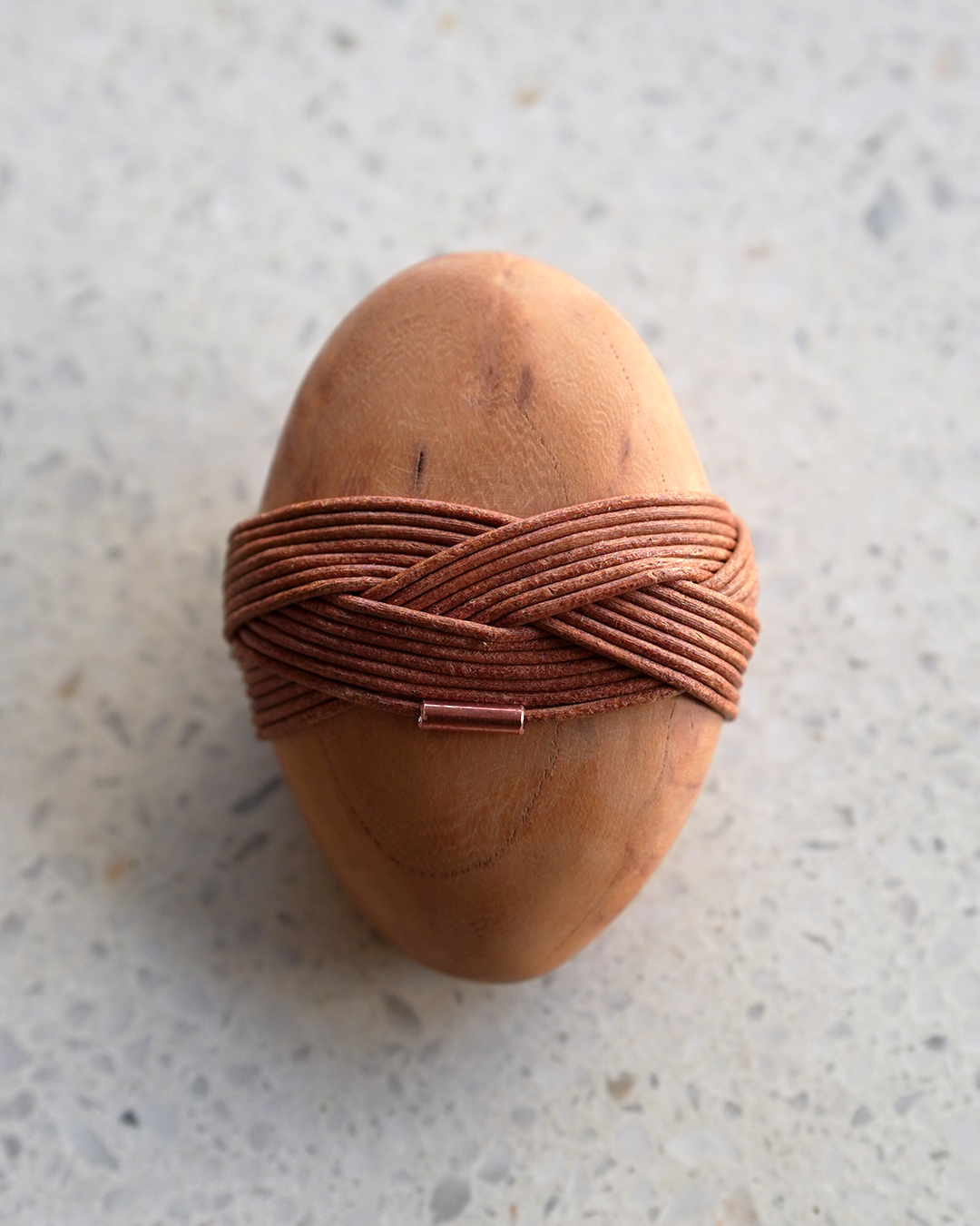 現代の新しい“包み”を考えるブランド《HOW TO WRAP_》と、雄大な自然が移植されたかのような名もなき山の作品群を制作する《ikkaku mosaic.》 Nicetime Mountain Galleryを介して繋がったお二人によるスペシャルなコラボレーション作品。 《ikkaku mosaic.》が選び、削り、磨いた木に、《HOW TO WRAP_》が革紐を用い、1点1点異なる結びで包む。 素地の革と木は年月を重ねるごとに馴染み、表情豊かに風合いを増していきます。 自然物と手仕事が生み出す新しい造形美を持つこの作品は、自然と人との融和を時とともに感じさせてくれます。 ※すべてサイズや表情の異なる一点ものとなります。 《HOW TO WRAP_》山本 考志 2014年に現代に適した“包み”を考えるブランドとして始動。日本の包む文化を継承しながら包むことの価値を改めて見つめ直し、現代のライフスタイルに合うような新しい包みのかたちを提案する。 《ikkaku mosaic.》井出 裕太 2017年、北杜市にて活動をスタート。自作したアトリエで創作活動をおこない、見てきた山、歩いた稜線、滑った地形から受けたイメージを表現するべく、山の造形作品を展開している。