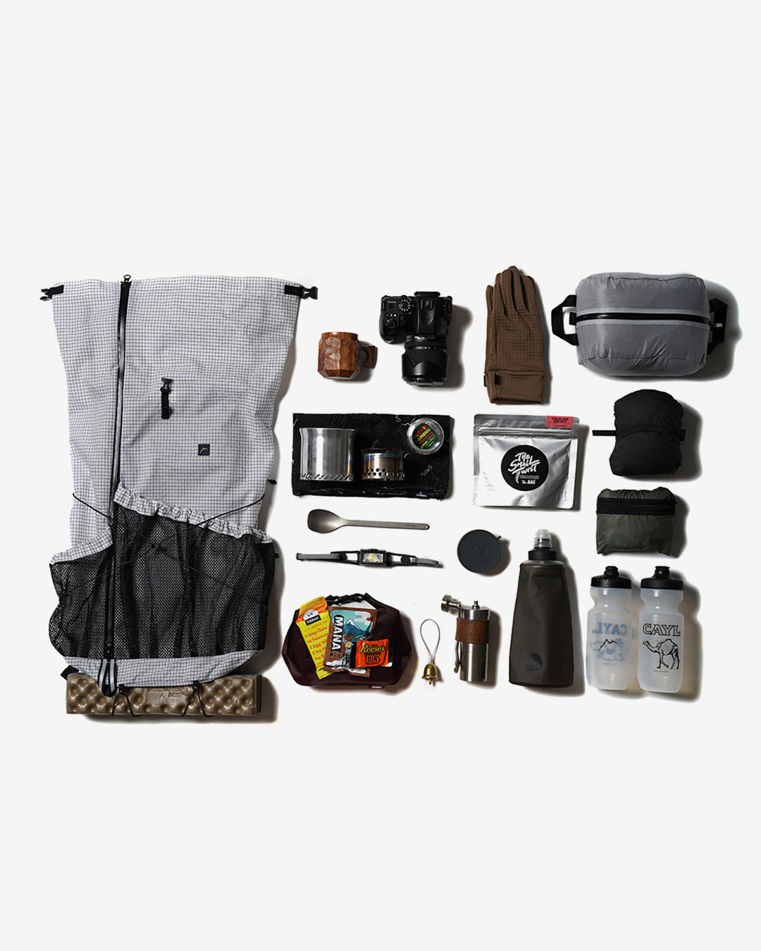 韓国のULハイキングシーンを牽引する、ソウル発のアウトドアブランドCAYL。 彼らのロングセラーモデル『Mari Roll Top』を、ユーザーからのフィードバックを受けてよりコンパクトに設計した『Mari Roll Top SM』がリリース!! 特徴的なフロントのダブルジッパーは、ロールトップ式の懸念点のひとつであるメイン部へのアクセスのしにくさを、デザインに落とし込みながら解決。 下方に収納した荷物も下から開けてすぐに出し入れできるので、上から順番に荷物を取り出す必要はありません。 荷造り時や山小屋、テント場では、上からジッパーを開ければどこに何があるかも一目瞭然。荷物が出し入れしやすく、パッキングも楽にしてくれます。 26-30Lという絶妙なサイズは、デイハイクから小屋泊、季節や場所などシチュエーションを選べばオーバーナイトの装備もパッキング可能。 ジッパーを軸に左右に分かれた2つの大きな外ポケットは、ドリンクボトルやウェア、タオル、食料など、すぐに取り出したいものを気軽に収納できる十分な容量があり、オプションの『Bottle Pouch』や『Stretch Pocket Hip Belt』を使えば収納力に加えフィット感もアップできます。 バックパックの背面長は約450mmと小柄な方や女性にもフィットしやすいサイズ感。 そして軽量ながらも、厚みのあるショルダーパッドは、長時間の使用でも肩が疲れにくい快適な背負い心地を実現しています。 山から旅、デイリーユースまで、気づいたら手に取ってしまう、実用性とデザインが魅力の軽量バックパックです。 カラー:Black カラー:Grey カラー:Khaki X状に配されたコンプレッションコードを締めることで、荷物が背中側に寄って安定し、揺れを軽減します。 背面はクッション性と通気性を持つ3Dエアメッシュを採用。 主張しすぎないシンプルなロゴ。 コンプレッションコードでの外付けイメージ。 ボトムにもバンジーコードが標準装備され、マットなどそこまで重くないものであれば外付けできます。 取り外しも可能なウエストベルト。 長時間の使用でも肩が疲れにくい、しなやかで厚みのあるショルダーハーネス。 チェストバックルの黄色部分はホイッスル。ホイッスル部分だけ取り外しもできます。 荷物の増減に応じて調整できるロールトップ。 下から開けられるので、メインスペース内の荷物の出し入れもスピーディーにおこなえます。 フロントジッパーを下まで開ければ、荷物を楽々と出し入れできます。