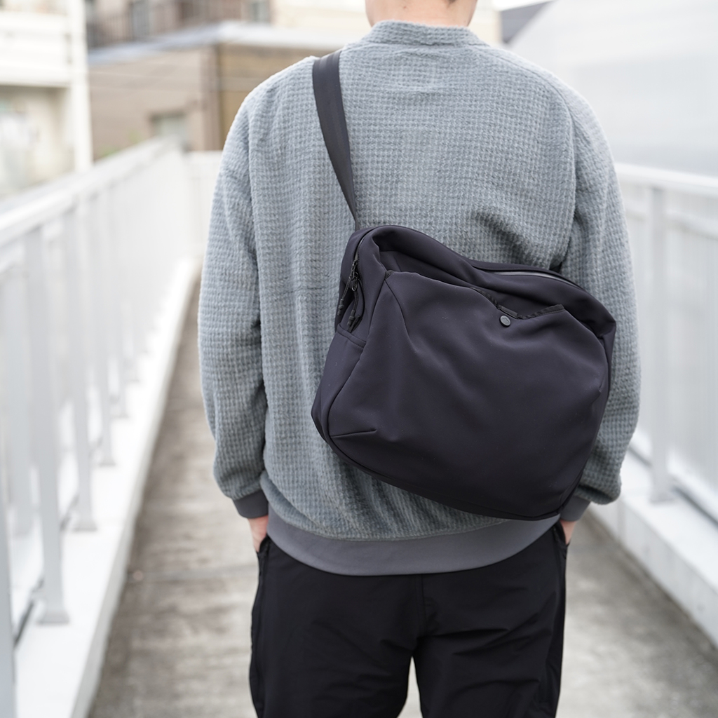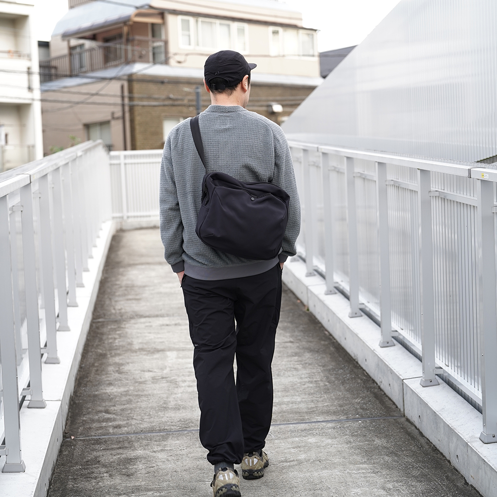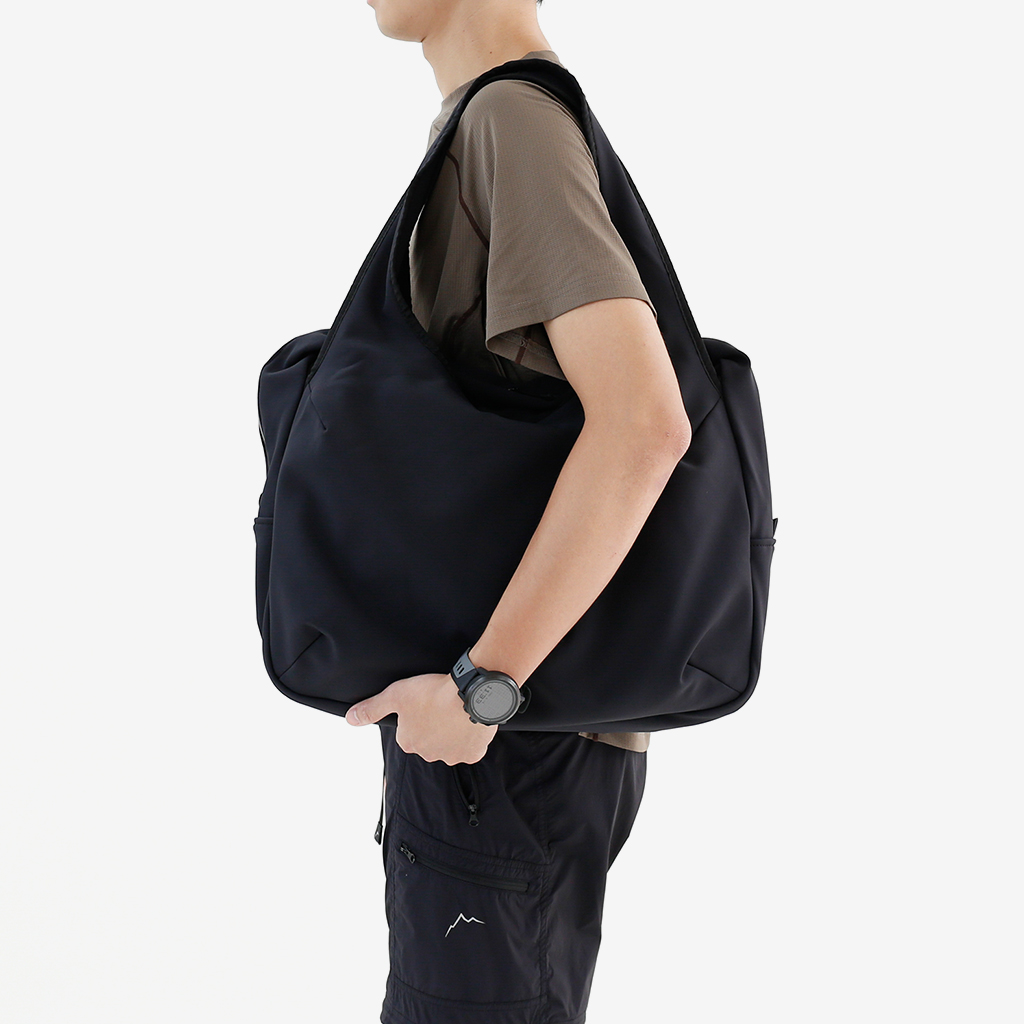 しなやかで肌触りのよいナイロン生地で作られたトートバッグ。 ふんわり膨らんだ外側ポケットがそのままトートのハンドルになっているユニークなデザイン。 ショルダーストラップも付属しており、ショルダーバッグとしても使えます。 メインスペースは止水ジッパーで、生地も撥水加工されているので、多少の雨でも安心。内部はパーテーションで仕切られています。 ネオプレーンのような質感で、身体にしなやかにフィットします。 ※2025年はMLサイズのみの展開となります。 サイズ:ML サイズ:SM ポケットがそのまま持ち手になっているユニークなデザイン。 外ポケットはスナップボタンで留められます。 ふんわりと膨らむような立体裁断になっています。 メインスペースは止水ジッパー。 ポケット内にはショルダーストラップも付属しており、ショルダーバッグとしても使えます。ショルダーストラップは簡単に取り外しもできます。 持ち手部分をポケット内に収納したイメージ。 メインスペースの両サイドには、ベルクロ開閉タイプのパーテーションを備えます。 サイズ:ML サイズ:ML サイズ:ML サイズ:ML サイズ:ML サイズ:SM サイズ:SM サイズ:SM サイズ:SM サイズ:SM