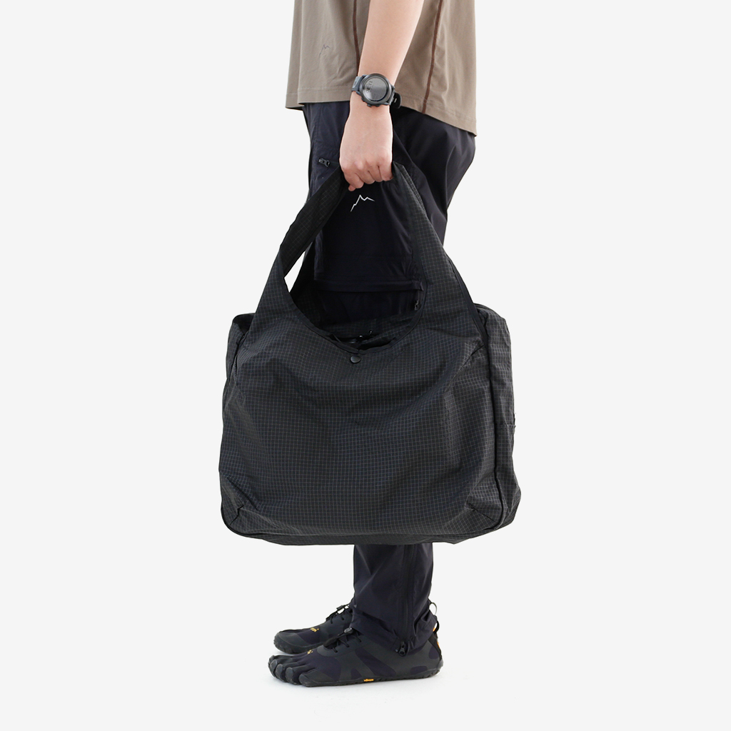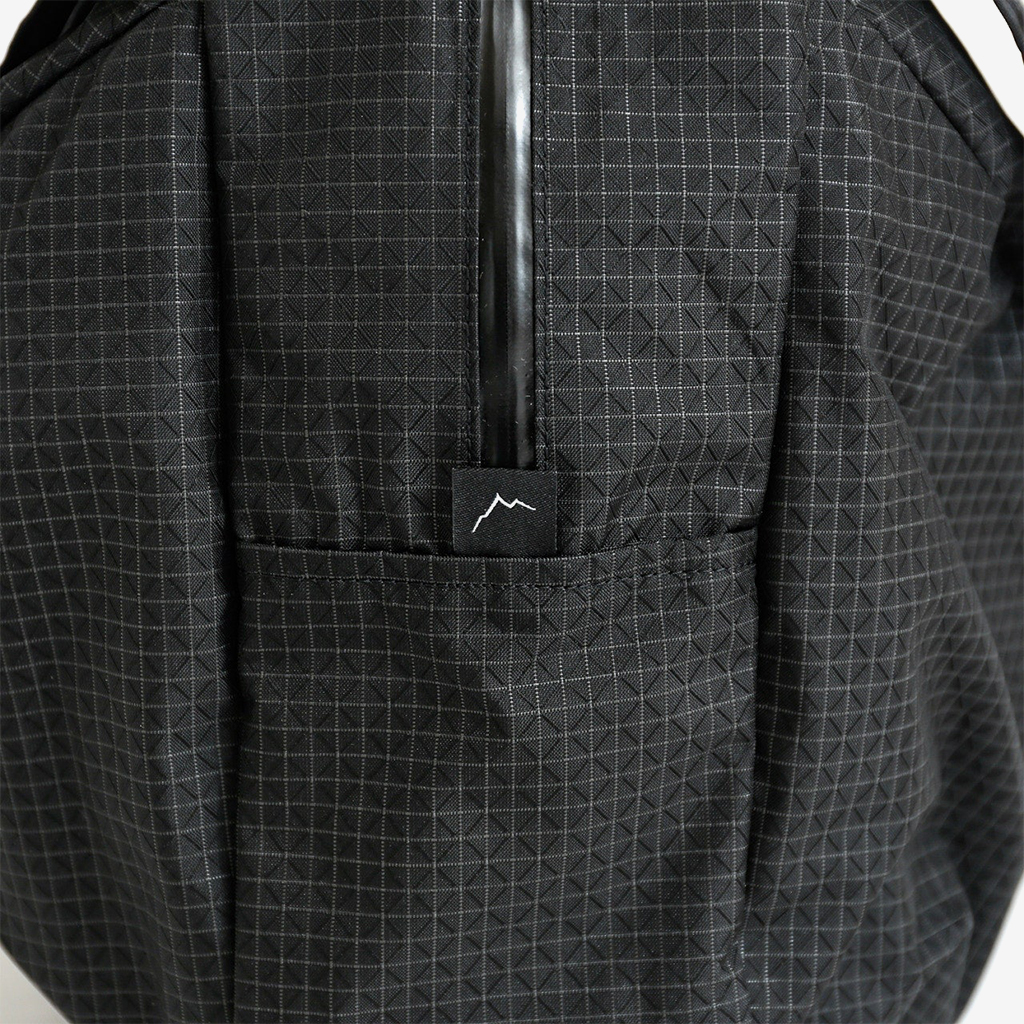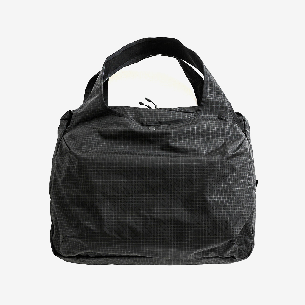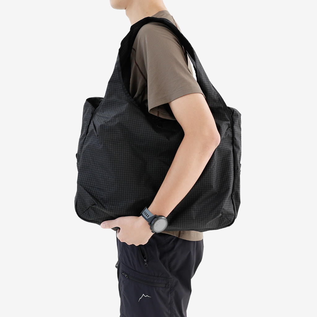 CAYL B-GRID生地で作られたトートバッグ。 CAYL B-GRID生地は、210Dナイロンをベースに、超高分子量ポリエチレン(UHMWPE)を格子状に組み合わせた生地。耐摩耗性、UV耐性に優れ、長期間の使用に適した耐久性があります。強度に加え撥水性も備えています。 ふんわり膨らんだ外側ポケットがそのままトートのハンドルになっているユニークなデザイン。 ショルダーストラップも付属しており、ショルダーバッグとしても使えます。 メインスペースは止水ジッパーで、生地も撥水加工されているので、多少の雨でも安心。内部はパーテーションで仕切られています。 格子状の糸がホワイトになっているCAYL GRID生地との2カラー展開です。 ※2025年はMLサイズのみの展開となります。 サイズ:ML サイズ:SM ポケットがそのまま持ち手になっているユニークなデザイン。 外ポケットはスナップボタンで留められます。 ふんわりと膨らむような立体裁断になっています。 持ち手部分をポケット内に収納したイメージ。ポケット内にはショルダーストラップも付属しており、ショルダーバッグとしても使えます。 ショルダーストラップは簡単に取り外しもできます。 メインスペースは止水ジッパー。 メインスペースの両サイドには、ベルクロ開閉タイプのパーテーションを備えます。 サイズ:ML サイズ:ML サイズ:ML ショルダーバッグで使用
