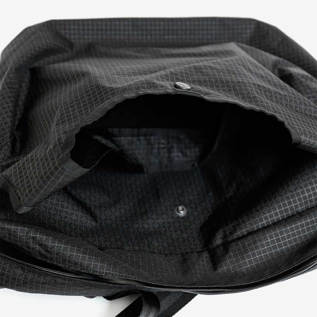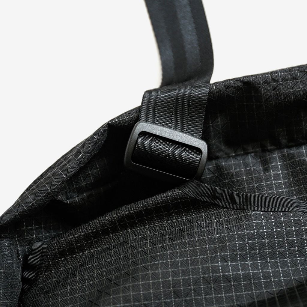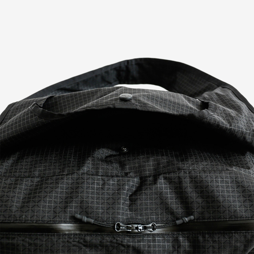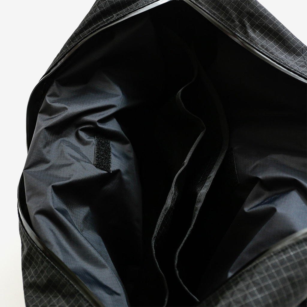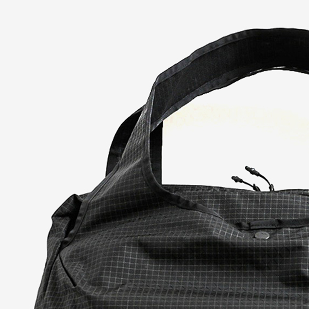 CAYL B-GRID生地で作られたトートバッグ。 CAYL B-GRID生地は、210Dナイロンをベースに、超高分子量ポリエチレン(UHMWPE)を格子状に組み合わせた生地。耐摩耗性、UV耐性に優れ、長期間の使用に適した耐久性があります。強度に加え撥水性も備えています。 ふんわり膨らんだ外側ポケットがそのままトートのハンドルになっているユニークなデザイン。 ショルダーストラップも付属しており、ショルダーバッグとしても使えます。 メインスペースは止水ジッパーで、生地も撥水加工されているので、多少の雨でも安心。内部はパーテーションで仕切られています。 格子状の糸がホワイトになっているCAYL GRID生地との2カラー展開です。 ※2025年はMLサイズのみの展開となります。 サイズ:ML サイズ:SM ポケットがそのまま持ち手になっているユニークなデザイン。 外ポケットはスナップボタンで留められます。 ふんわりと膨らむような立体裁断になっています。 持ち手部分をポケット内に収納したイメージ。ポケット内にはショルダーストラップも付属しており、ショルダーバッグとしても使えます。 ショルダーストラップは簡単に取り外しもできます。 メインスペースは止水ジッパー。 メインスペースの両サイドには、ベルクロ開閉タイプのパーテーションを備えます。 サイズ:ML サイズ:ML サイズ:ML ショルダーバッグで使用