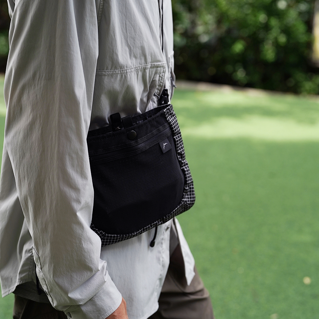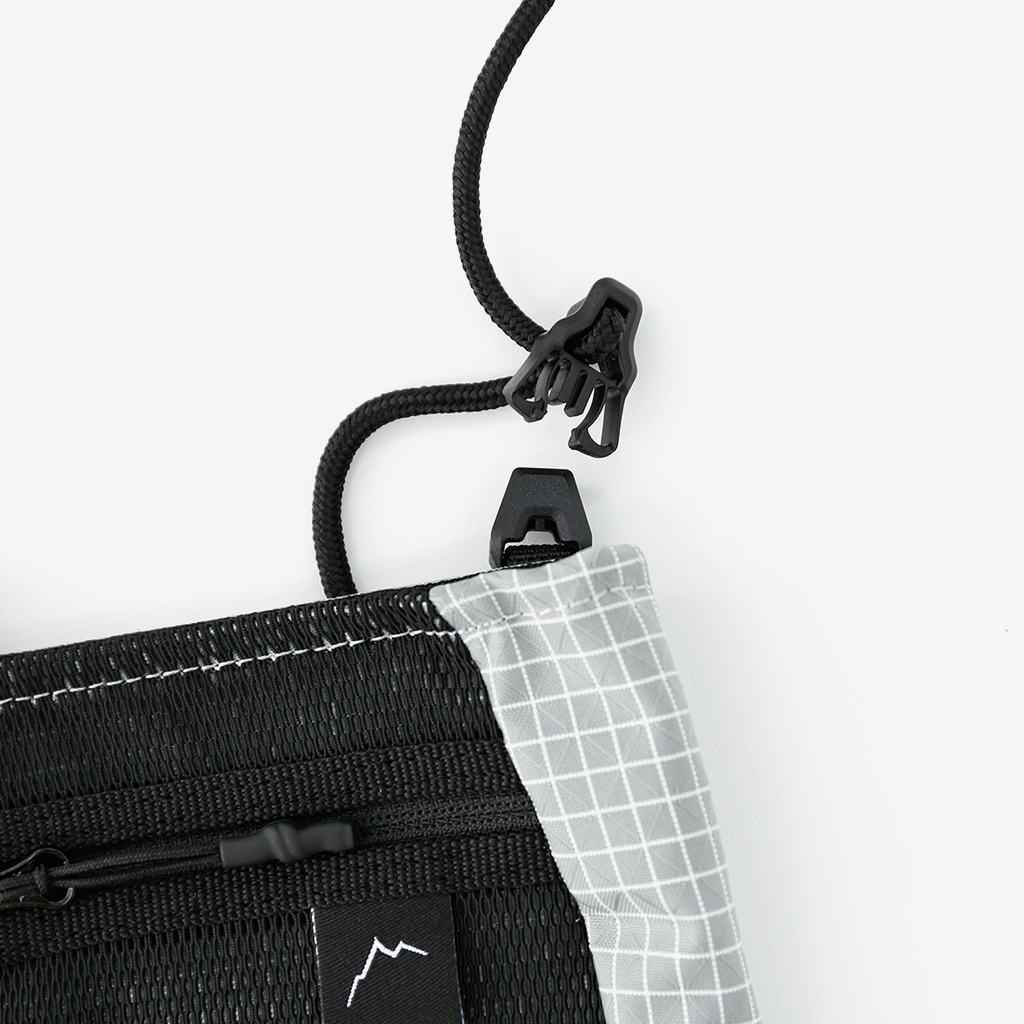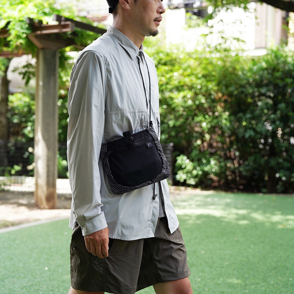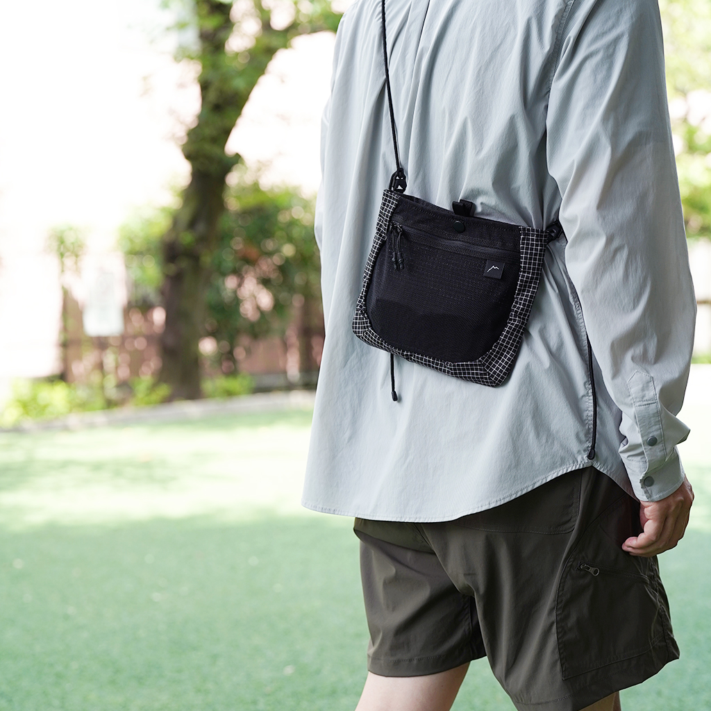 CAYL『Seorak 2』は、動きに干渉しづらいソフトなオープンタイプの薄型サコッシュ。 スナップ開閉式のメインスペースの中は、パーテイションで仕切られています。 フロントのストレッチメッシュポケットはジッパー式で、視認性が良く、小物をクイックに取り出せます。 ショルダーストラップの接触面には3Dエアメッシュを採用し、通気性とクッション性を持たせ、もちろん簡単に長さ調整も可能です。 また、ストラップは左右どちらからでも脱着できるので、フードやハットなどがあってもストレスフリー。 生地もとてもしなやかで、身体に沿ってフィットしてくれます。 カラー:Grid Black カラー:Grid Grey 背面。 ショルダーストラップの接触面には3Dエアメッシュを採用。クッション性に加え、蒸れを軽減します。 メインスペースの中はパーテイションで仕切られています。
