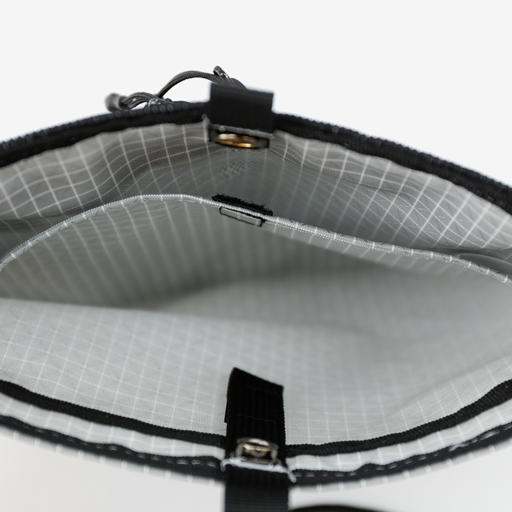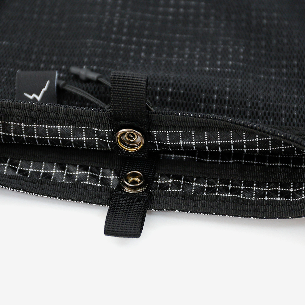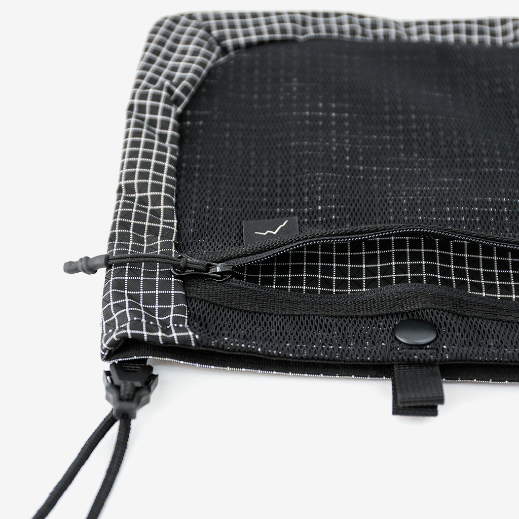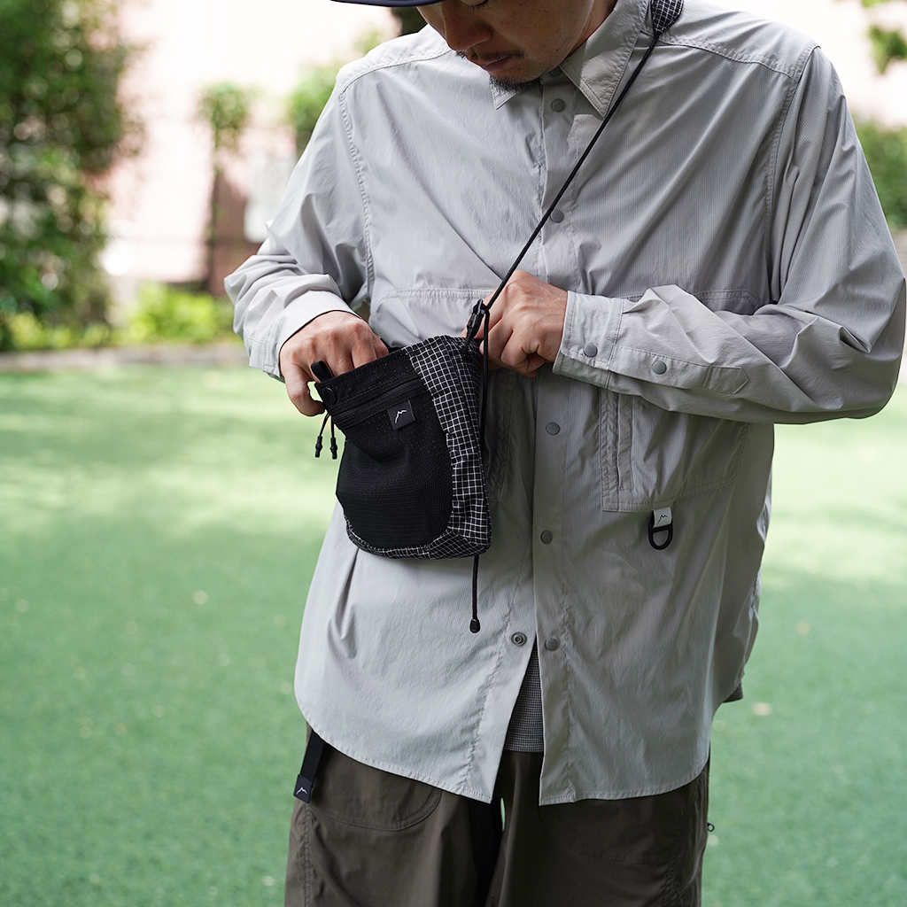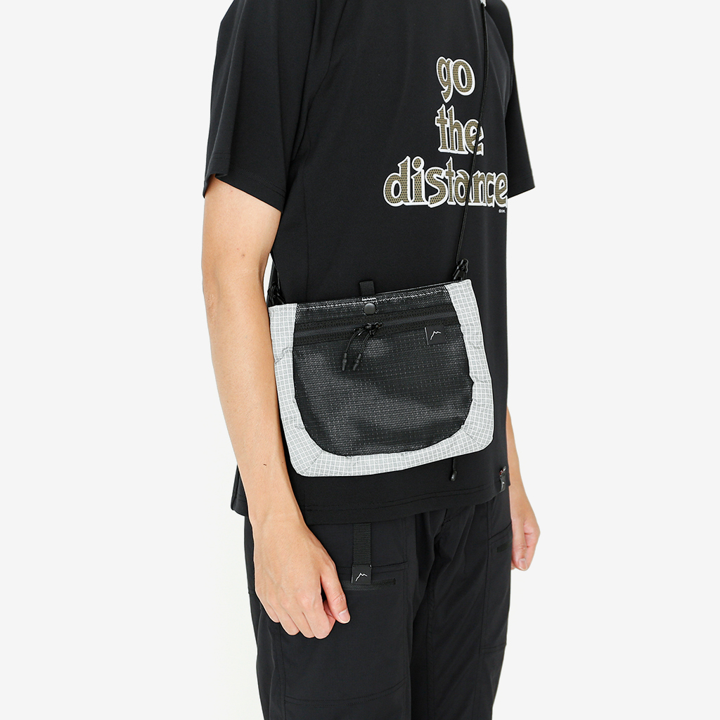 CAYL『Seorak 2』は、動きに干渉しづらいソフトなオープンタイプの薄型サコッシュ。 スナップ開閉式のメインスペースの中は、パーテイションで仕切られています。 フロントのストレッチメッシュポケットはジッパー式で、視認性が良く、小物をクイックに取り出せます。 ショルダーストラップの接触面には3Dエアメッシュを採用し、通気性とクッション性を持たせ、もちろん簡単に長さ調整も可能です。 また、ストラップは左右どちらからでも脱着できるので、フードやハットなどがあってもストレスフリー。 生地もとてもしなやかで、身体に沿ってフィットしてくれます。 カラー:Grid Black カラー:Grid Grey 背面。 ショルダーストラップの接触面には3Dエアメッシュを採用。クッション性に加え、蒸れを軽減します。 メインスペースの中はパーテイションで仕切られています。