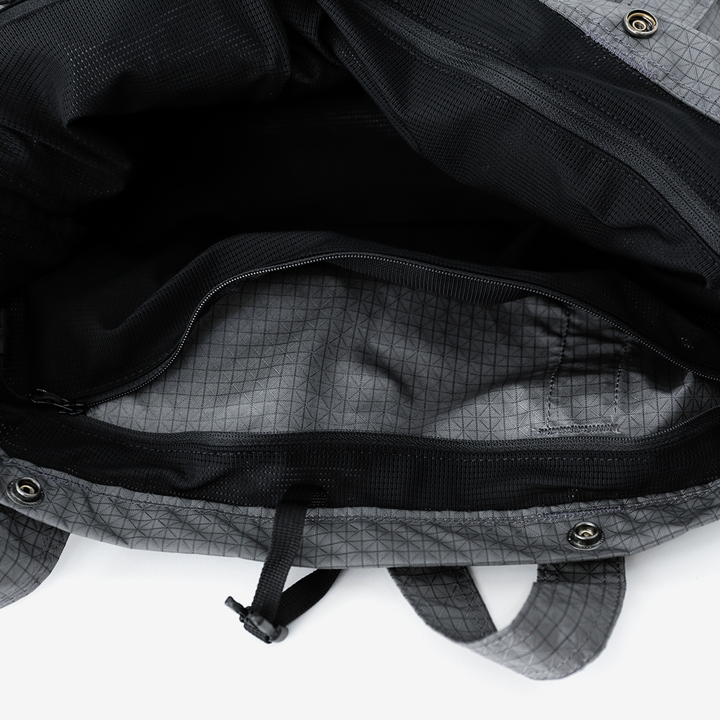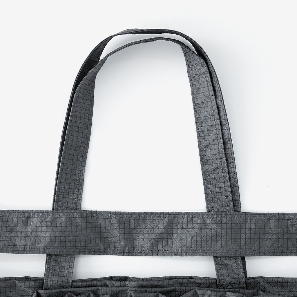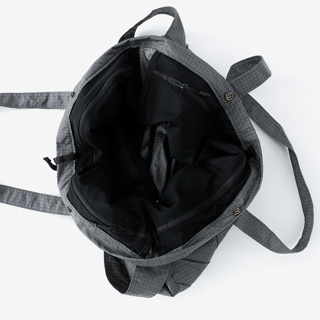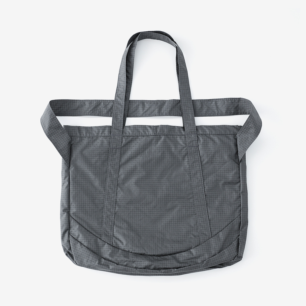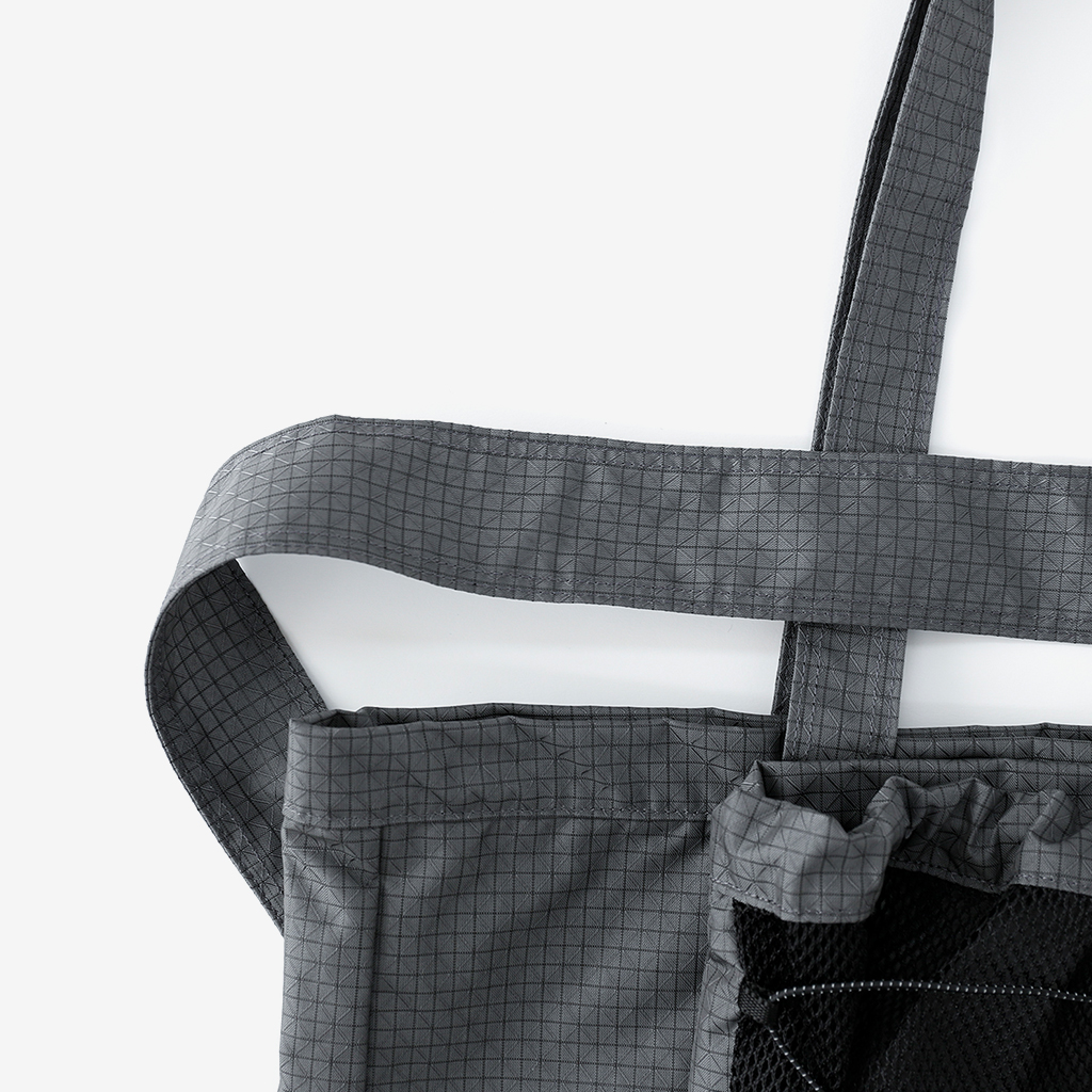 デイリーユースや旅、アクティビティの荷物用バッグにおすすめな大容量トート『Trail Tote』 一番の特徴は、2タイプのバッグが一体化している構造。フロントのポケットを取り外せば、単独でショルダーバッグとしても使えます。シューズも収納できる十分な大きさです。 トートのメインコンパートメントの内部は、2か所のストレッチメッシュポケットがあり、しっかりと仕分けできます。 入口部分も、スナップボタンとバックルでスムーズに閉じられます。 ハイクやレースに出る際に、必要なウェアやシューズを持ち運ぶ。 いつもの必携アイテムをまとめて入れて保管しておく。 軽量コンパクトなので、旅に持って行って、帰りのお土産をたくさん詰め込む。 荷物が少ないなら、小さいショルダーバッグだけで。 使い方の想像がふくらむ、楽しいトートバッグです。 カラー:B-Grid Black カラー:B-Grid Grey フロントポケットはクリップパーツで簡単に脱着できます。 メインスペース入口は、スナップボタンとバックルで留められます。 計4か所の収納スペースで、トートながらしっかり仕分けできます。