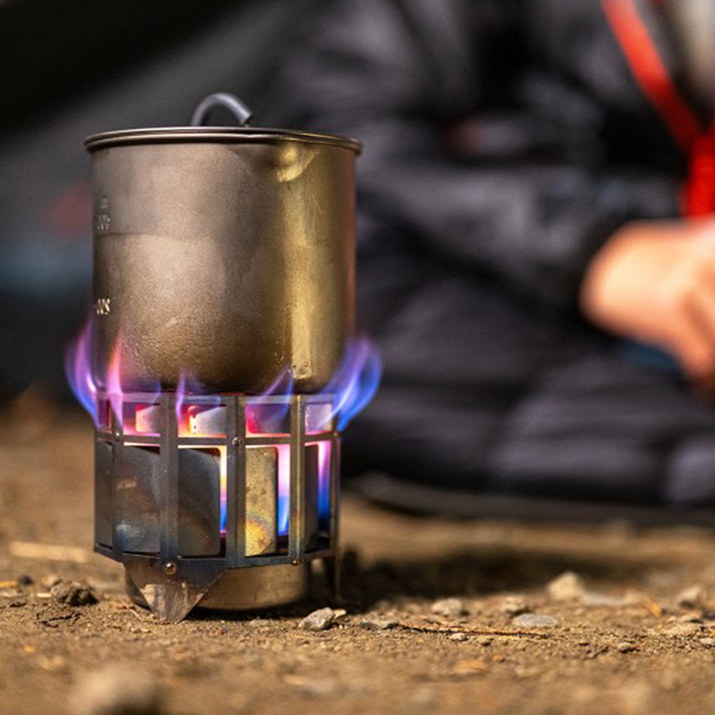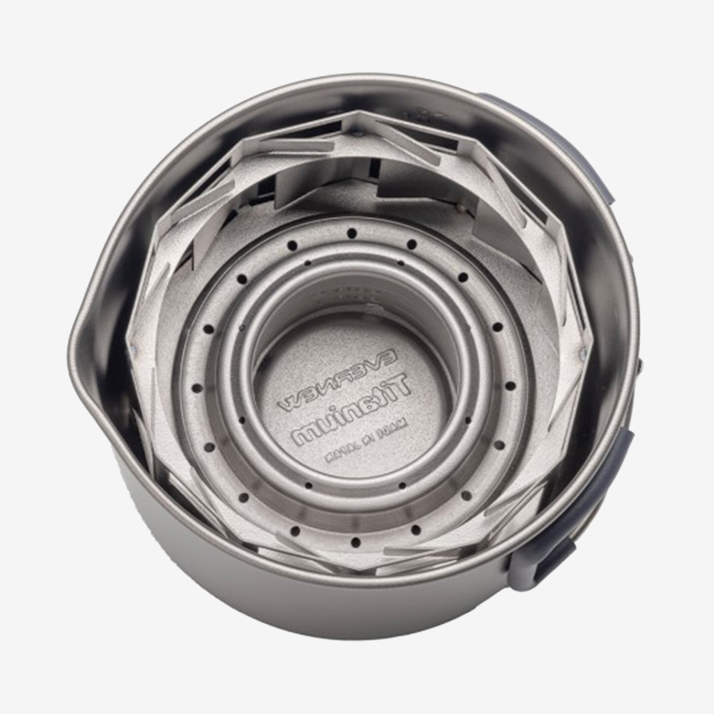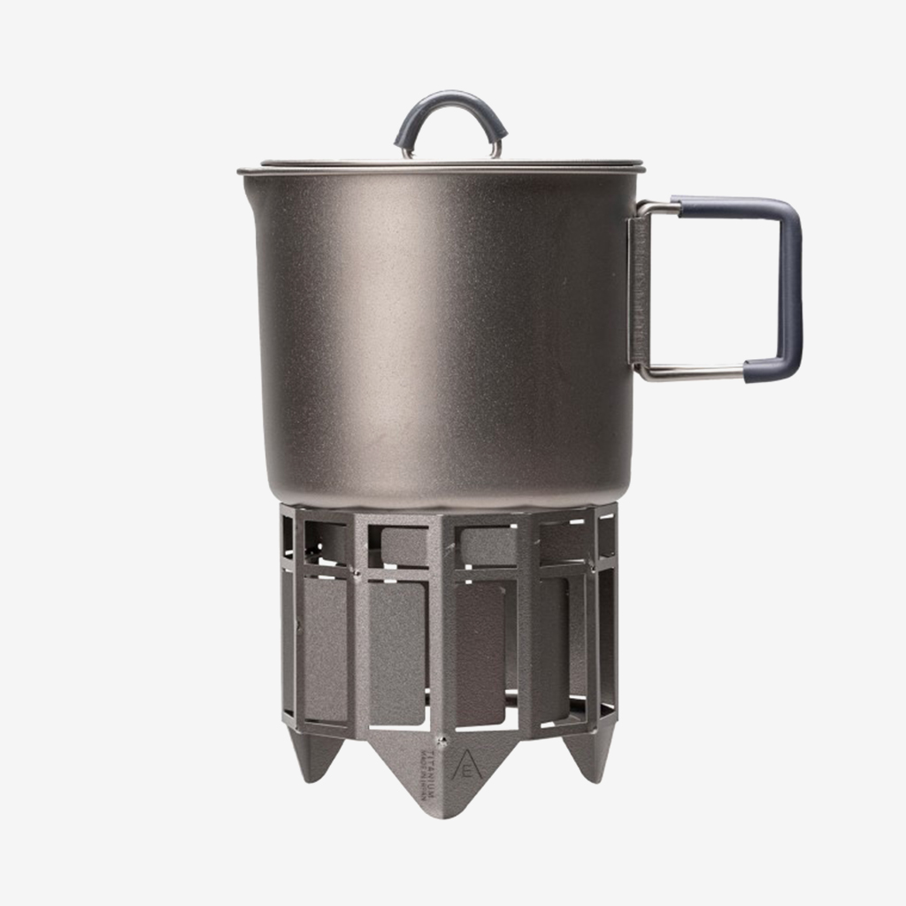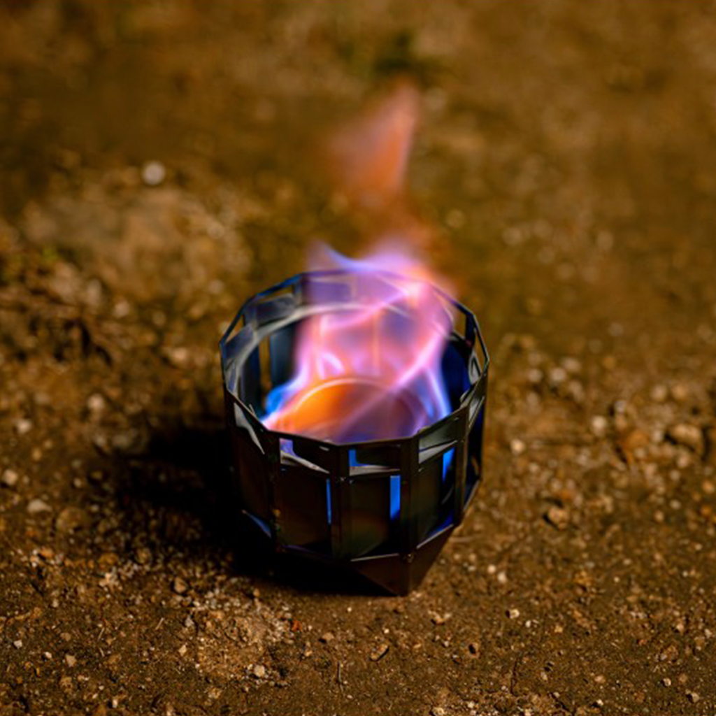 HONOAKARI社の持つ特許構造をベースに、燃焼工学を用いた綿密な計算のもと配置されたフィンが炎を旋回させ、加熱効率を高める風防『Tornado flamer』 旋回炎は燃焼に伴う熱エネルギーを放射熱にシフトし(青い炎が輝度の高い赤い炎に変化)、より一層の加熱効率化に実現、COの発生も抑制します。 組み立てもゴトクも必要なし。 地面の凹凸の影響を受けにくい3本脚、溶接により一体化した構造がガタつきを防ぎます。 同社の『Ti Mug pot 500』『MP500 Flat』にすっぽり収納できるように設計されています。 ※こちらの商品は風防本体のみで、ストーブやクッカーは付属しません。 使用イメージ。 TMR industries『L.T.Cooker』にもすっきり収まります。 『MP500 Flat』への収納例。 フィンが炎を旋回させ、加熱効率を高めます。