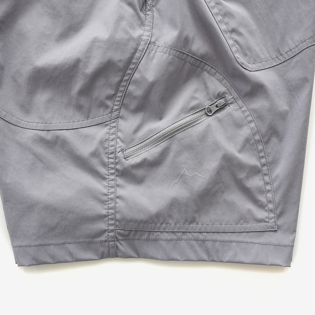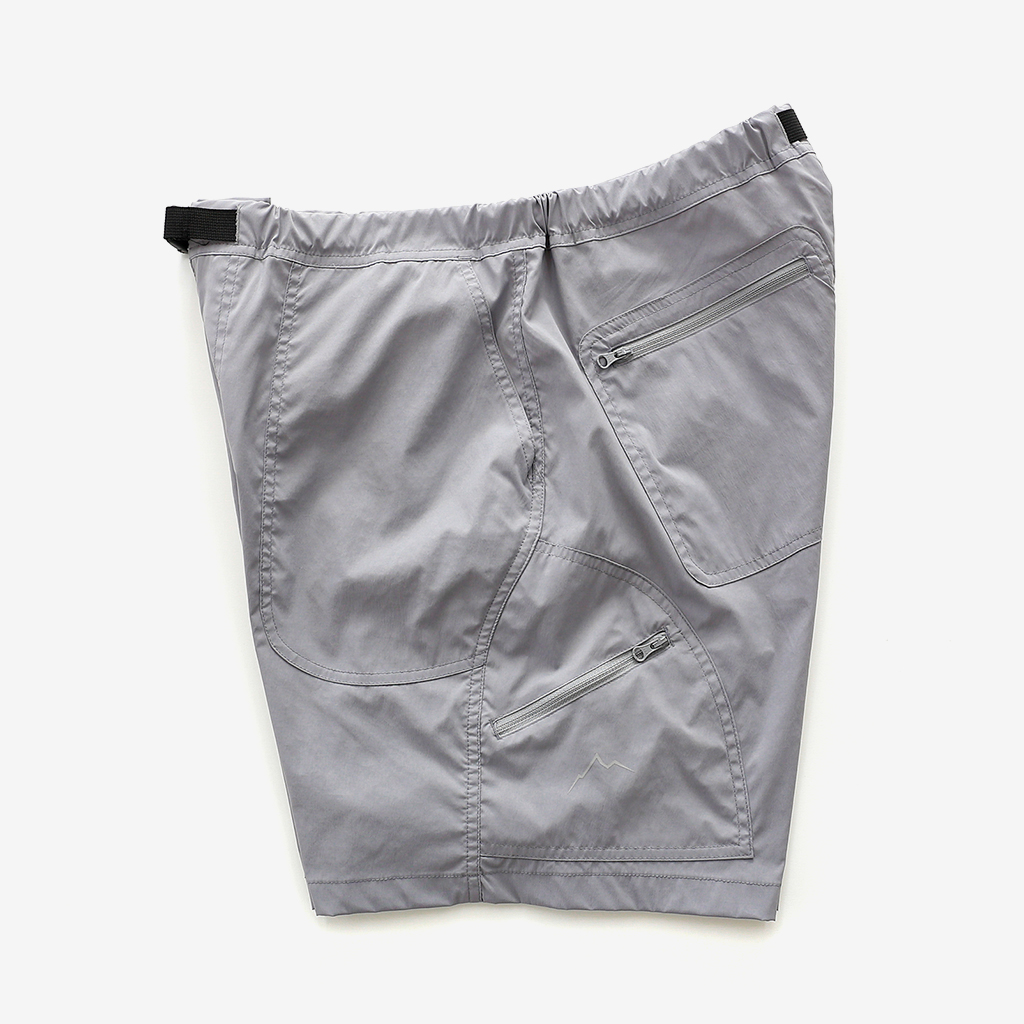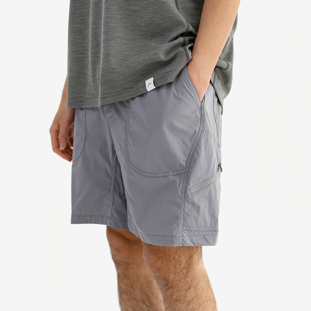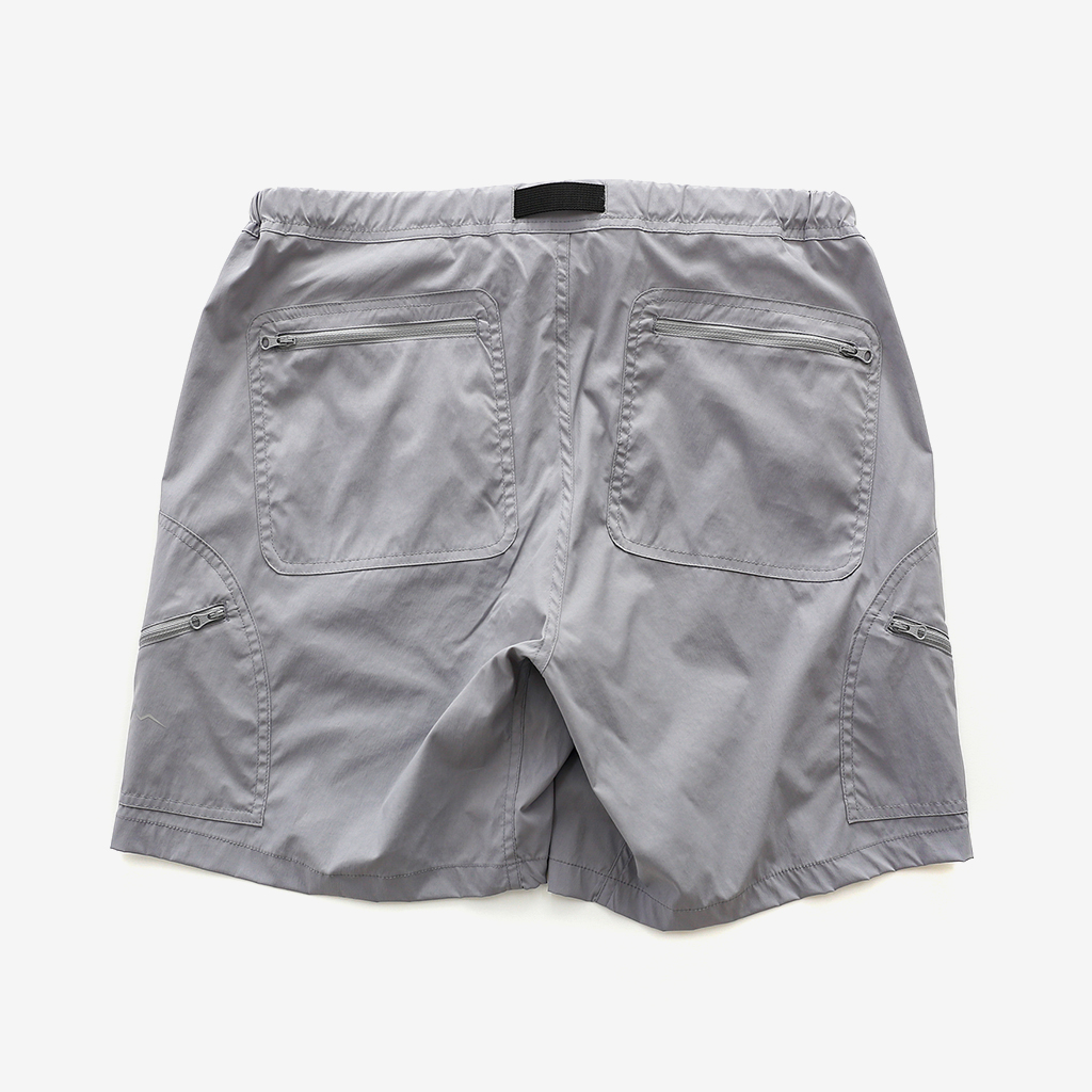 CAYL『6 Pocket Hiking Shorts』は、ストレッチ性、速乾性に優れるナイロンを採用したハイキングショーツ。 計6か所の収納ポケットを備え、両サイドと背面は鍵や財布などの貴重品も安心して収納できるジッパーポケットになっています。 ウエストはゴムとウェビングベルトで直感的に絞り具合を調整可能。腰上で留めてアクティブに動いたり、食事などリラックスしたい時は緩めたり。 撥水コーティングも施され、街でも山でも使いやすい、アクティブに使えるショートパンツです。 カラーは、Black、Khaki、Olive、Beige、Light Greyの5カラー展開です。 背面。 モデル:179cm/Lサイズ モデル:182cm / Lサイズ