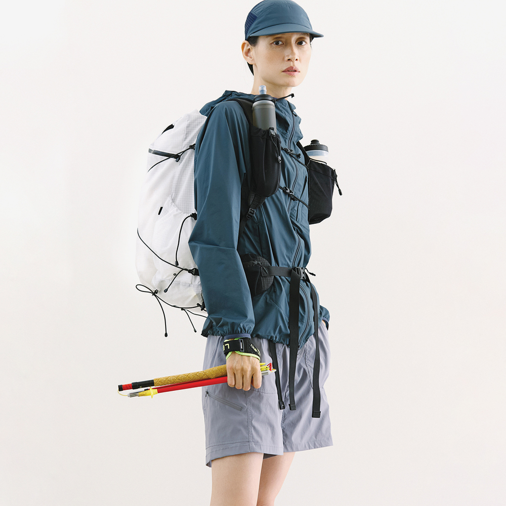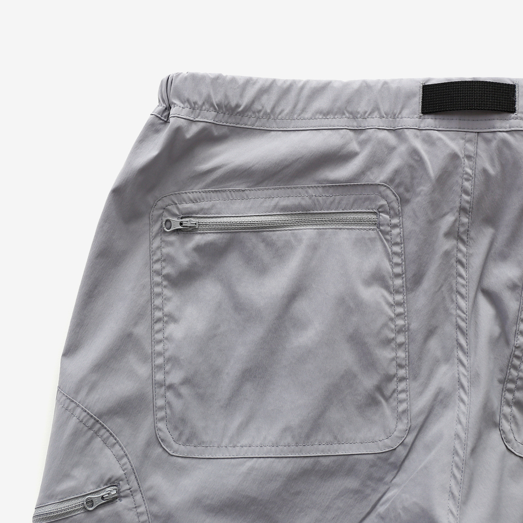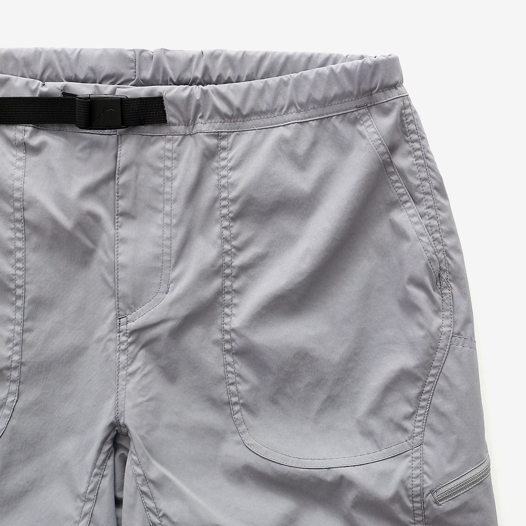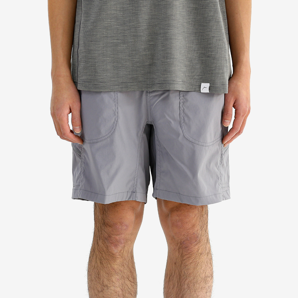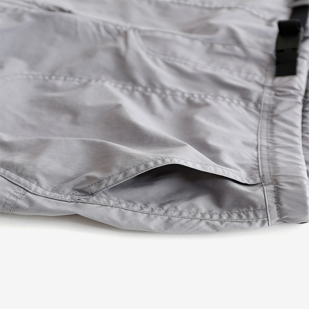 CAYL『6 Pocket Hiking Shorts』は、ストレッチ性、速乾性に優れるナイロンを採用したハイキングショーツ。 計6か所の収納ポケットを備え、両サイドと背面は鍵や財布などの貴重品も安心して収納できるジッパーポケットになっています。 ウエストはゴムとウェビングベルトで直感的に絞り具合を調整可能。腰上で留めてアクティブに動いたり、食事などリラックスしたい時は緩めたり。 撥水コーティングも施され、街でも山でも使いやすい、アクティブに使えるショートパンツです。 カラーは、Black、Khaki、Olive、Beige、Light Greyの5カラー展開です。 背面。 モデル:179cm/Lサイズ モデル:182cm / Lサイズ